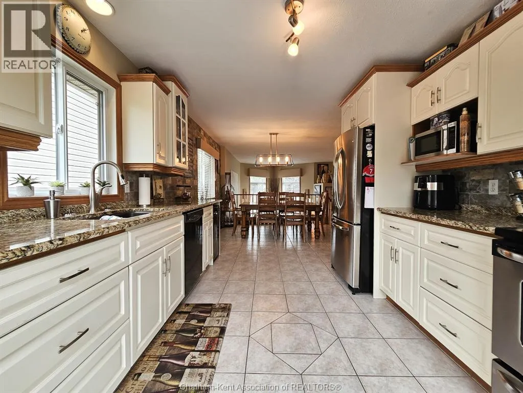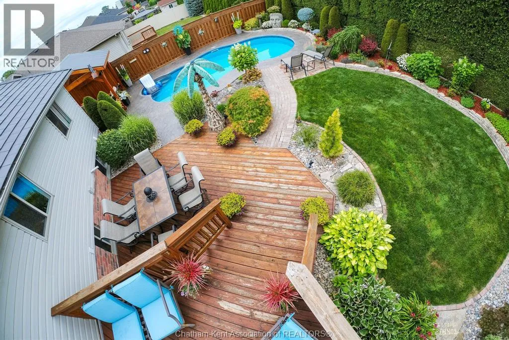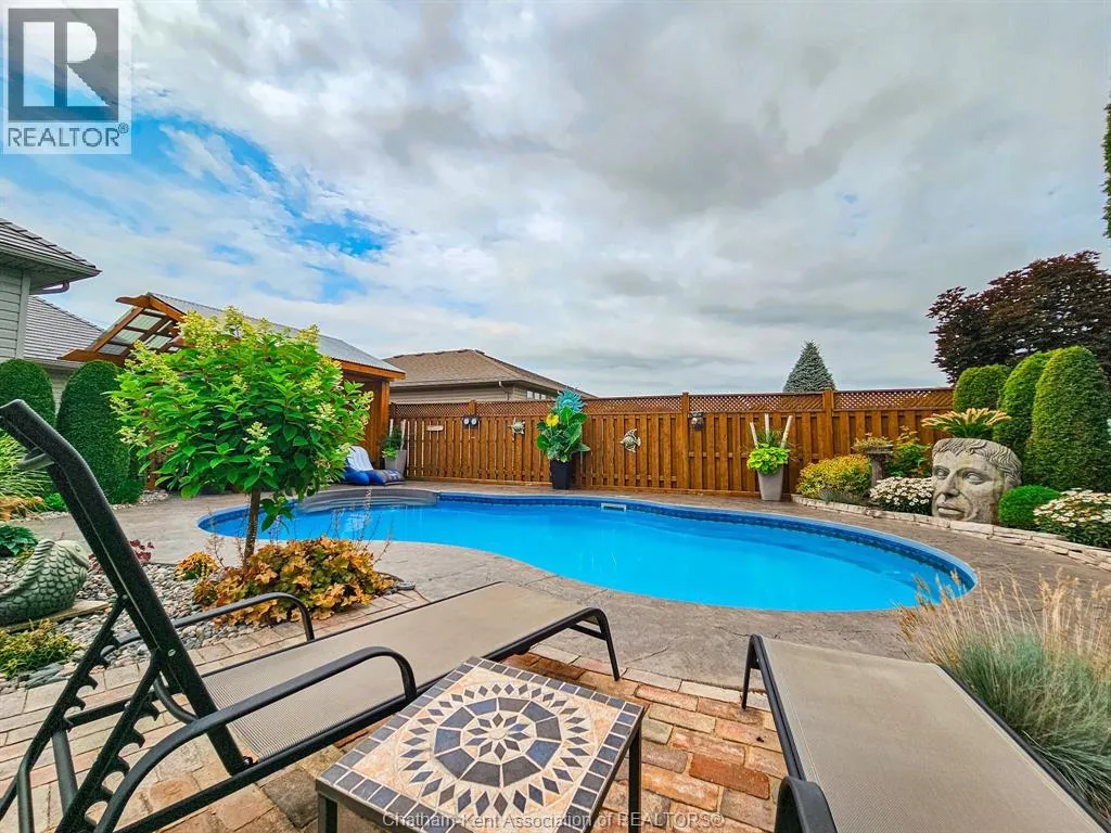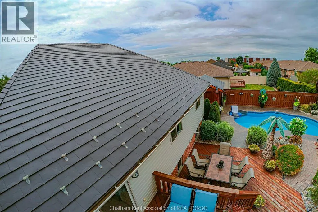 Keil Drive North to McNaughton turn West This impressive all-brick home is located just west of Keil Drive, close to the new Catholic School and St. Clair College. The backyard is your own private paradise with a heated salt water pool, covered gazebo, backyard night lighting, wood deck, gas barbecue hook up, and hot tub. The unique interior design is easily managed on all three levels. There are two bedrooms and full baths on the each of the upper and lower levels. Other stand-out features of this home include a steel roof, newer owned hot water heater, furnace, central air (October 2020), central vac, lawn irrigation system, and hidden storage on the lower level. The garage is an extra wide double - so lots of room for the toys! All offers must include Seller Purchasing a property. (id:27476)