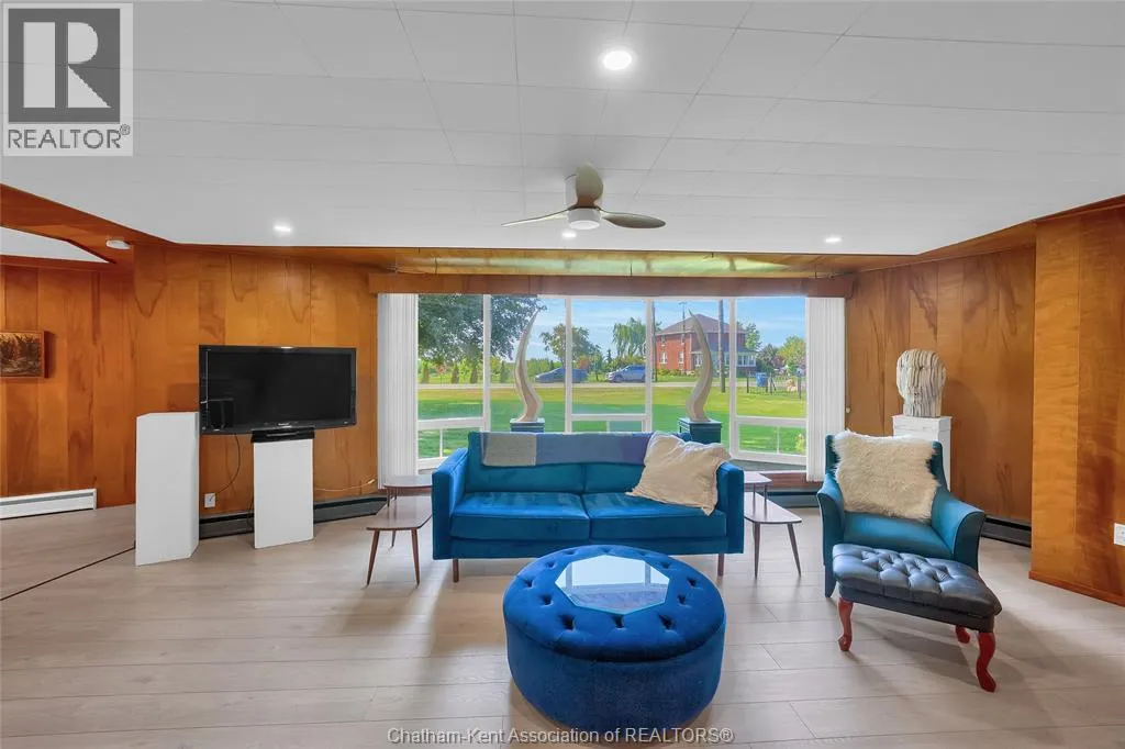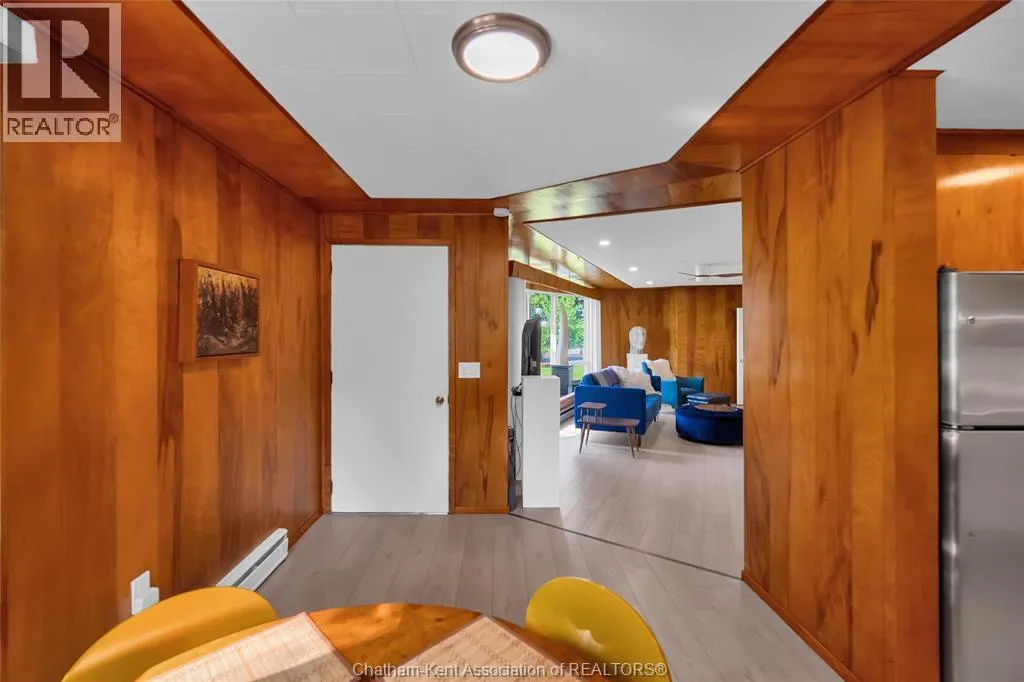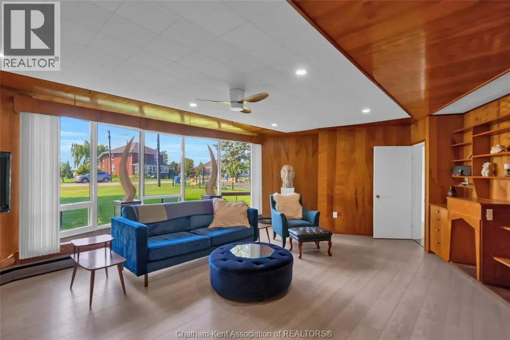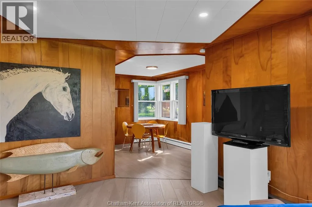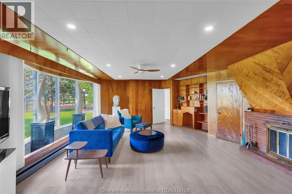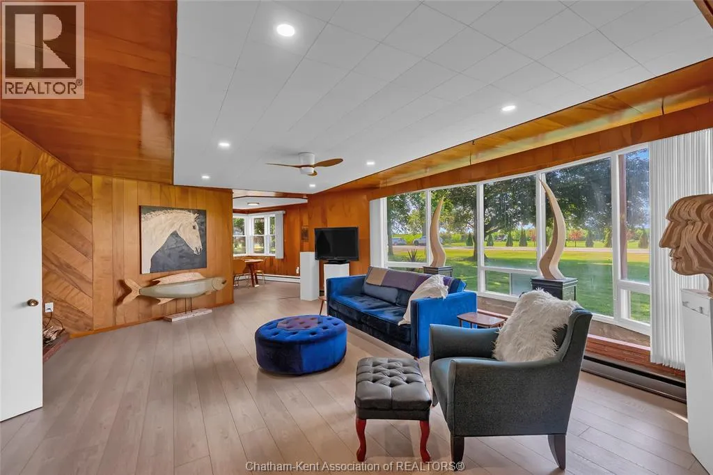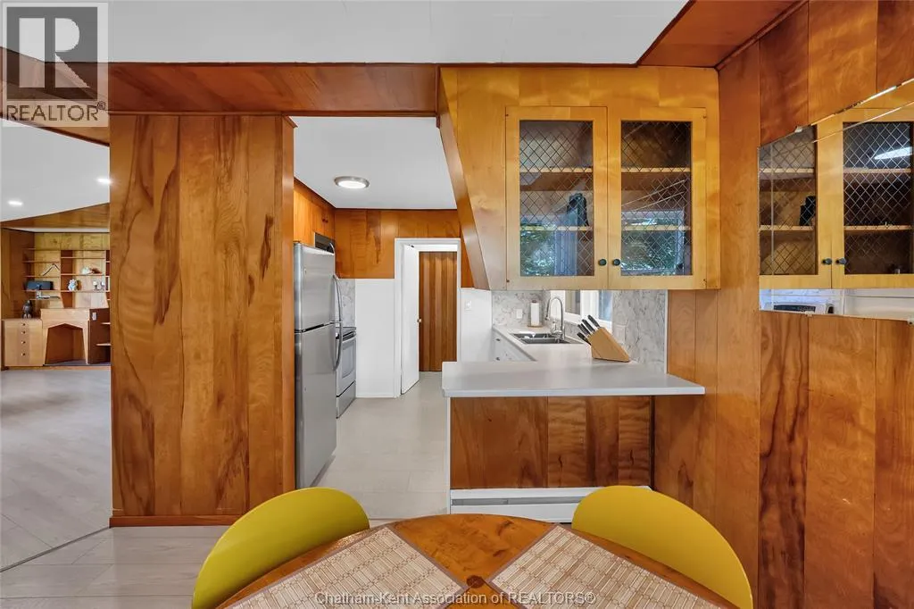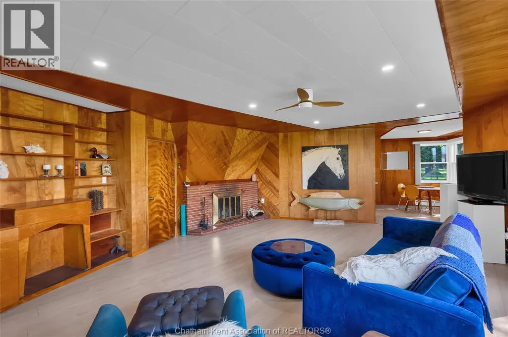 Experience the perfect blend of style, comfort, and serenity in this beautifully refreshed mid-century modern home along the Thames River. Thoughtfully updated from top to bottom including the kitchen, two bathrooms, flooring, and electrical. Step inside and fall in love with the warmth of the original wood paneling and the bright, open living space. The wall of windows draws in natural light and showcases peaceful river views, while the cozy fireplace and custom built-ins create the perfect spot to unwind after a busy day. With four spacious bedrooms, thereâs room for everyone or the flexibility to design a home office, yoga space, or guest retreat. The private 3-piece ensuite offers an added touch of comfort and privacy. Out back, enjoy your own slice of nature perfect for morning coffee by the water, an evening paddle, or simply watching the sunset. The double garage offers space for vehicles, storage, and hobbies, while the location just minutes from Chatham, keeps everything you need close by. Call Today! (id:27476)