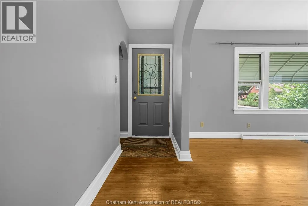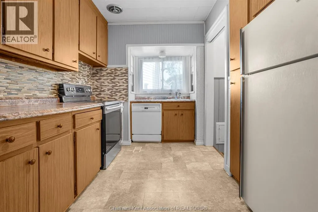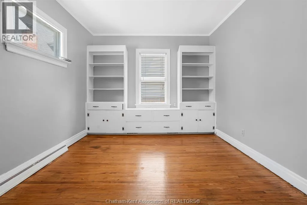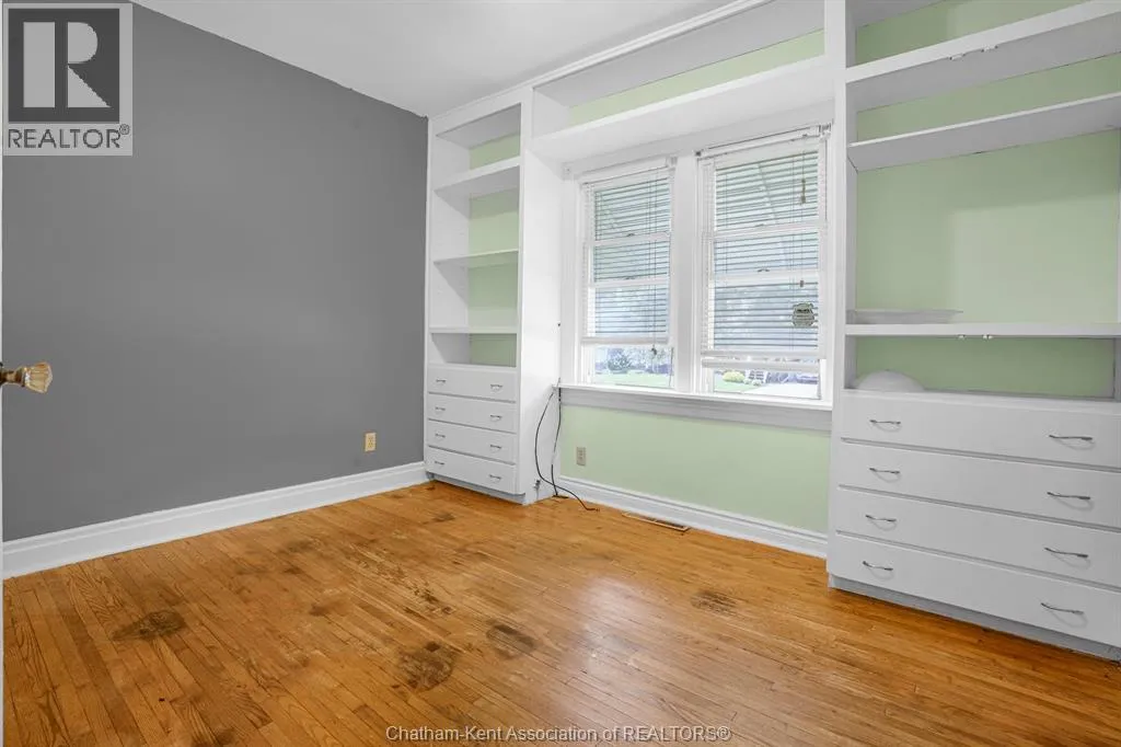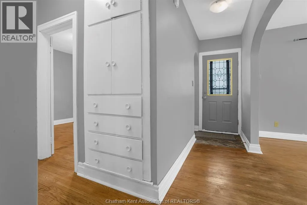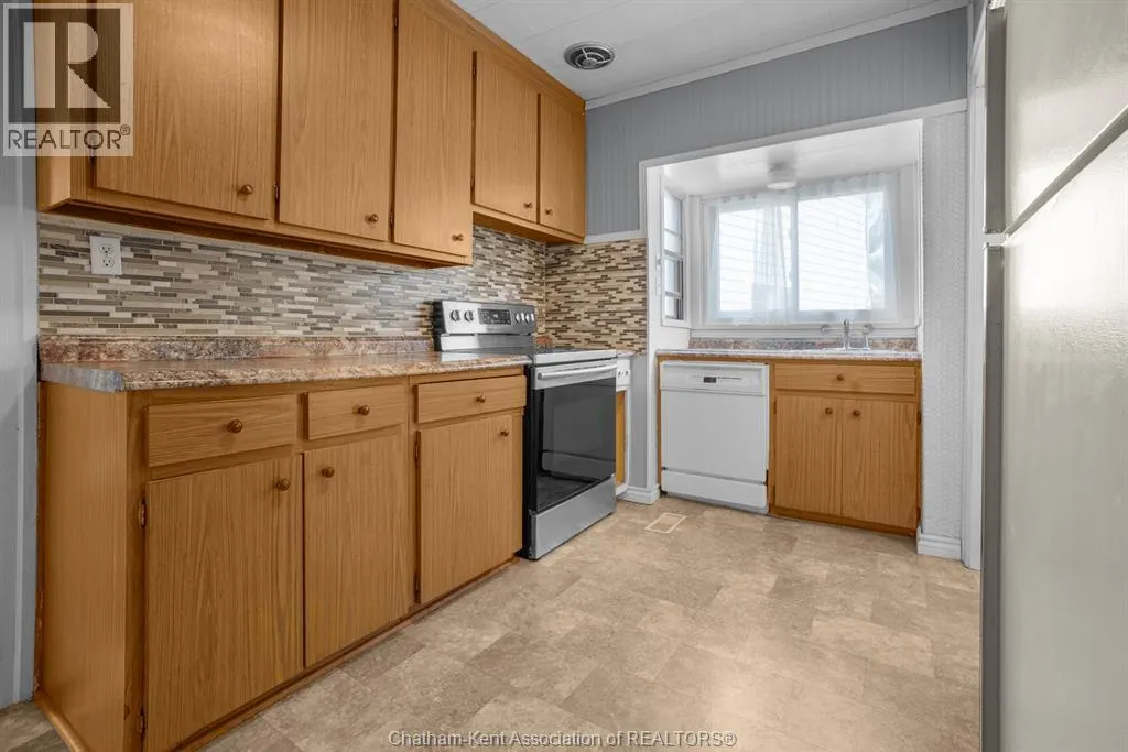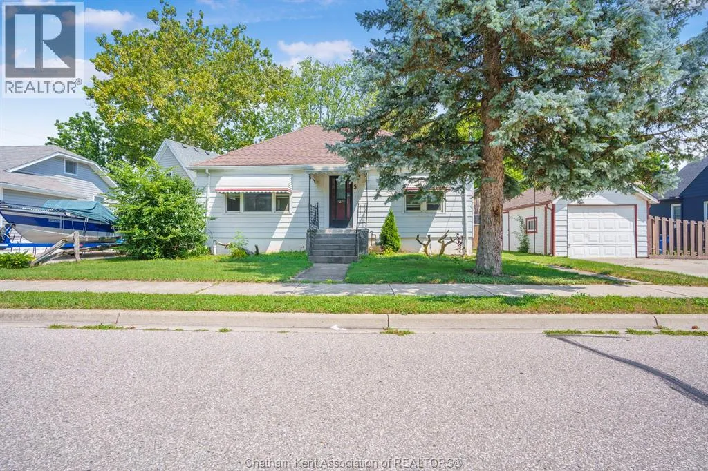 Welcome to this well-kept 2-bedroom, 2-bathroom bungalow offering character, functionality, and great potential. Situated on a mature lot with a detached single-car garage, this home is perfect for first-time buyers, downsizers, or investors. Step inside to find a bright living room with large windows that fill the space with natural light. The original hardwood floors run throughout much of the home, adding warmth and charm. The dining area and bedrooms feature built-in shelving and drawers, providing both style and practical storage solutions. The kitchen offers plenty of cabinet space, updated backsplash, and a large window overlooking the backyard. The main floor is complete with a refreshed 4-piece bathroom featuring modern tile work and a bright window for natural light. Downstairs, youâll find a full unfinished basement offering endless possibilities for additional living space or storage. A convenient 3-piece bathroom is already in place, and new basement windows (installed in 2022) allow plenty of light. Ideal for seasoned renovator or investor. Foundation is in need of repair. Property is being sold in ""as is condition"" please include this in all offers. (id:27476)
