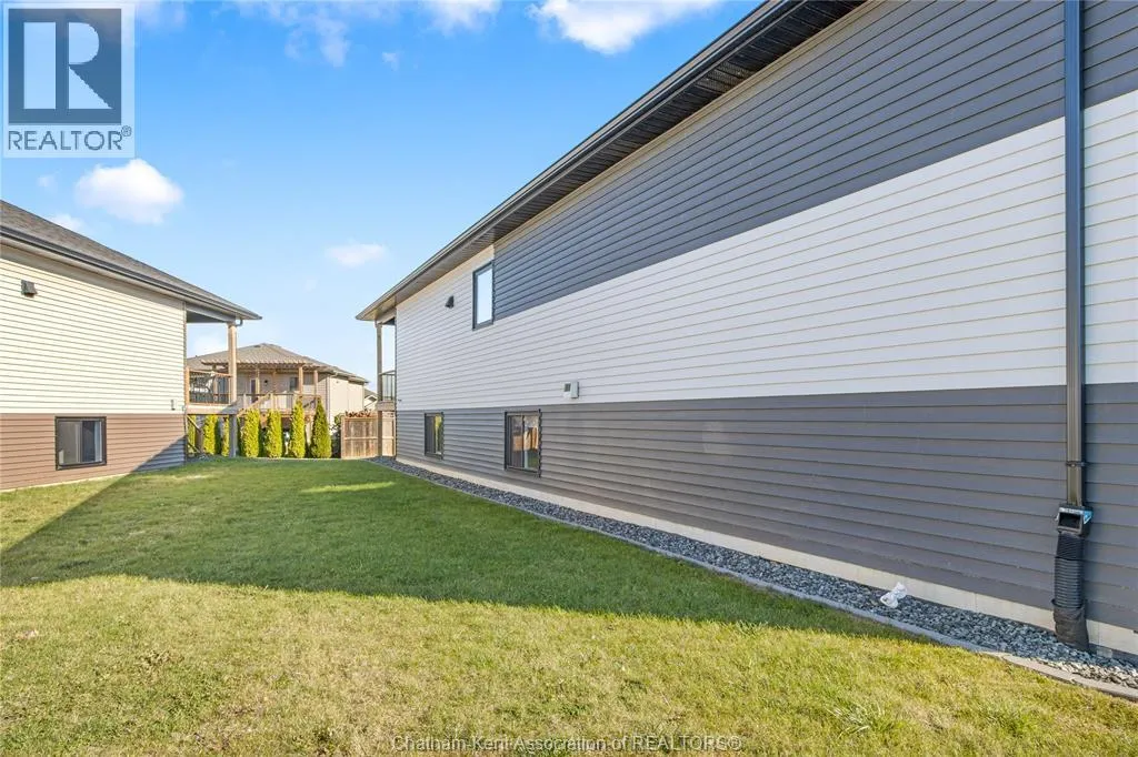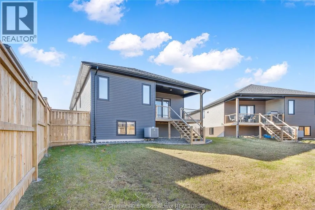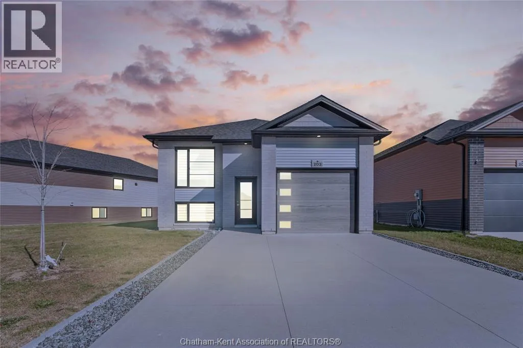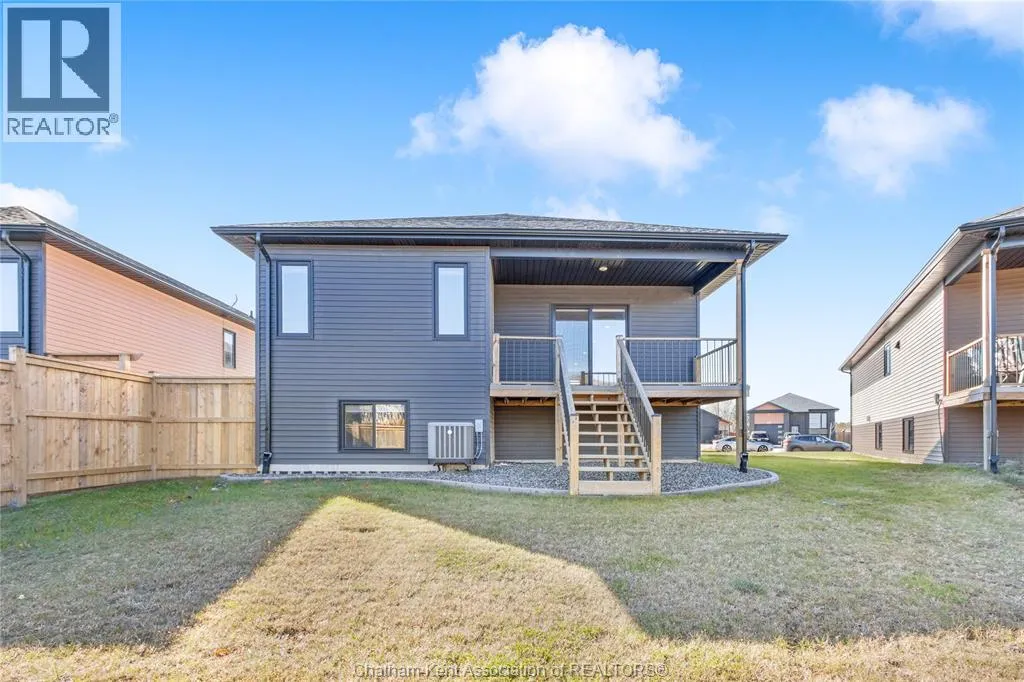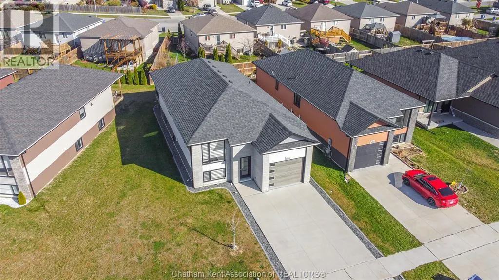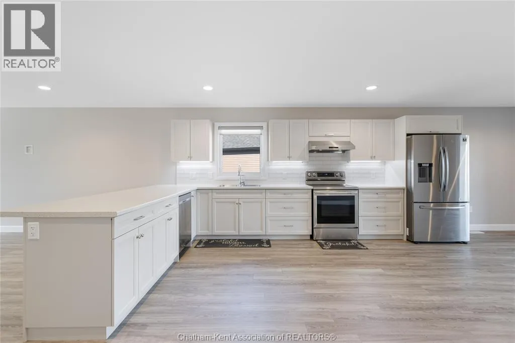 Welcome to this beautifully appointed raised ranch in a desirable Southwest Chatham neighbourhood, just minutes from Highway 401. This impressive 2+2 bedroom home  blends modern style with exceptional functionality, offering an ideal layout for growing families, multi-generational living, or anyone seeking generous, comfortable living spaces. Step inside to an inviting open-concept main level, flooded with natural light from oversized windows. The modern kitchen features a spacious peninsula perfect for meal prep and casual dining, complemented by extensive cabinetry and an effortless flow into the dining and living areasâan excellent setting for family gatherings and entertaining. The primary bedroom offers a private retreat with a walk-in closet and 3-piece ensuite. A second bedroom with double closets and a well-appointed family 4pc bathroom complete the main level. The fully finished lower level significantly expands your living space, featuring a large family room ideal for movie nights or hosting guests. Two additional bedroomsâeach with walk-in closetsâprovide versatility for in-laws, teens, or extended family. A large laundry room and a stylish 3-piece bath with tiled shower add even more convenience and flexibility. Outside, enjoy the large concrete driveway, covered reach porch with stairs leading to the backyard and meticulous landscaping! A truly move-in-ready home in a prime locationâoffering comfort, space, and a layout that adapts to your lifestyle. (id:27476)
