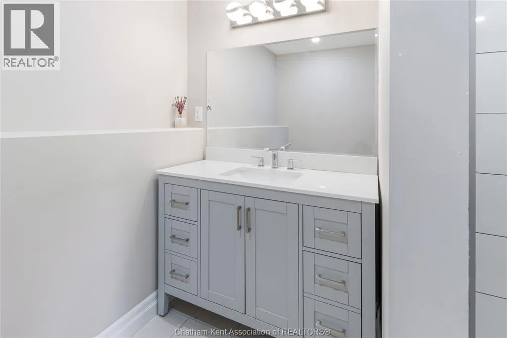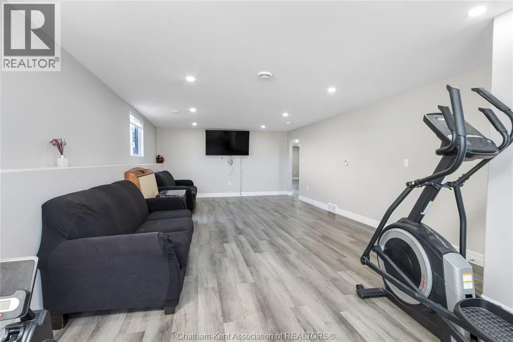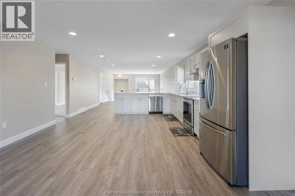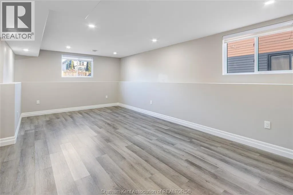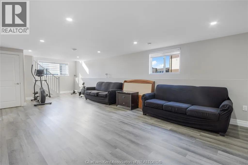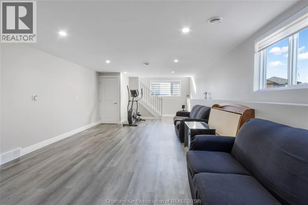 Welcome to this beautifully appointed raised ranch in a desirable Southwest Chatham neighbourhood, just minutes from Highway 401. This impressive 2+2 bedroom home  blends modern style with exceptional functionality, offering an ideal layout for growing families, multi-generational living, or anyone seeking generous, comfortable living spaces. Step inside to an inviting open-concept main level, flooded with natural light from oversized windows. The modern kitchen features a spacious peninsula perfect for meal prep and casual dining, complemented by extensive cabinetry and an effortless flow into the dining and living areasâan excellent setting for family gatherings and entertaining. The primary bedroom offers a private retreat with a walk-in closet and 3-piece ensuite. A second bedroom with double closets and a well-appointed family 4pc bathroom complete the main level. The fully finished lower level significantly expands your living space, featuring a large family room ideal for movie nights or hosting guests. Two additional bedroomsâeach with walk-in closetsâprovide versatility for in-laws, teens, or extended family. A large laundry room and a stylish 3-piece bath with tiled shower add even more convenience and flexibility. Outside, enjoy the large concrete driveway, covered reach porch with stairs leading to the backyard and meticulous landscaping! A truly move-in-ready home in a prime locationâoffering comfort, space, and a layout that adapts to your lifestyle. (id:27476)