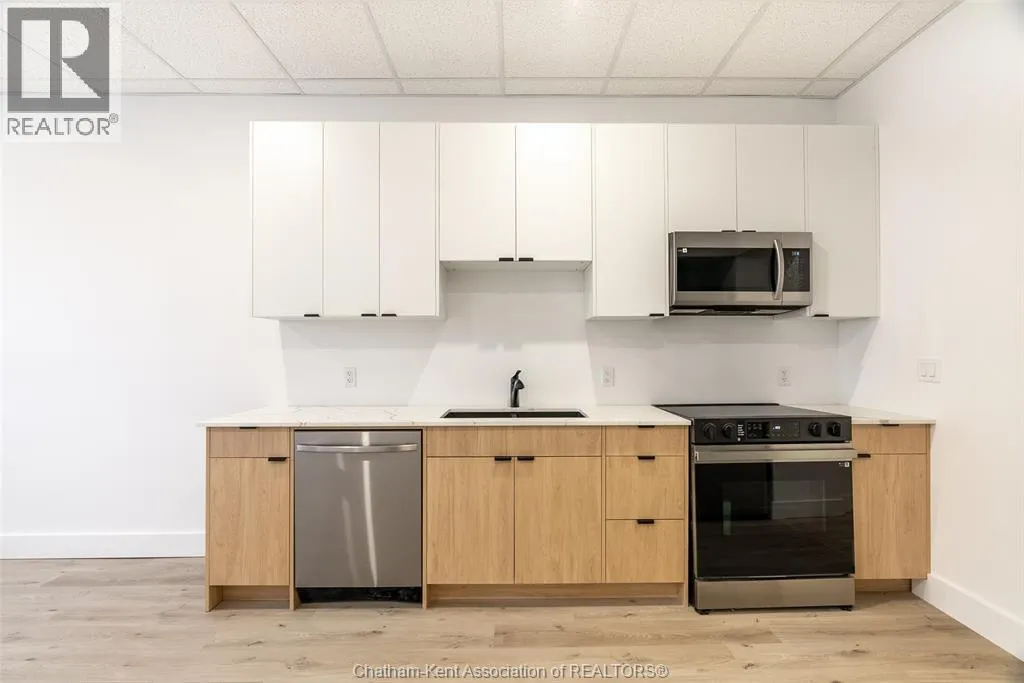Discover upscale living in this newly renovated 2-bedroom, 1-bath luxury apartment located in the vibrant heart of downtown Chatham. With modern design and premium finishes throughout, this elegant suite offers comfort, convenience, and style in one perfect package. Step into a bright, open living space with large windows that flood the unit with natural light. The sleek kitchen features updated cabinetry and appliances, ideal for everyday living or entertaining. The spacious bedroom offers a relaxing retreat, and the contemporary bathroom includes quality finishes and fixtures. Enjoy the added convenience of in-suite laundry and an elevator in the building for easy access. This well-maintained property is perfect for those seeking a low-maintenance lifestyle in a prime location. Just steps from Chathamâs best shopping, dining, and amenities, this apartment puts everything you need right at your fingertips. Whether youâre a working professional or looking to downsize in style, this is downtown living at its finest. Book your private tour today and see the difference luxury makes. Available for January 1st, 2026. (id:27476)