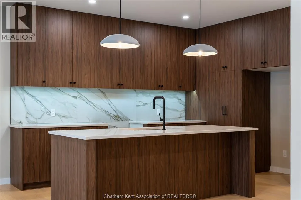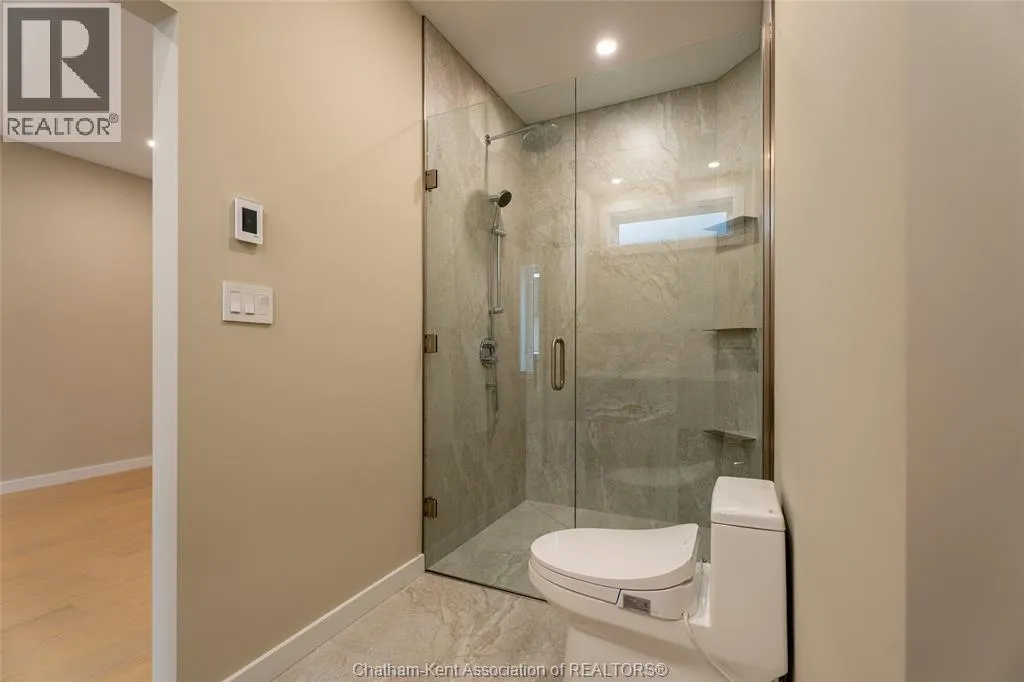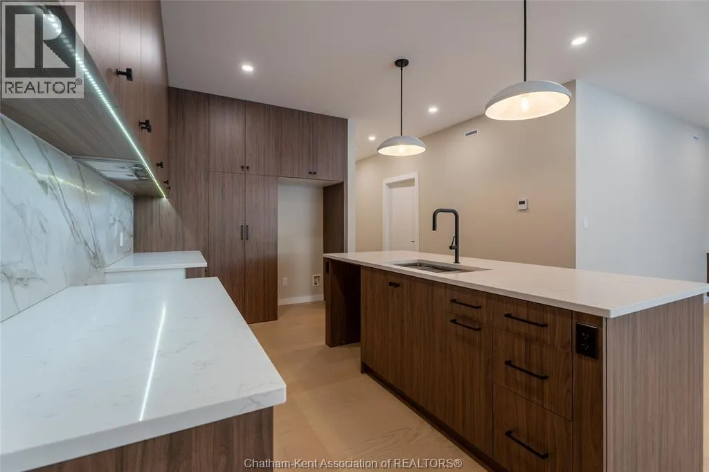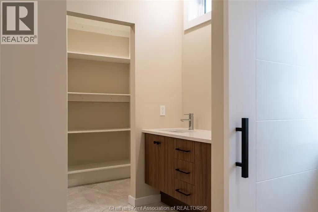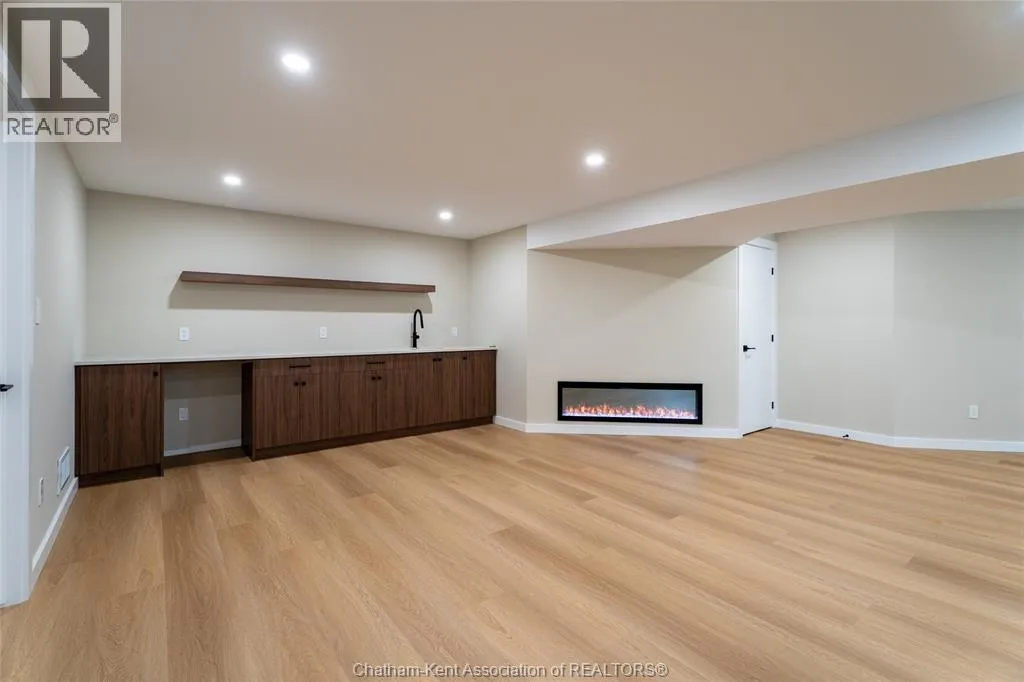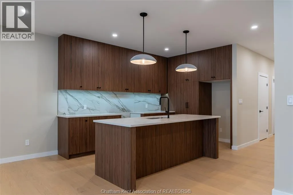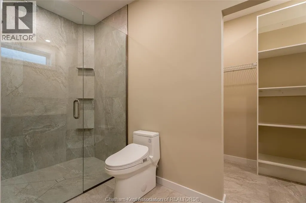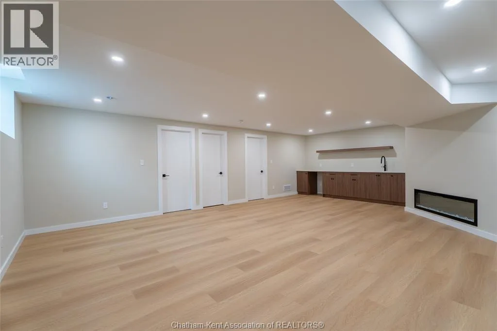 Brand new ranch-style home showcasing the epitome of modern design and everyday convenience. Thoughtfully finished with numerous custom details, including live-edge shelving and a custom front bench that set the tone the moment you arrive.The main level offers a stunning open-concept layout with cathedral ceilings and an impressive 18-foot patio door leading to a covered rear porch. The jaw-dropping kitchen features sleek modern cabinetry, quality finishes, and a massive walk-in pantryâperfect for entertaining and everyday living. A convenient main-floor powder room adds to the functionality.The primary bedroom retreat is located on the main level and includes a full ensuite with heated floors, a no-touch toilet, and a spacious walk-in closet. The main-floor family room also features an electric fireplace, creating a warm and inviting space.A striking modern glass staircase leads to the fully finished lower level, offering a huge recreation room complete with an electric fireplace with multiple settings, a bar and sink area, two large bedrooms, and a third full bathroomâideal for guests or family living.This home blends contemporary style with comfort and thoughtful design throughout. A must-see new build that truly stands out. (id:27476)