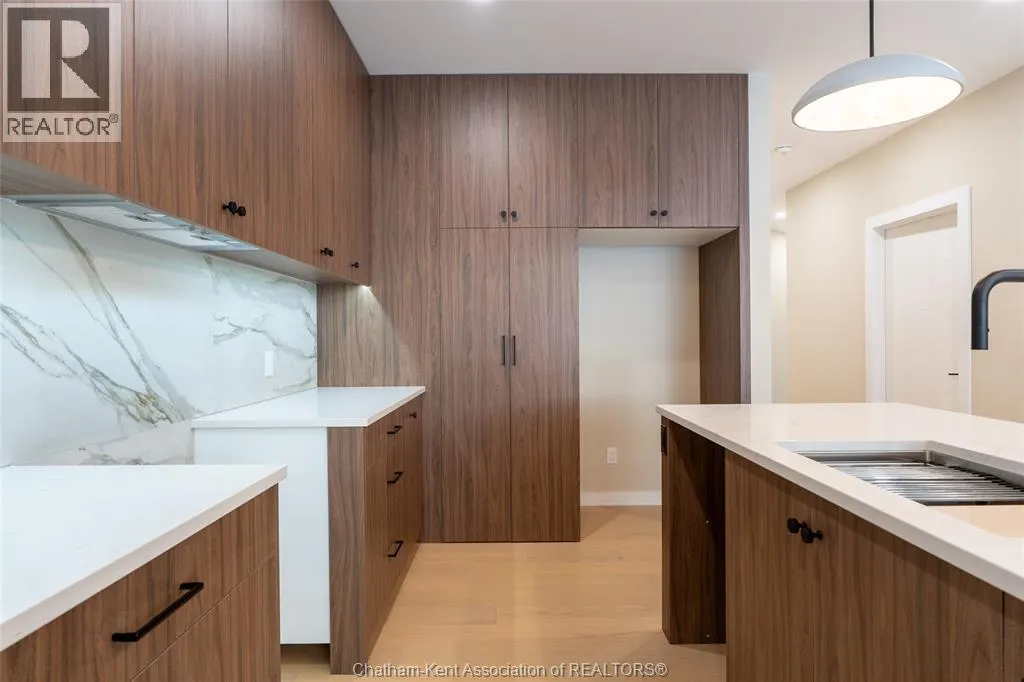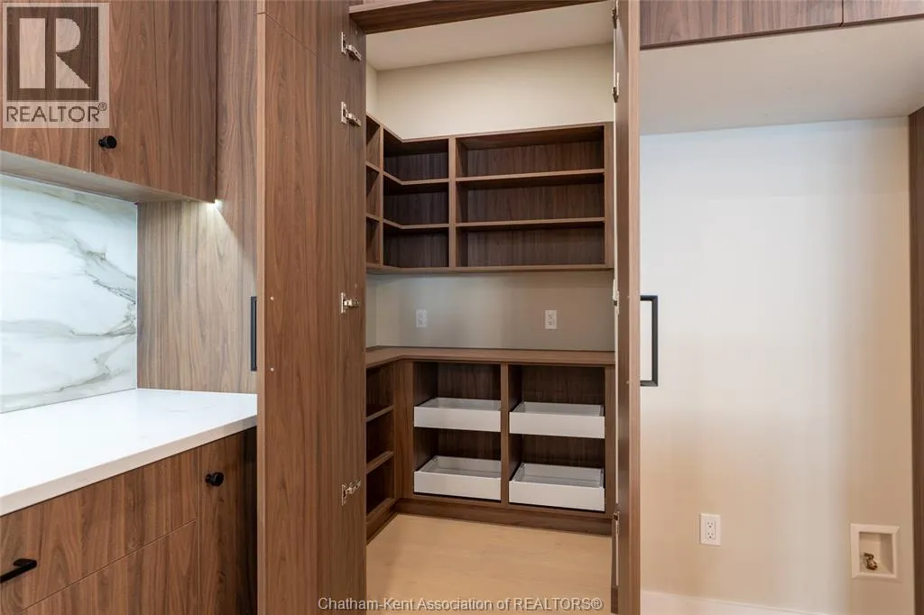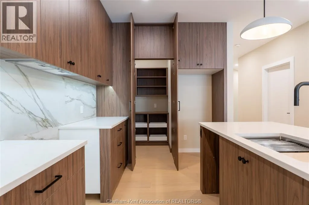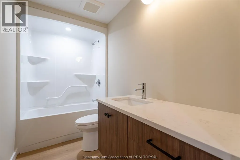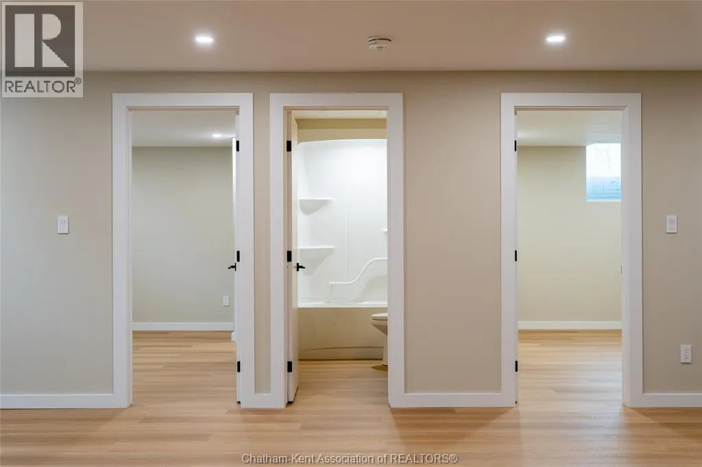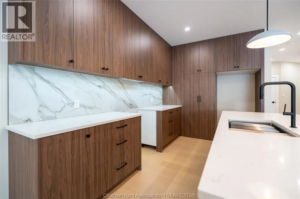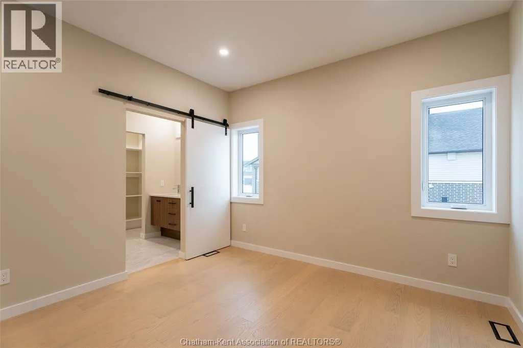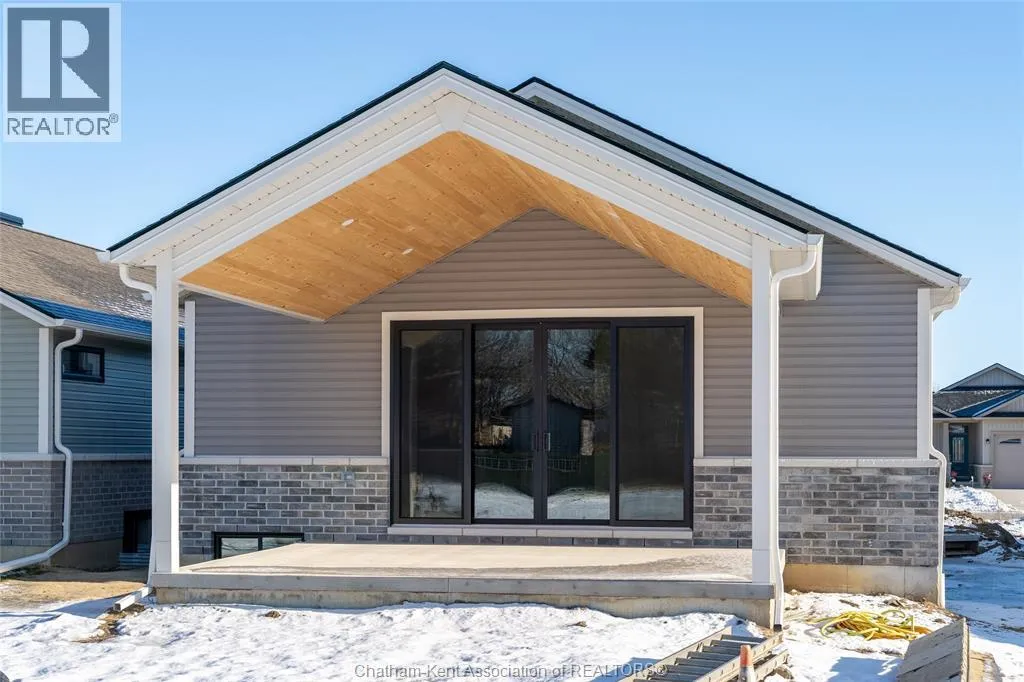 Brand new ranch-style home showcasing the epitome of modern design and everyday convenience. Thoughtfully finished with numerous custom details, including live-edge shelving and a custom front bench that set the tone the moment you arrive.The main level offers a stunning open-concept layout with cathedral ceilings and an impressive 18-foot patio door leading to a covered rear porch. The jaw-dropping kitchen features sleek modern cabinetry, quality finishes, and a massive walk-in pantryâperfect for entertaining and everyday living. A convenient main-floor powder room adds to the functionality.The primary bedroom retreat is located on the main level and includes a full ensuite with heated floors, a no-touch toilet, and a spacious walk-in closet. The main-floor family room also features an electric fireplace, creating a warm and inviting space.A striking modern glass staircase leads to the fully finished lower level, offering a huge recreation room complete with an electric fireplace with multiple settings, a bar and sink area, two large bedrooms, and a third full bathroomâideal for guests or family living.This home blends contemporary style with comfort and thoughtful design throughout. A must-see new build that truly stands out. (id:27476)