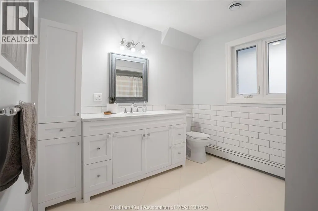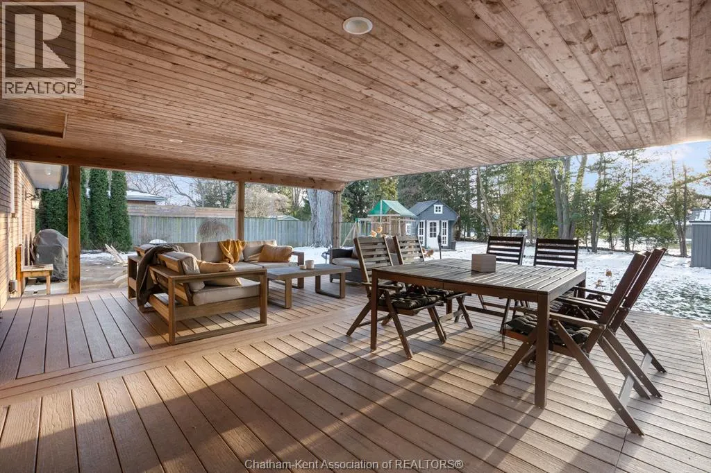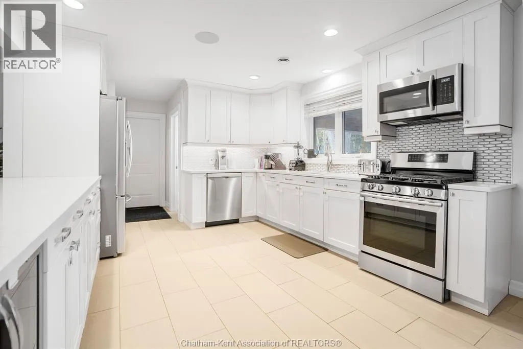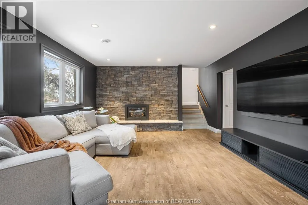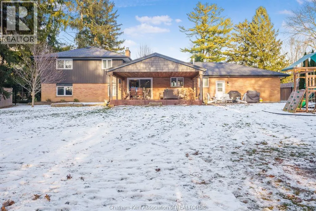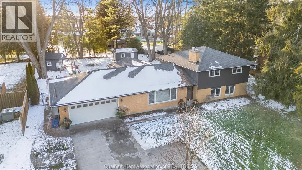 east on park ave, south on glenmar, south on lynnwood Welcome home to 32 Lynnwood Drive Chatham! An incredible 4-level home with attached double car garage in sought after Lynnwood subdivision. This home located on over ½ acre lot has extensive improvements throughout. Main floor offers large open concept dining room, family room with new stone fireplace and new napolean gas fireplace. Fall in love with cooking again in this incredible kitchen boasting updated cabinetry, quartz countertops, large island (5ft X 8 ft) and conveniently located main floor laundry. Sitting room off kitchen has easy access to covered composite deck with amazing view of meticulously landscaped yard featuring playhouse/garden shed, steel building, flagstone patio and cement patio. Lower level offers family room with new flooring, natural gas stone fireplace, office/4th bedroom and 3 pc bathroom. 3 large bedrooms on second level. Closet-Maid custom closets featured throughout home. Recent improvements include windows, doors, shingles soffits, fascia, eaves-trough, board & batten siding (2017). New boiler and hot water on demand in 2023, new lower level flooring. New sump pump and water back up 2024. Call today for your personal appointment to view this incredible property! (id:27476)