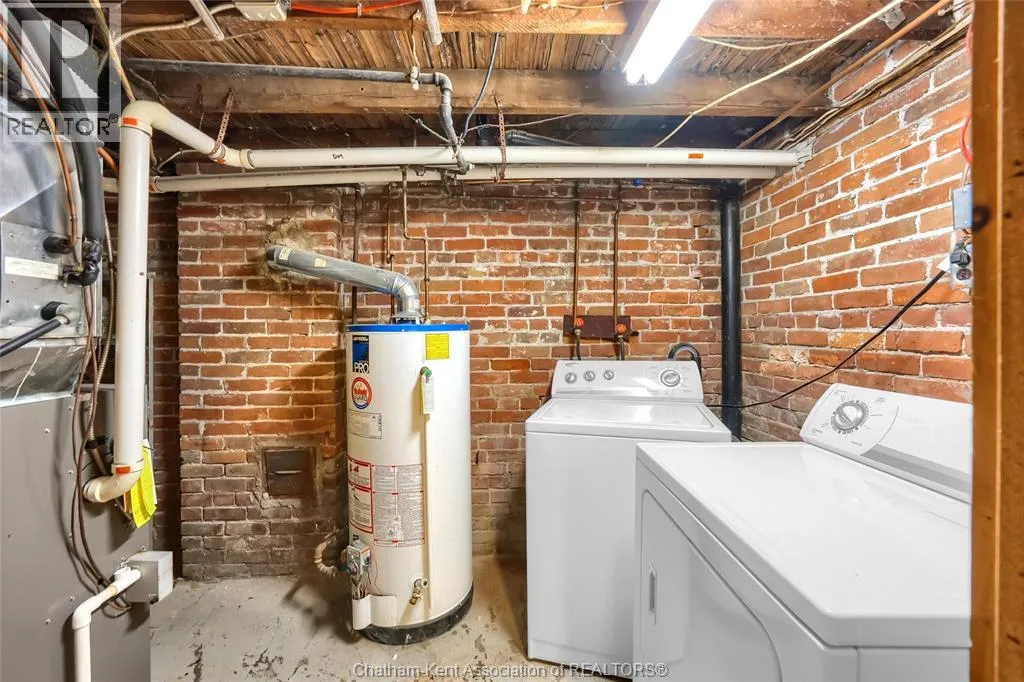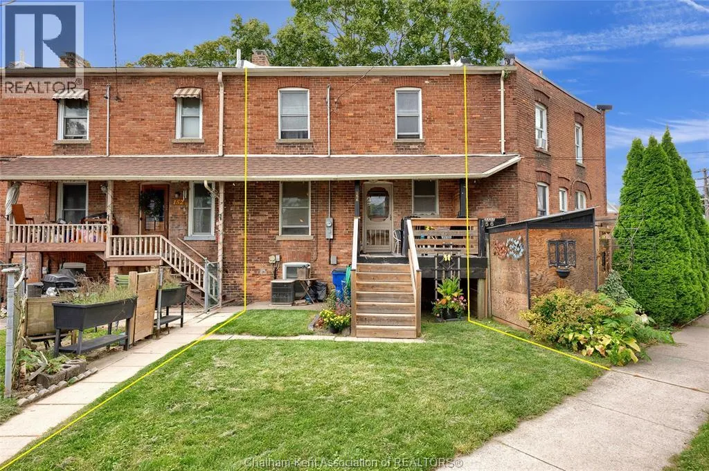 I love it! This charming brick townhouse is the perfect starter home and is solid from top to bottom with a new TPO roof installed in 2022 and hassle-free brick exterior. Front and back porch have been updated, so no worries there. Lots of convenience with its unique property lines that include a rear yard and parking space - the only one with parking. The home backs onto Grant street with access from parking space/backyard to either the basement or kitchen via the back porch. The open concept kitchen/dining room has plenty of room for a large table and island, with linoleum flooring and great circulation with entrance from front foyer and living room with pocket door. Front foyer and living room face Grand Ave and have hardwood flooring. Upstairs are three bedrooms and a good sized bathroom with tub/shower combo and built-in storage and linen closet. The basement is partially above grade with lots of daylight from front and rear windows, with a large rec room that just needs some carpet and a couple touch ups and it is ready for use. The rear half of the basement is storage space with shelving and a laundry/utility room with washer and dryer and walk-out to backyard - great for bikes and larger items. Reduce your exposure to eavestroughs, fences, crawlspaces, shingle roofs, siding and all the other problems that come with a wood framed starter home - Brick townhouses have been the logical choice in major cities for over a century. Very low taxes are the added bonus at $155per month for 2025. Look it over but don't overlook it! (id:27476)