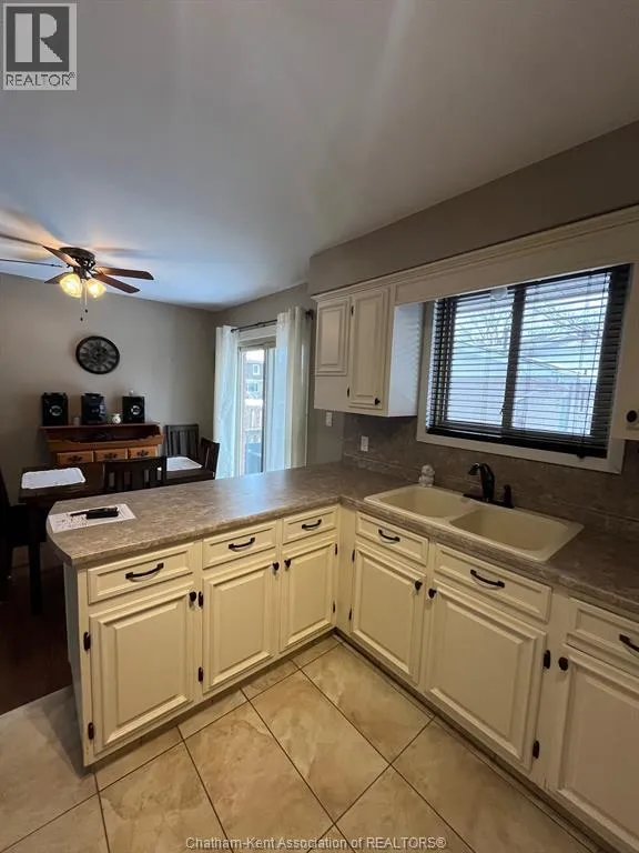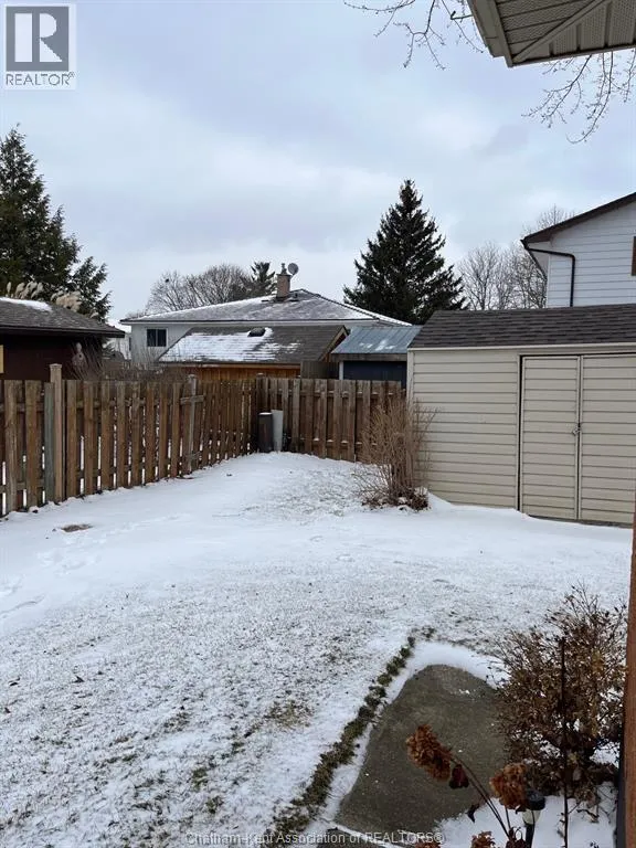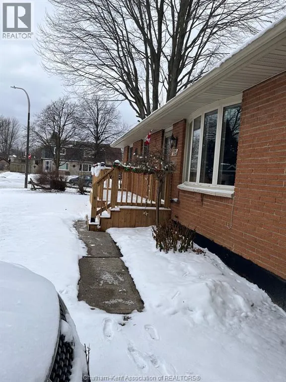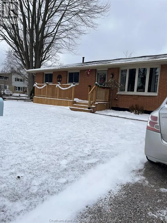 Located in the well sought-after Southside of Chatham is this well-maintained brick home on a large corner lot. This 3-bedroom ,1-bathroom home is move in ready! GREAT Curb appeal featuring a large new front porch, inside includes large living room, spacious kitchen with a dining area and gorgeous cupboards with tons of storage. just through the patio doors is a large deck for entertaining or just sitting out and relaxing in a fenced in back yard. Three nice sized bedrooms and a 4-pc bathroom allows for main floor living. The partially finished basement has a large rec room for entertaining your family or guests with a huge utility room updated with re-insulated walls. Large laundry area and lots of storage. One car garage with a new automatic opener leads out to a large driveway for plenty of parking. This home is close to shopping, schools, parks, walking trails and offers all your needs. Don't miss this one Call today!! (id:27476)