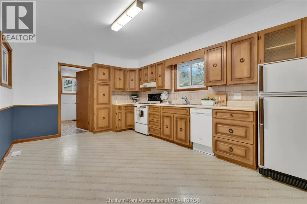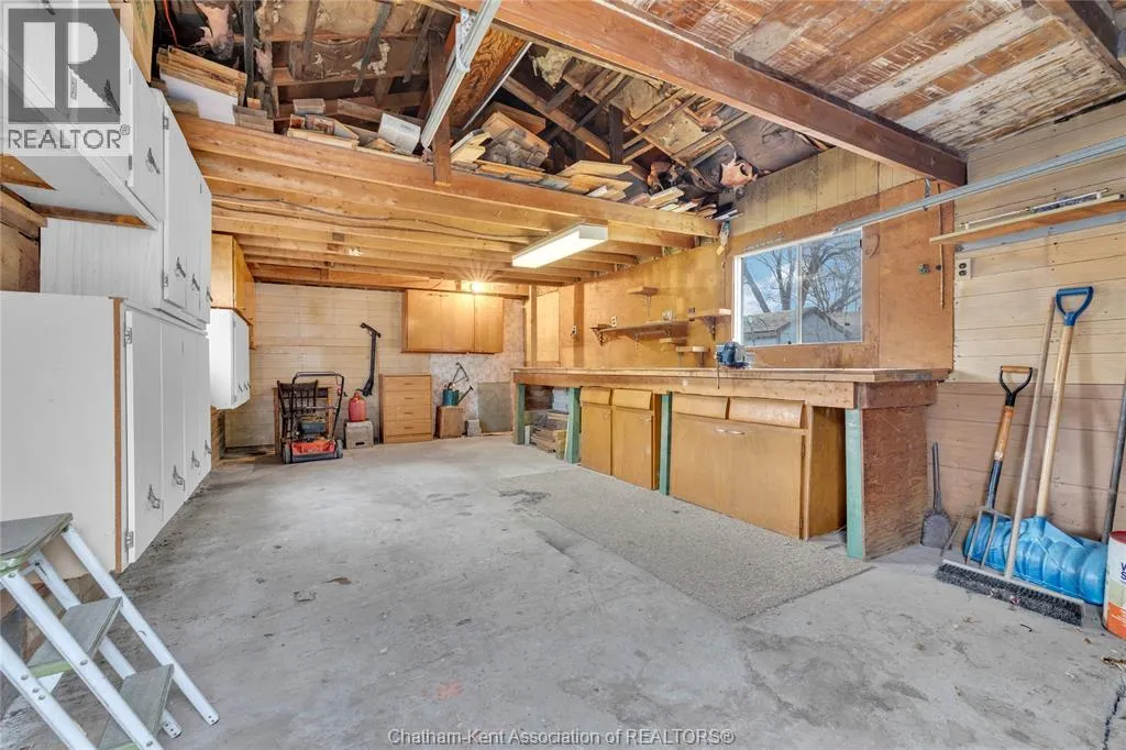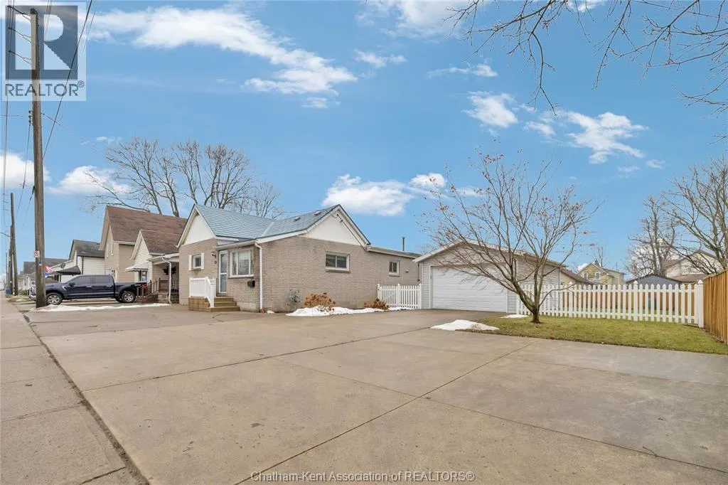This is an excellent opportunity to own a newly listed residential home. The refreshing property is situated on two combined residential lots, offering a spacious setting with potential investment opportunities. The newly painted home includes three bedrooms and one full 4-piece bathroom. Out front, there's a large concrete parking area that can fit up to five vehicles. The backyard is fully fenced, making it safe for young children and pets. Behind the house, a large 14 x 20 ft. deck overlooks the flower garden. On one other side of the lawn is a vegetable garden. The 1.5-car garage looks new and has a new roof (Dec. 2025), while the single garage has been used as a workshop. Property is being sold as is, where is. (id:27476)