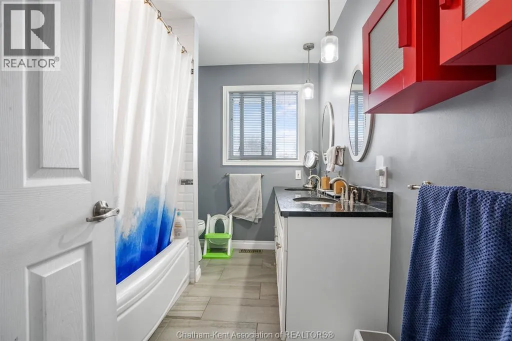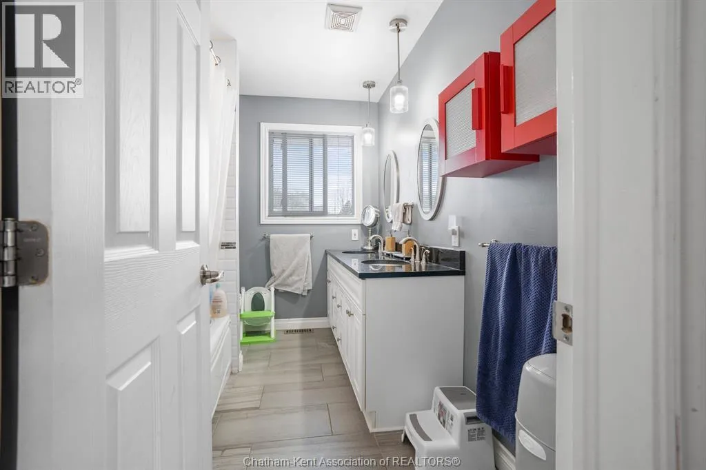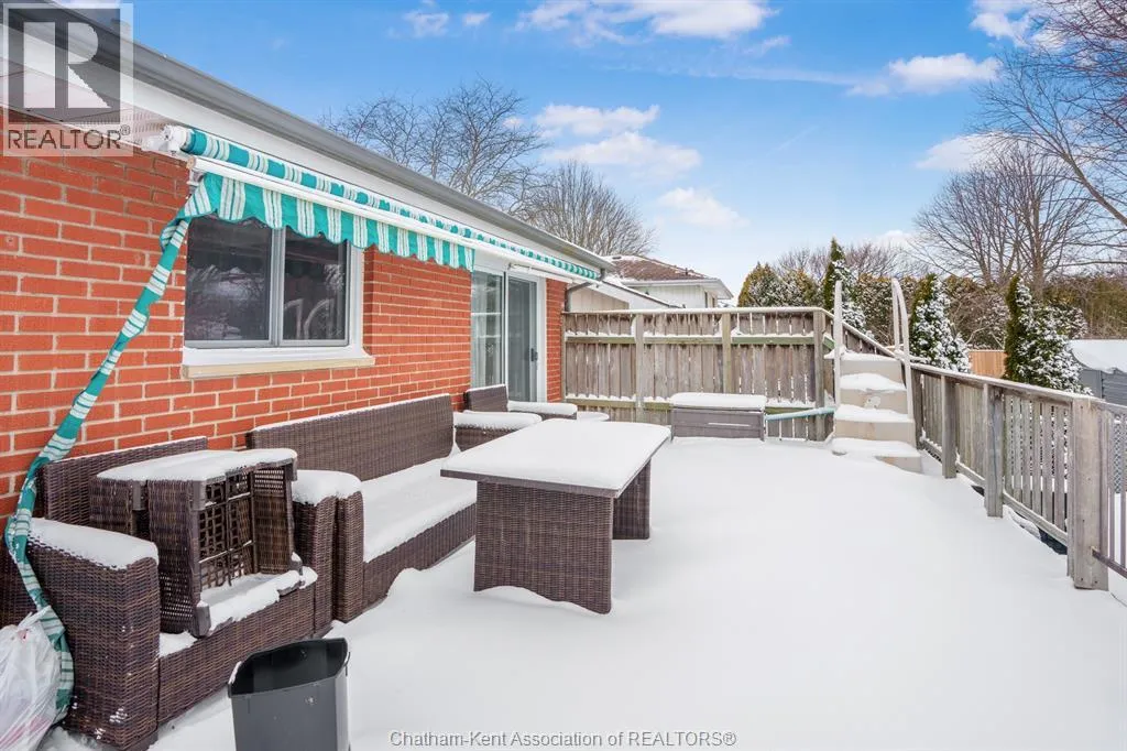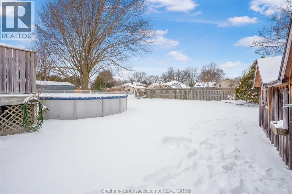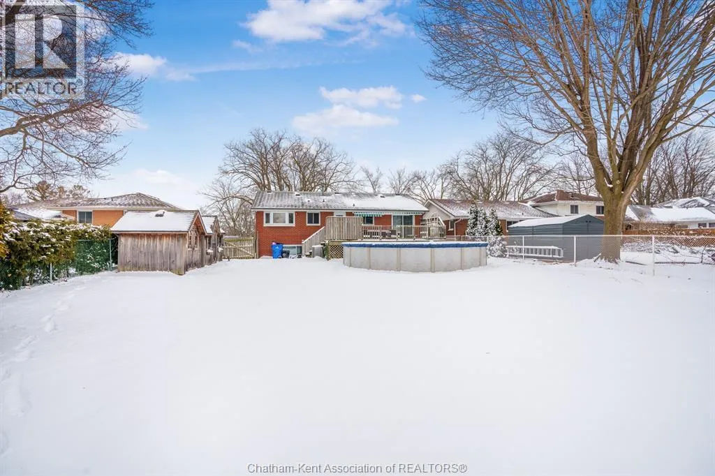 north on St. Clair, west on Ellis, north on marie, west on Lancefield This beautiful home shows better than the photos! 4 bedroom, 2 bathroom fabulously appointed raised ranch home on Chatham's desired Northside close to all amenities! The private backyard boasts a heated 24 ft above ground pool with newer heater and chlorinator (2025), plus amble green space for your kids and pets to play! The upper level of the home features a large living area, dining room, kitchen, 2 bedrooms and a 4 pc bathroom with heated flooring! The lower level offers a spacious living space, separate 3 pcs bathroom, laundry room and 2 more large bedrooms. Plus, youâll love the convenience of being right across the road from Ellis Park, offering green space and recreational opportunities just steps away. Two large backyard sheds. New owned hot water on demand unit! This home is just waiting for you to unpack!! Pls no showings before 2pm (id:27476)