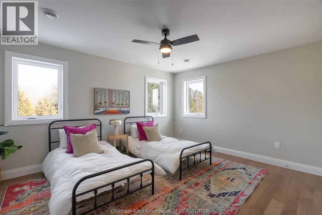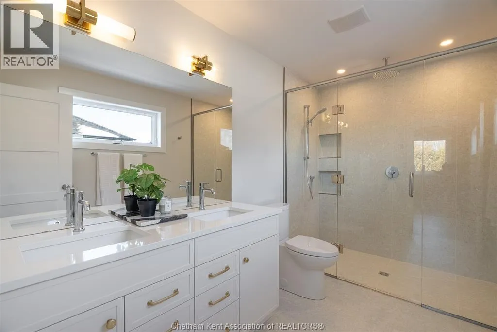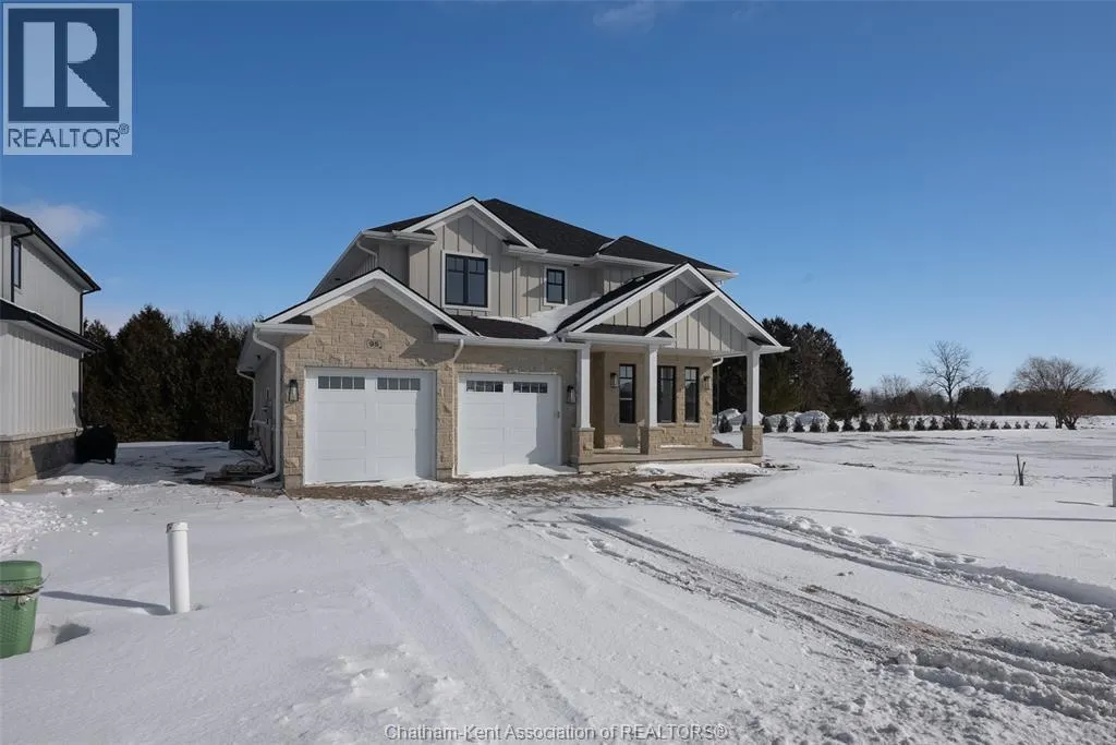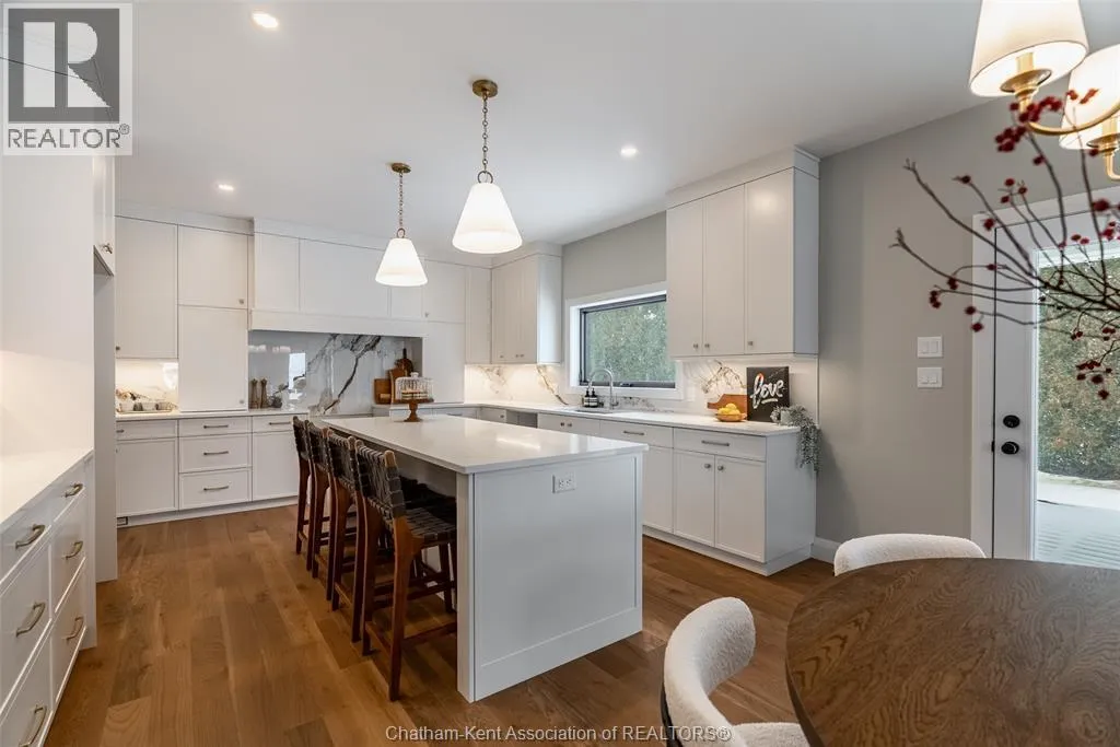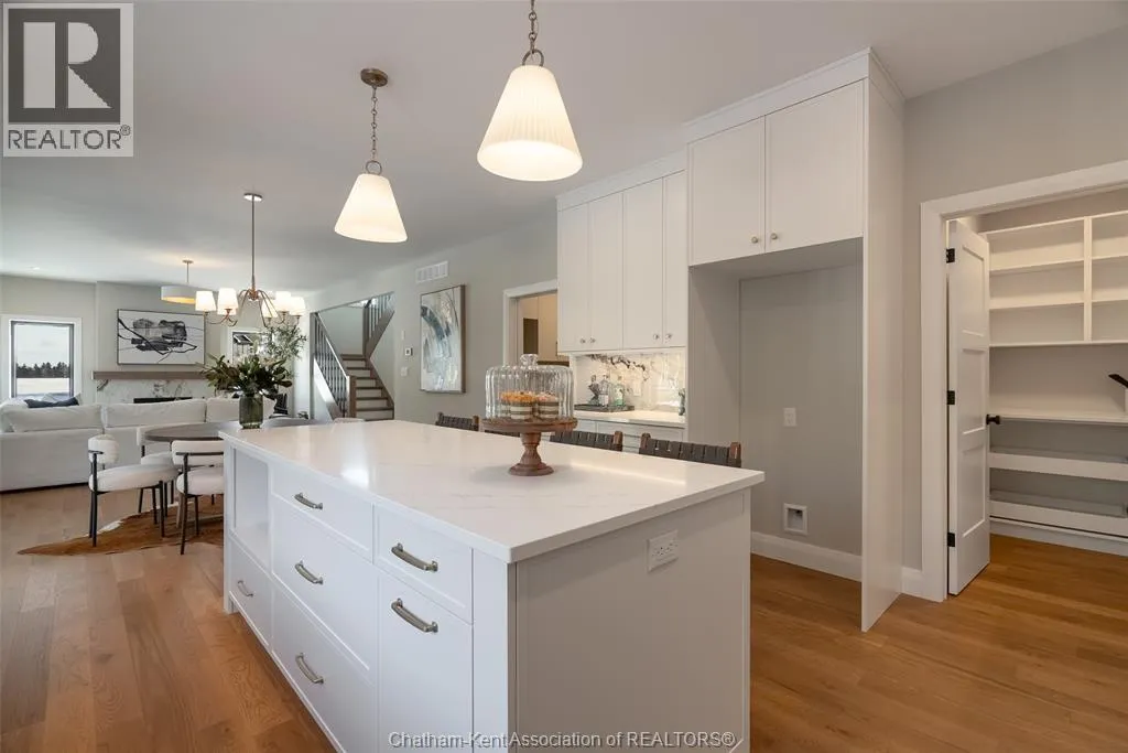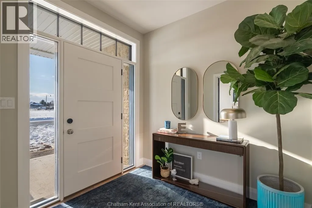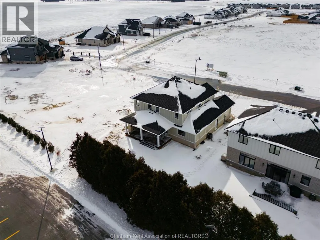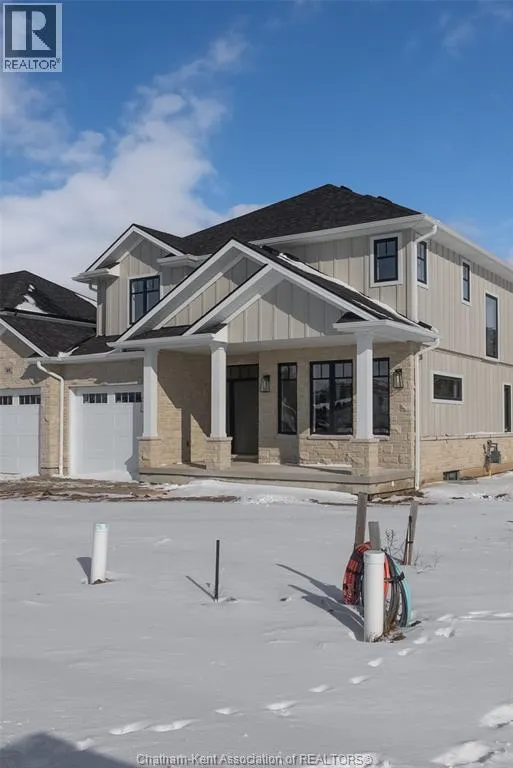Welcome to this stunning custom-built home by Ewald Custom Homes, where elevated design meets everyday luxury across 2,500+ sq ft of beautifully finished living space. Tucked away on a private, maturely treed lot, this home delivers the kind of privacy people wish they hadâwithout giving up convenience. Located on the south side of Chatham, this sought-after new development is minutes from all amenities, walking paths, and offers quick access to the 401 (because time matters). Inside, oversized windows flood the home with natural light, showing off warm tones, wide-plank hardwood floors, and thoughtfully curated finishes throughout. The open-concept main floor is made for hosting, featuring a statement kitchen with a large island, walk-in pantry, and seamless flow into the dining and living areas. The fireplace anchors the living roomâcozy, polished, and undeniably inviting. Upstairs, youâll find four generously sized bedrooms, including a dreamy primary retreat with a spa-inspired ensuite complete with a glass-enclosed shower and double vanity. 2.5 bathrooms, timeless design, and quality craftsmanship throughoutâno corners cut, no details missed.Private lot. Prime location. Custom quality. This one doesnât just check boxesâit raises the bar. Call today to #lovewhereyoulive (id:27476)