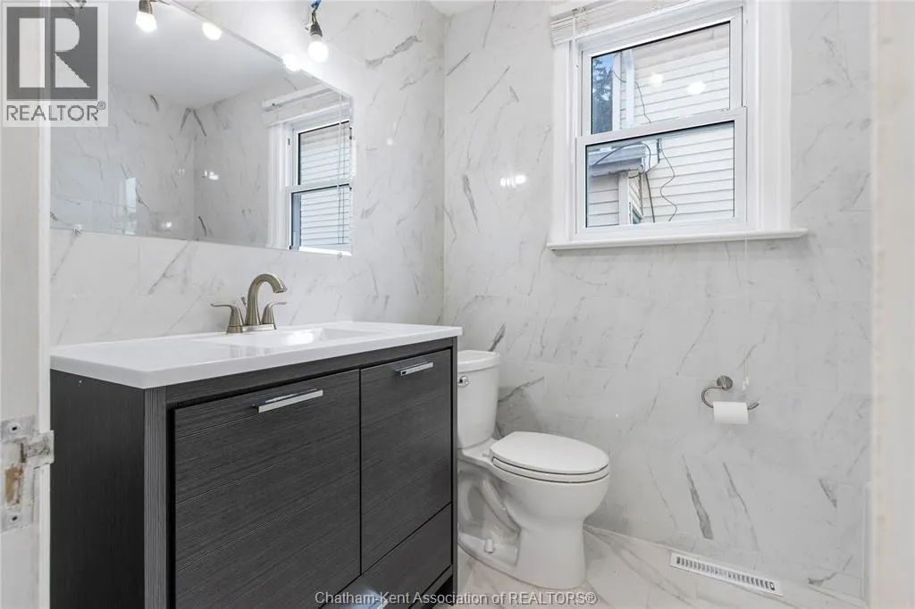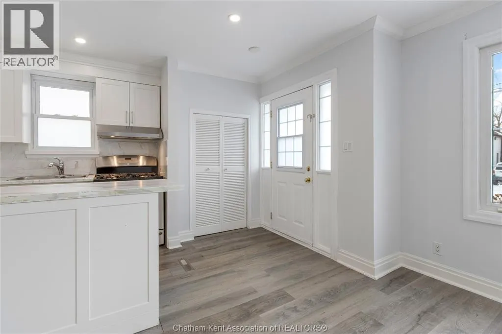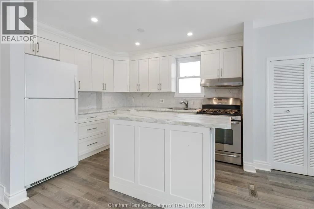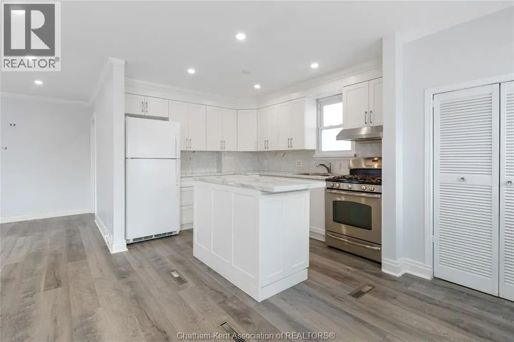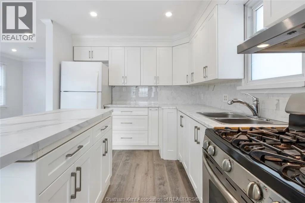 Step into opportunity with this beautifully refreshed brick bungalow located just steps from St Clair Street on Chathamâs north side. A great option for first-time buyers, anyone looking to downsize and investors! The open-concept layout connects a sleek white kitchen with ample cabinetry and a central large island that connects the living and dining areas. The main floor offers two comfortable bedrooms and a 4-piece bath. Downstairs, the finished lower level offers a private side entry that leads to a spacious rec room, a 3-piece bath, and generous storage. Outside, the detached garage is perfect for projects, while the fenced backyard with a large patio is a private oasis. Close to schools, parks, and amenities, this home blends comfort with growth potential! Don't delay and call today! (id:27476)