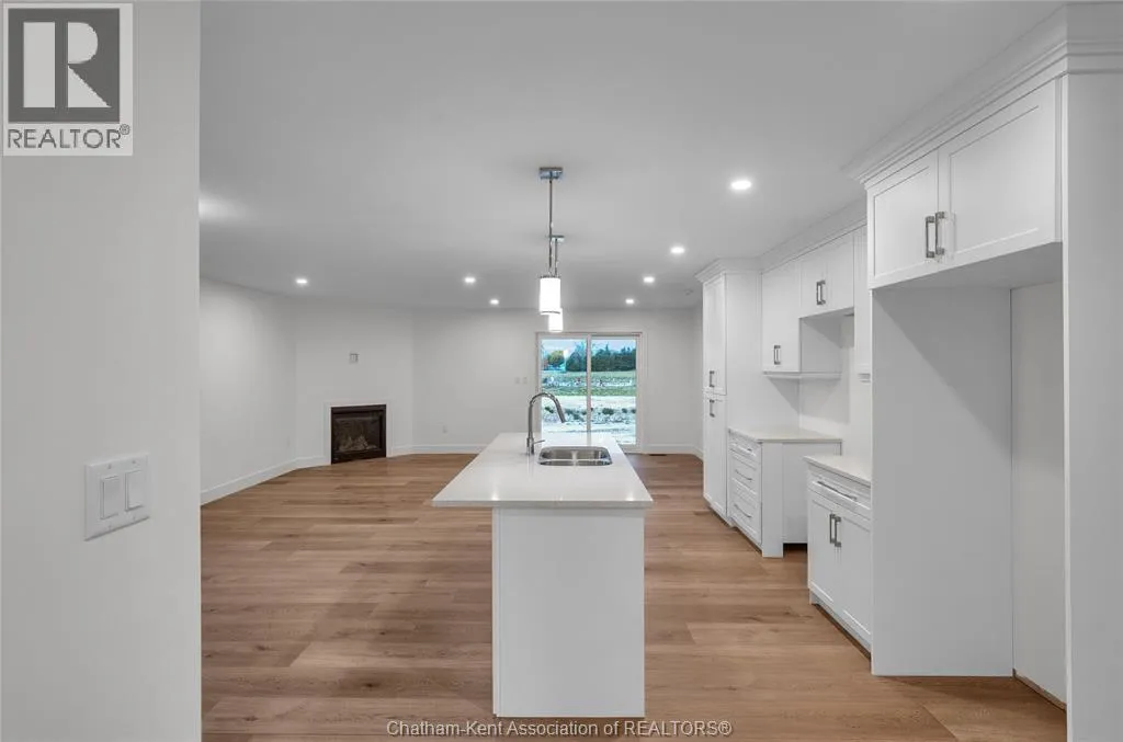 *** OPEN HOUSE WILL BE HELD AT 20 CORNERSTONE PLACE *** Welcome to this brand new open-concept semi-detached rancher on Chatham’s South side. Offering spacious, modern one-floor living, this home is filled with natural light and features two bedrooms and two full baths, including a large primary suite with walk-in closet and ensuite. The primary bedroom is thoughtfully positioned at the back of the home for privacy, while the additional bedroom and main bath are located at the front. The open layout flows from the kitchen with quartz countertops into the dining and living areas, where a cozy fireplace adds warmth and charm. The second bedroom offers flexibility for kids, grandkids, guests, or a home office. Enjoy the convenience of main-floor laundry, an attached garage, a full unfinished basement for future development, and a covered back patio perfect for relaxing outdoors. This Mi Cazza Construction quality-built home delivers exceptional value and comfort in a prime South Chatham location. Photos may include virtual staging or images from a similar build. (id:27476)