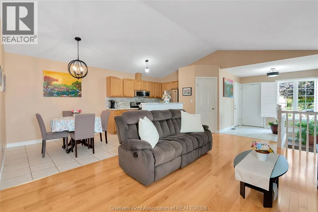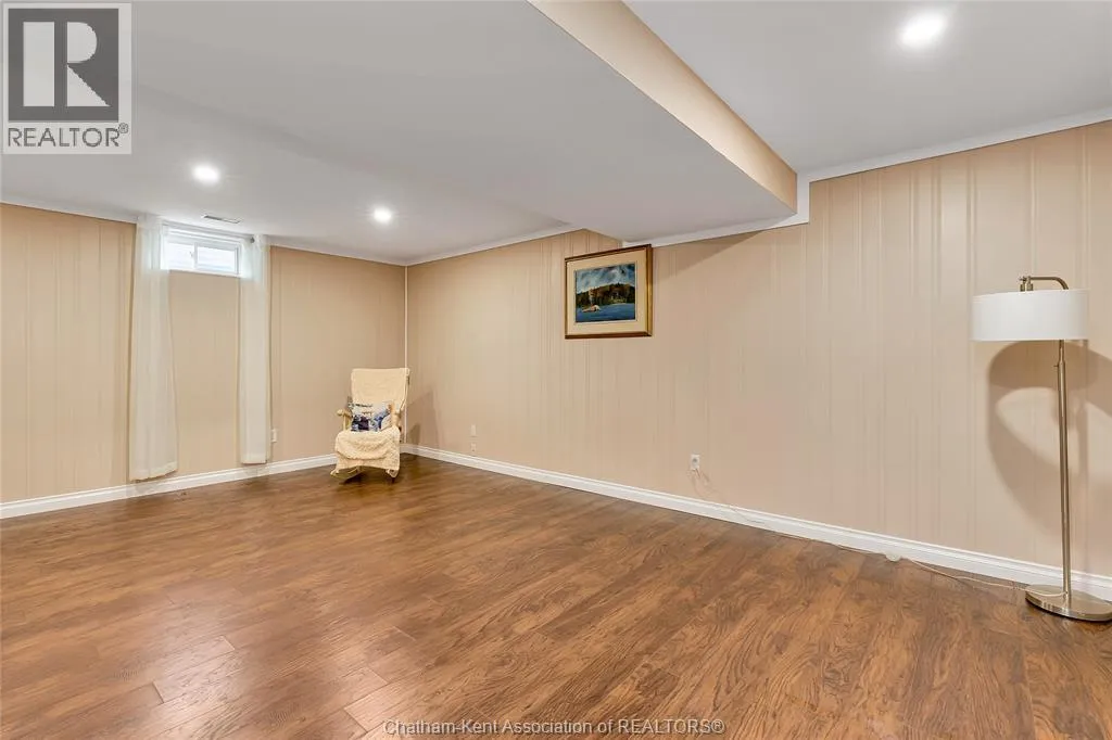 Effortless Living in Style home in Chatham. Welcome to this beautifully maintained 3-bedroom, 2-bathroom bungalow-style row home offering the perfect blend of comfort, style, and convenience. With 2 spacious bedrooms on the main floor and a third bedroom in the finished lower level, thereâs room for family, guests, or a private home office. Inside, you'll find beautiful hardwood floors, California shutters, and a warm, inviting layout. The bright, functional kitchen is a standout with its stone backsplash, plenty of cabinet space, and a functional design that makes meal prep a breeze. The finished basement includes a full second bathroom and a good-sized laundry roomâideal for everyday ease and storage. Step outside to enjoy your new backyard deck and new fence, creating a peaceful, private outdoor space to enjoy your morning coffee. Close to St Clair College and the new Rogers Sports Dome to play pickleball or tennis in a comfortable setting. Low-maintenance exterior and affordable maintenance fees make this home an excellent choice for downsizers, busy professionals, or first-time buyers seeking move-in-ready living without the hassle. $75 a month association fee covers snow removal and grass cutting. (id:27476)