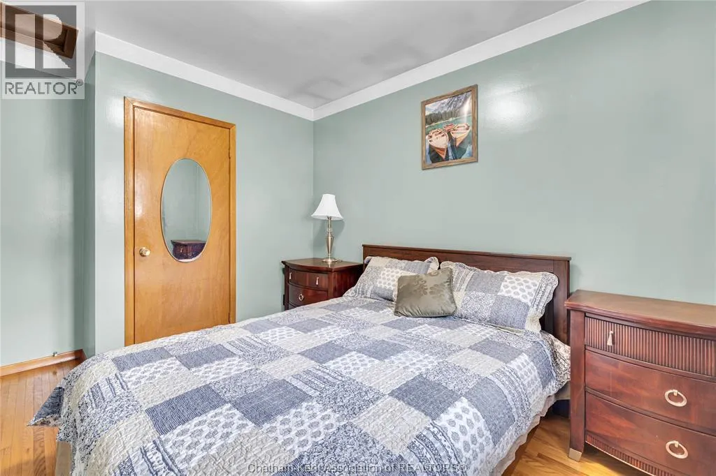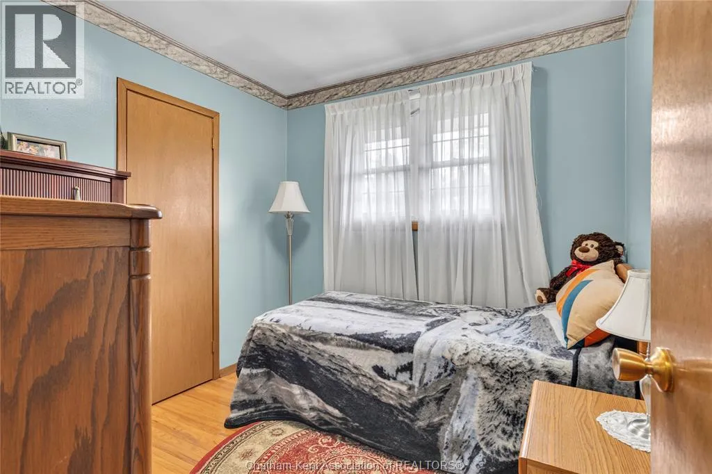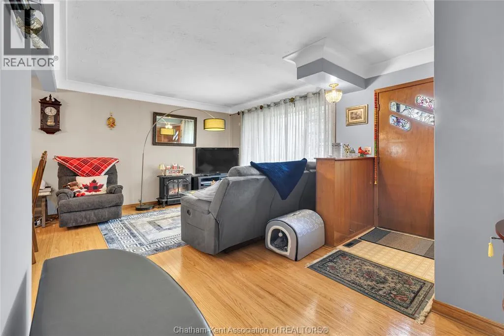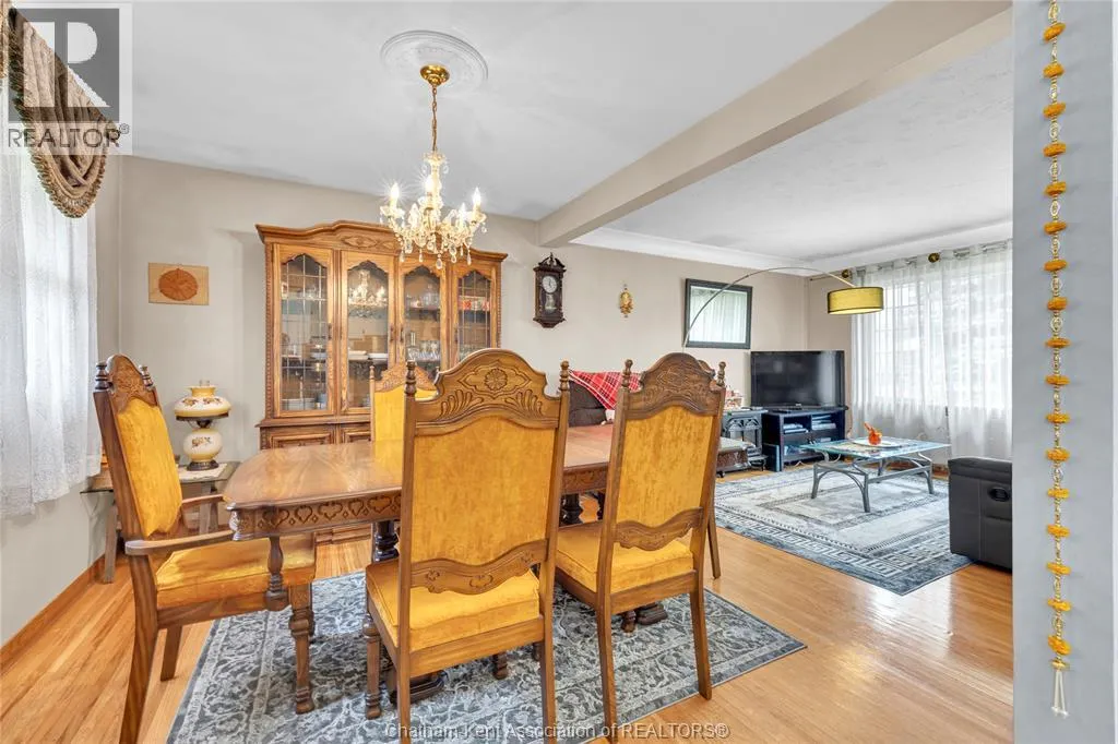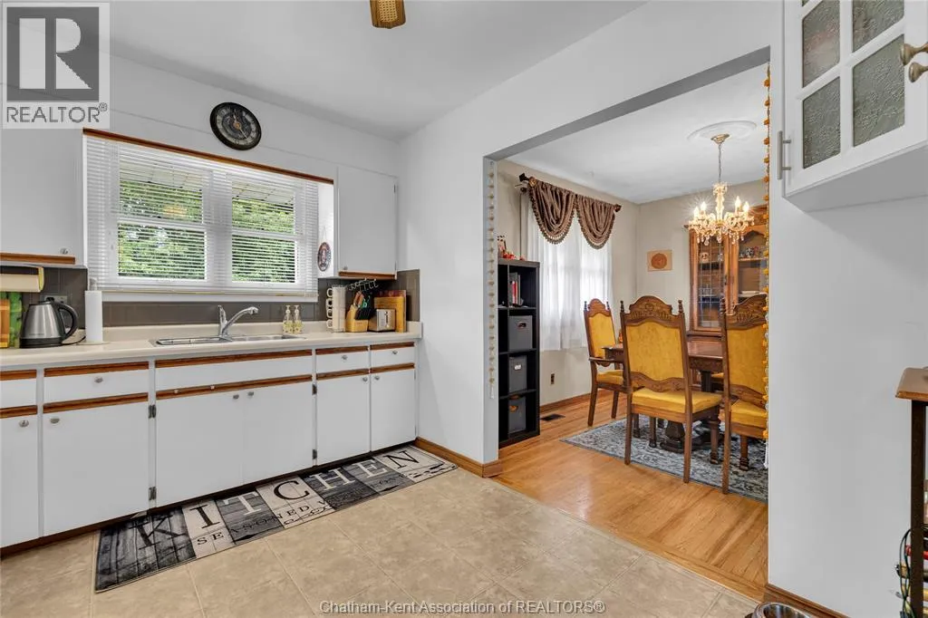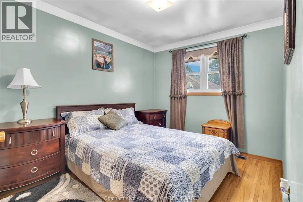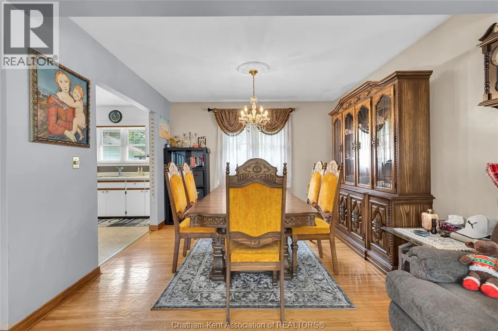 Tucked away on a quiet dead-end street, this charming brick bungalow is a hidden gem you wonât find often. Set on a deep lot over 200 feet long, this property feels like your own private orchardâfeaturing mature cherry, peach, apricot and 2 pear trees, plus a thriving vegetable garden with herbs, garlic, peppers, and more. The main floor offers original hardwood floors throughout the bright living room, dining area, and three comfortable bedrooms. A 4-piece bathroom and a functional kitchen complete the space. Just off the back, enjoy a peaceful 3-season sunroom overlooking the lush yard. Downstairs, the finished basement boasts a large family room, a 3-piece bathroom, and a spacious laundry area that could easily be converted into a second kitchen. With a separate rear entrance, this space has great potential for multi-generational living, a student rental, or a self-contained bachelor suite. Detached 1.5-car garage and an extra-long double wide driveway, 2 sump pumps and new furnace and AC. Close to schools and amenities. (id:27476)