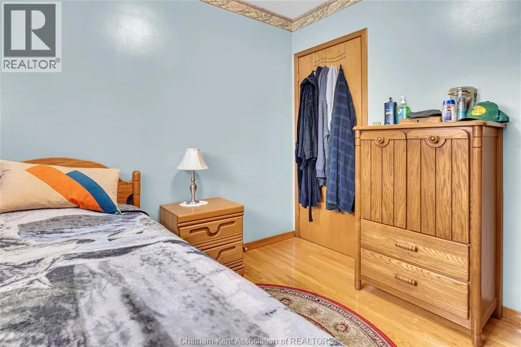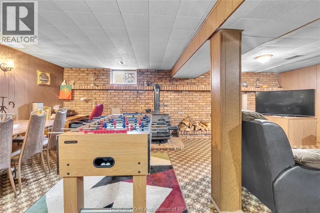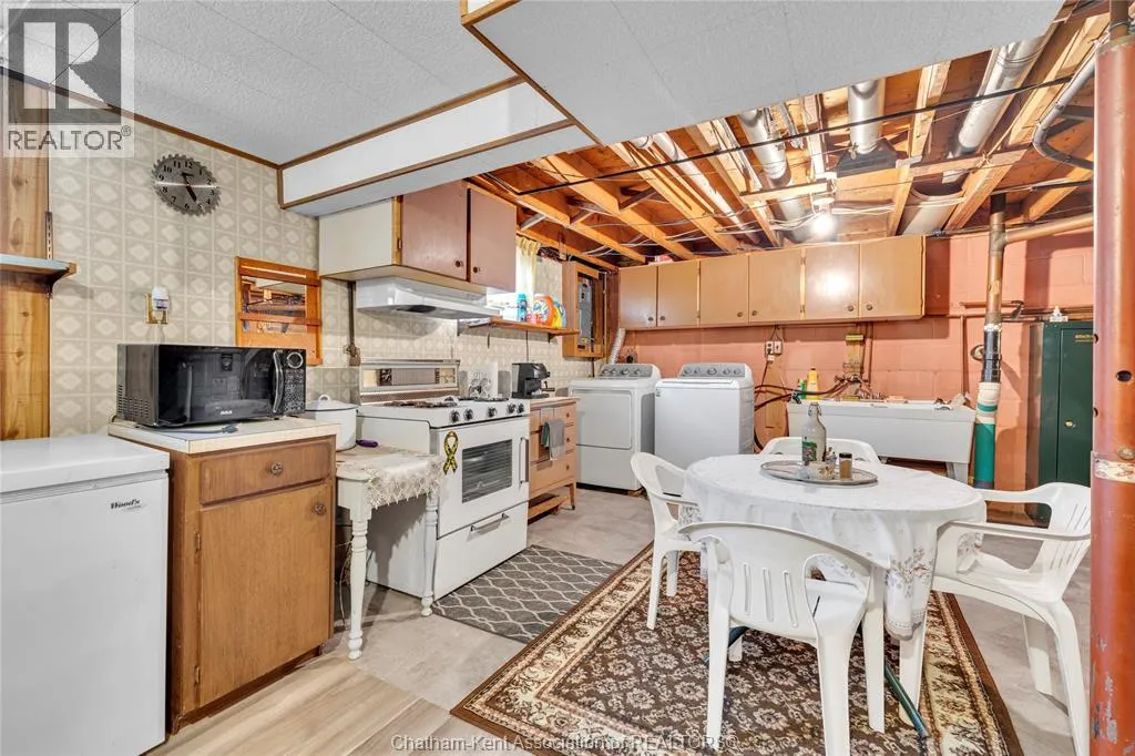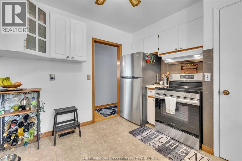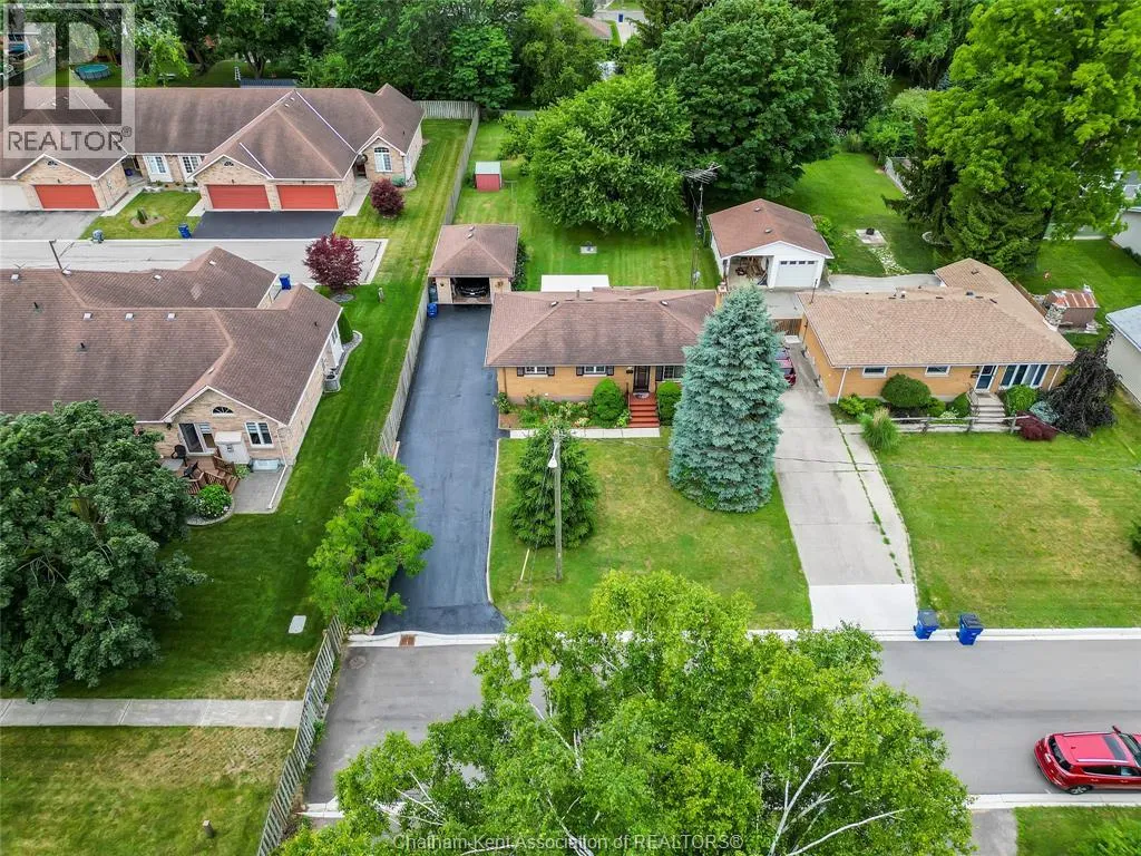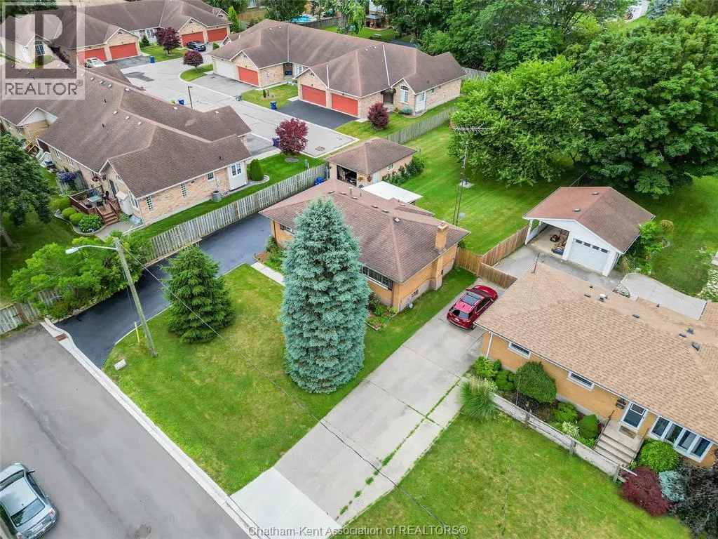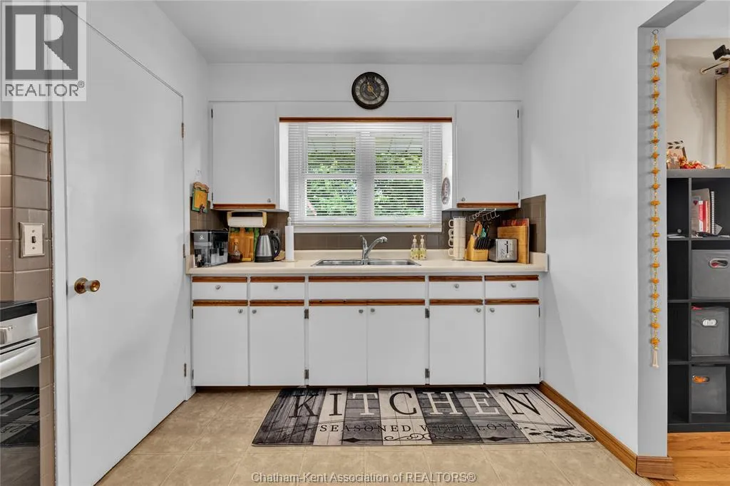 Tucked away on a quiet dead-end street, this charming brick bungalow is a hidden gem you wonât find often. Set on a deep lot over 200 feet long, this property feels like your own private orchardâfeaturing mature cherry, peach, apricot and 2 pear trees, plus a thriving vegetable garden with herbs, garlic, peppers, and more. The main floor offers original hardwood floors throughout the bright living room, dining area, and three comfortable bedrooms. A 4-piece bathroom and a functional kitchen complete the space. Just off the back, enjoy a peaceful 3-season sunroom overlooking the lush yard. Downstairs, the finished basement boasts a large family room, a 3-piece bathroom, and a spacious laundry area that could easily be converted into a second kitchen. With a separate rear entrance, this space has great potential for multi-generational living, a student rental, or a self-contained bachelor suite. Detached 1.5-car garage and an extra-long double wide driveway, 2 sump pumps and new furnace and AC. Close to schools and amenities. (id:27476)
