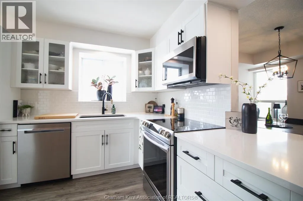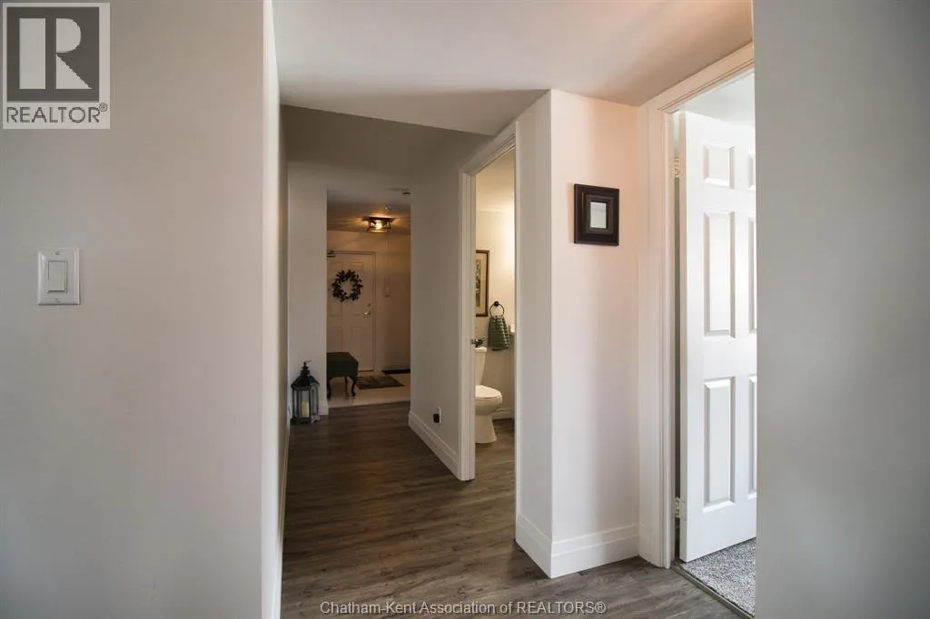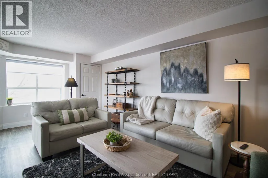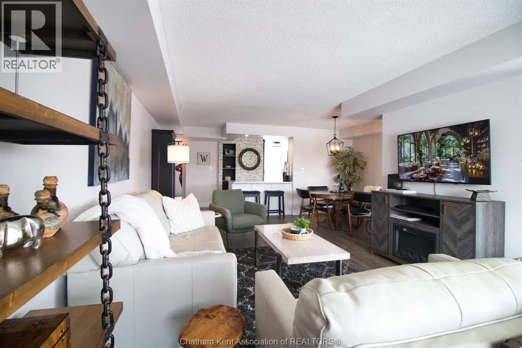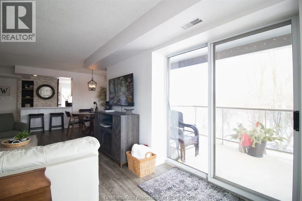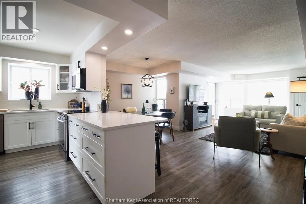 Grand Avenue East to Van Allen Avenue Looking to downsize and no more exterior maintenance? Welcome to River Thames Estates. This prime end unit is situated on the eastside of the building and has a private and beautiful view of the river. This gorgeous unit has had extensive renovations and updates including modern white kitchen with all appliances which has been opened to the living/dining area. All new luxury laminate flooring, updated bathroom vanities and freshly painted in a bright neutral colour. Spacious master bedroom suite with ensuite bath plus additional second bedroom or den with 3 pc bath. The building has a small exercise room, common party room with kitchen, bathroom and outdoor patio with BBQ. This condo includes 1 outdoor parking space and a storage unit. Enjoy easy carefree living!! (id:27476)