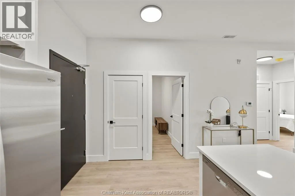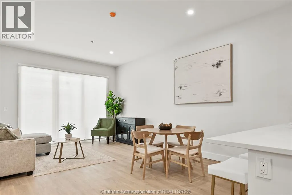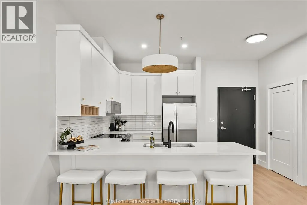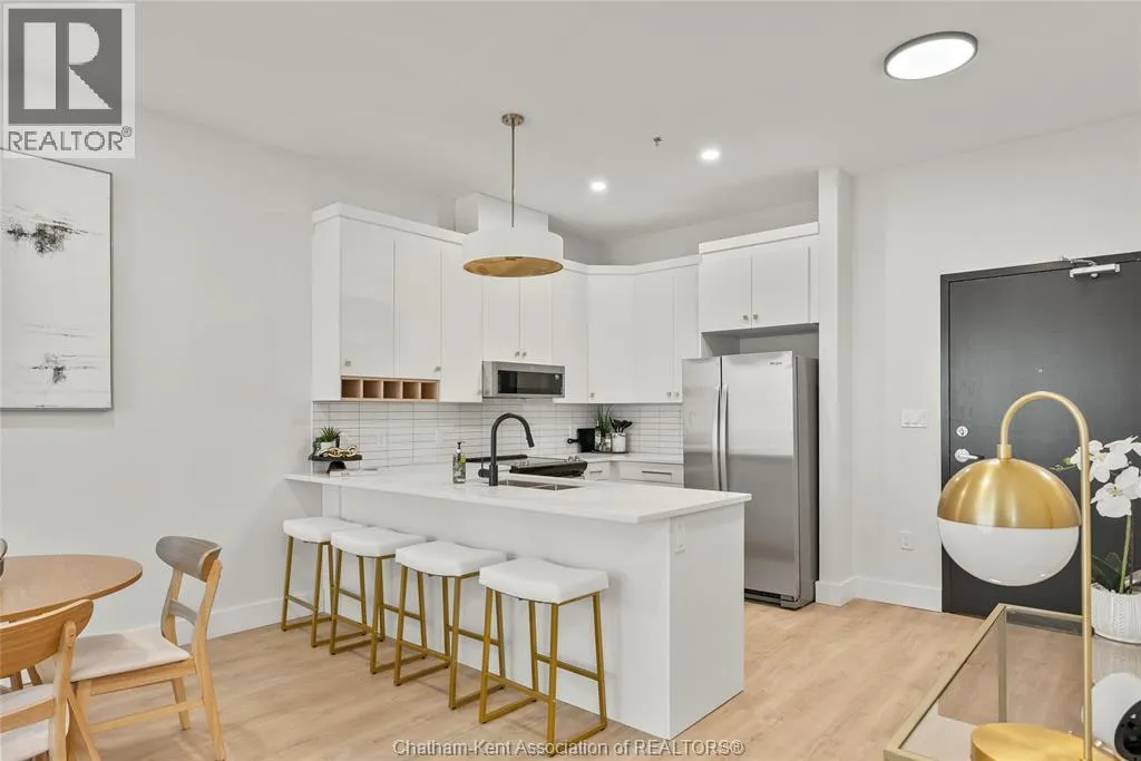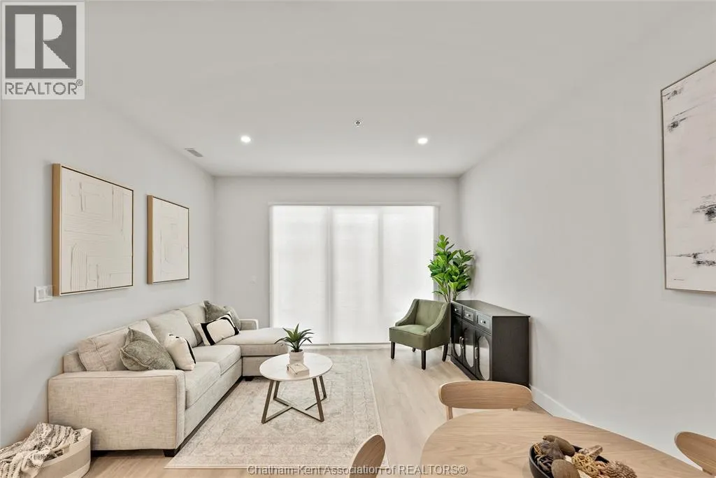 Welcome to the Avalon on Grand, where luxury meets convenience. Ark Design Build's newest offering in Chatham, a spacious one-bedroom apartment with full size den/office, that is designed with your comfort and lifestyle in mind. Boasting an impressive 10 ft ceiling, this unit offers an airy and open ambiance that is not found in other buildings. The modern kitchen is a chef's dream, featuring quartz countertops and quality appliances that make cooking a pleasure. Step into the large bedroom and discover a walk-in closet and an expansive window that bathes the space in natural light. The private balcony, with glass panel railing, provides an exclusive outdoor retreat perfect for morning coffees or quiet evenings in the summer. The apartment is complete with a 3pc bathroom and in-unit laundry with front-load washer and dryer. Best of all, utilities are included in the price, ensuring a hassle-free living experience. The Avalon on Grand redefines apartment living. Occupancy November '24 (id:27476)