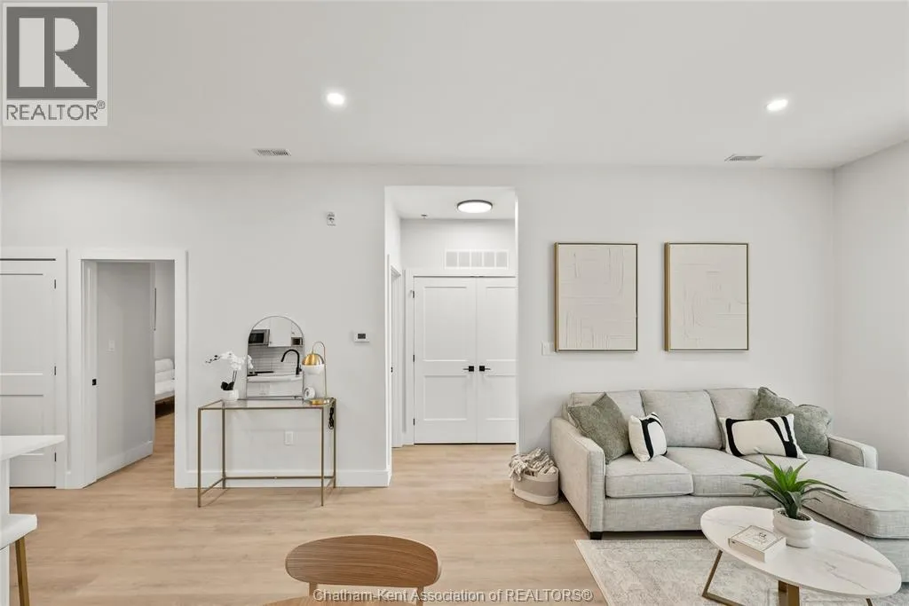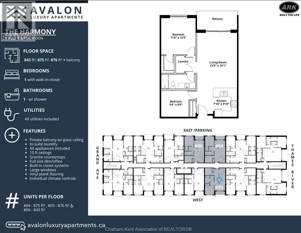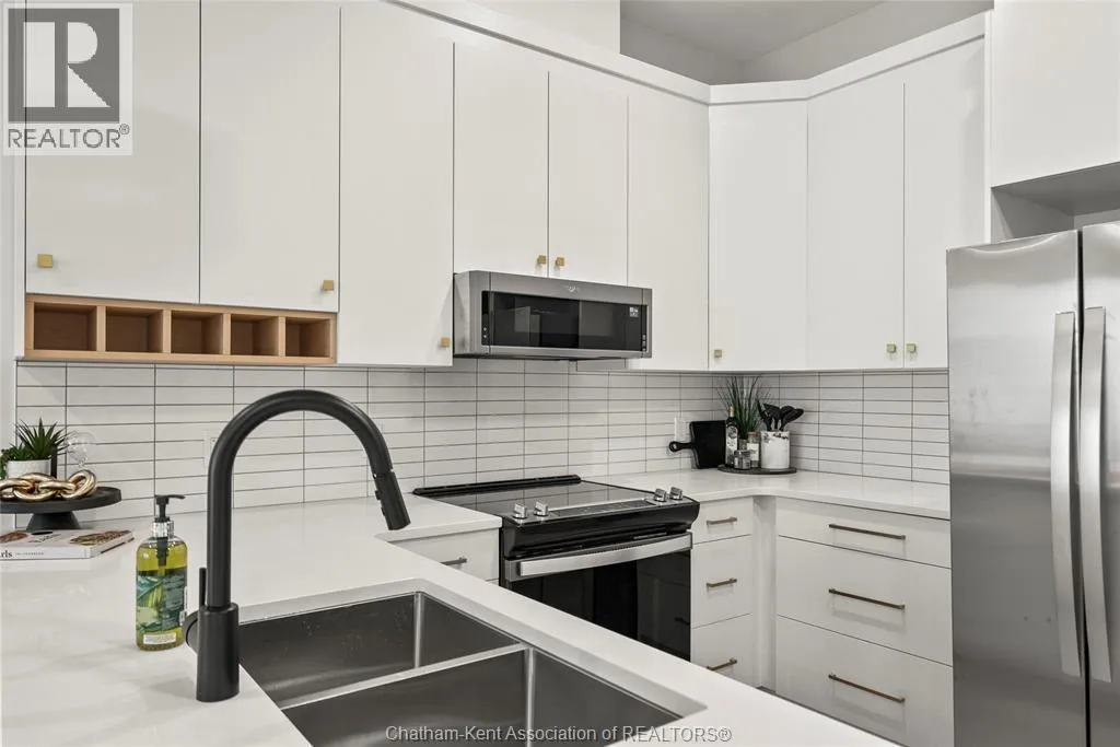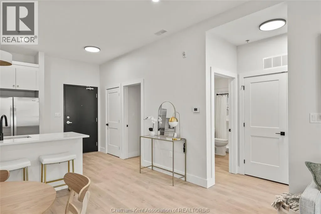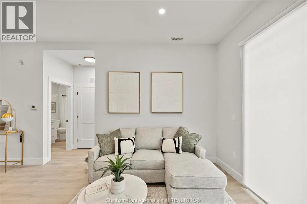 Welcome to the Avalon on Grand, where luxury meets convenience. Ark Design Build's newest offering in Chatham, a spacious one-bedroom apartment with full size den/office, that is designed with your comfort and lifestyle in mind. Boasting an impressive 10 ft ceiling, this unit offers an airy and open ambiance that is not found in other buildings. The modern kitchen is a chef's dream, featuring quartz countertops and quality appliances that make cooking a pleasure. Step into the large bedroom and discover a walk-in closet and an expansive window that bathes the space in natural light. The private balcony, with glass panel railing, provides an exclusive outdoor retreat perfect for morning coffees or quiet evenings in the summer. The apartment is complete with a 3pc bathroom and in-unit laundry with front-load washer and dryer. Best of all, utilities are included in the price, ensuring a hassle-free living experience. The Avalon on Grand redefines apartment living. Occupancy November '24 (id:27476)