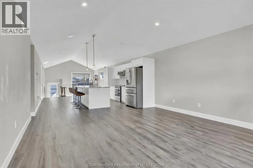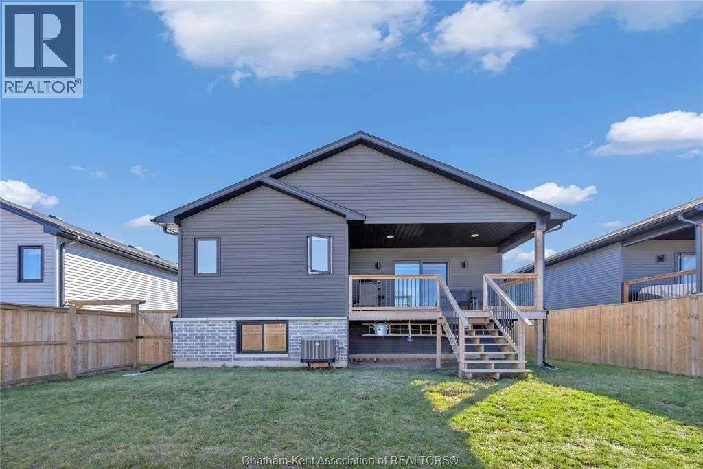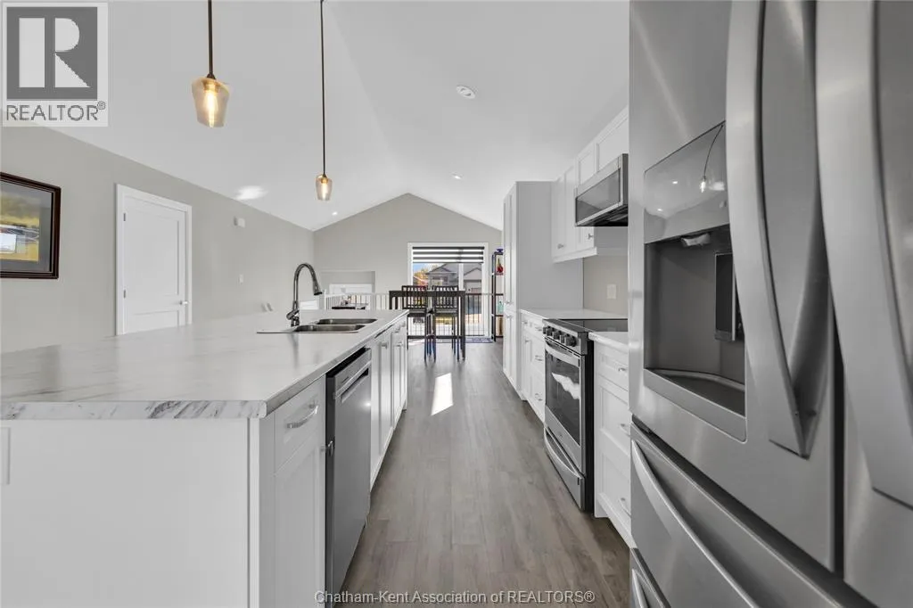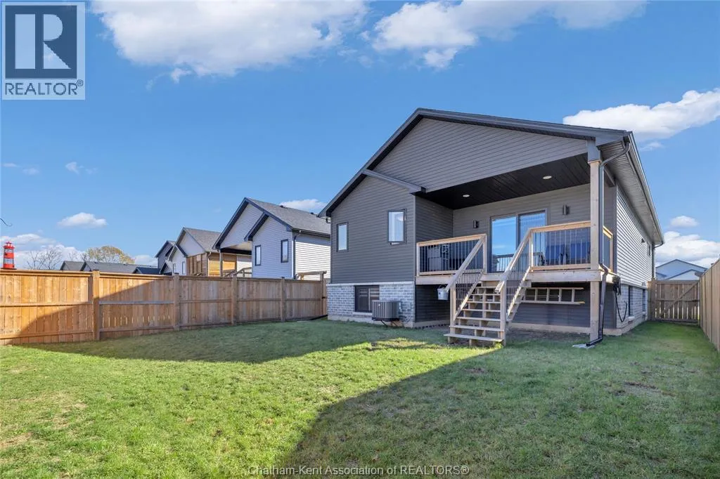 Located in The Landings, one of Chathamâs most desirable and family-friendly communities, 13 Baffin Way offers modern comfort, thoughtful design, and the assurance of Tarion warranty coverage until September 2030. Built in 2023, this contemporary raised ranch features an open concept main floor with cathedral ceilings and large windows that bring natural light into every room. The kitchen features a spacious center island, newer stainless steel appliances, soft-close cabinetry and seamlessly connects to the dining and living areas, creating an ideal setting for both everyday living and entertaining. The primary suite offers a walk-in closet and a private ensuite with a double vanity and a glass shower. A second bedroom and a full 4-piece bathroom provide versatility for guests, family, or a home office. The unfinished lower level presents exceptional potential to build equity - Featuring high ceilings, large windows that brighten the space, a roughed-in bathroom, and the opportunity to create two additional bedrooms, a full living area & a wet bar or kitchenette. Whether you want additional space, future rental potential, or long-term resale value, this lower level is a significant advantage. Outside, enjoy a fenced backyard and an attached 1.5-car garage. The home is located within a smaller and more exclusive subdivision that offers walking trails, green spaces, a neighbourhood park, and quiet streets with minimal traffic. It is a setting designed for families and anyone seeking a peaceful and connected lifestyle. The property is conveniently located near north side shopping, restaurants, schools, and provides quick access to Highway 40 and the 401. (id:27476)