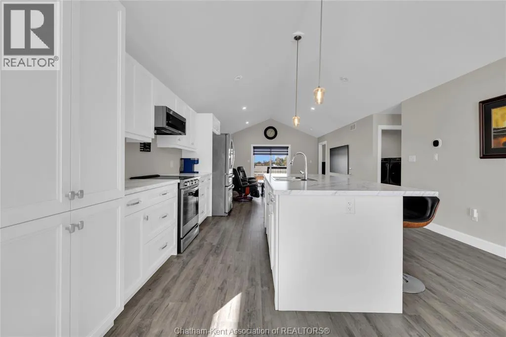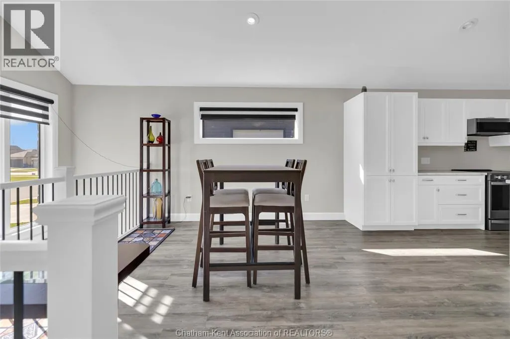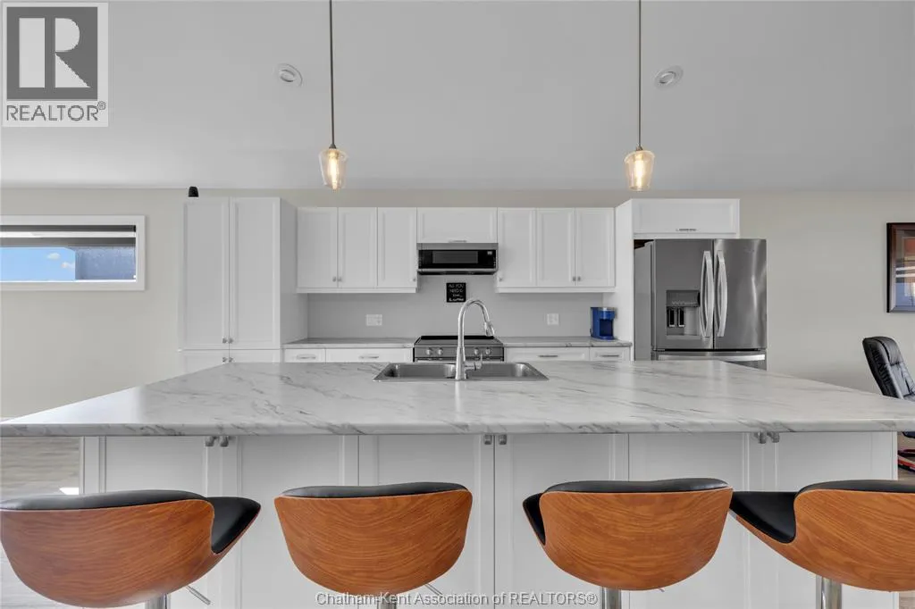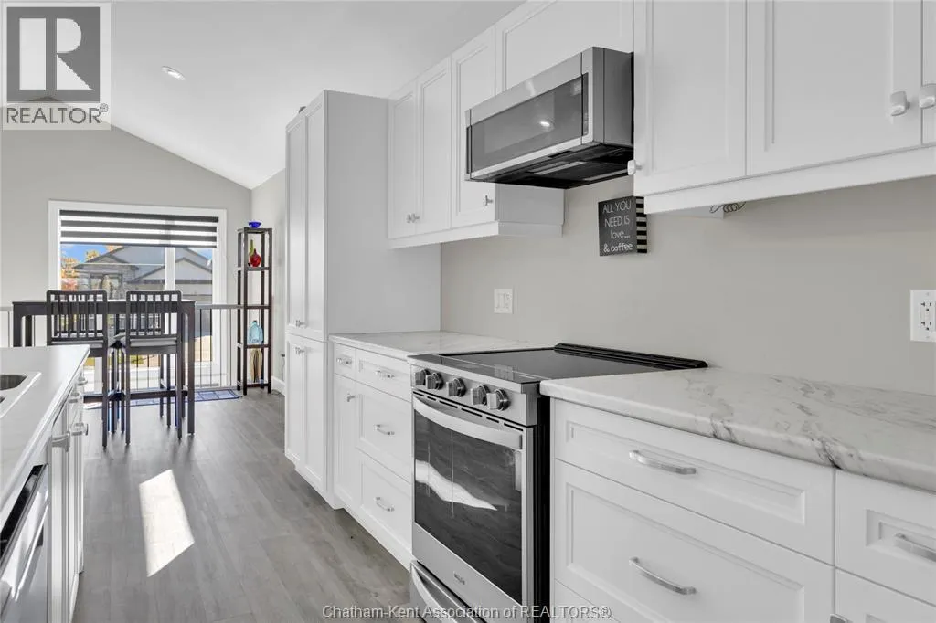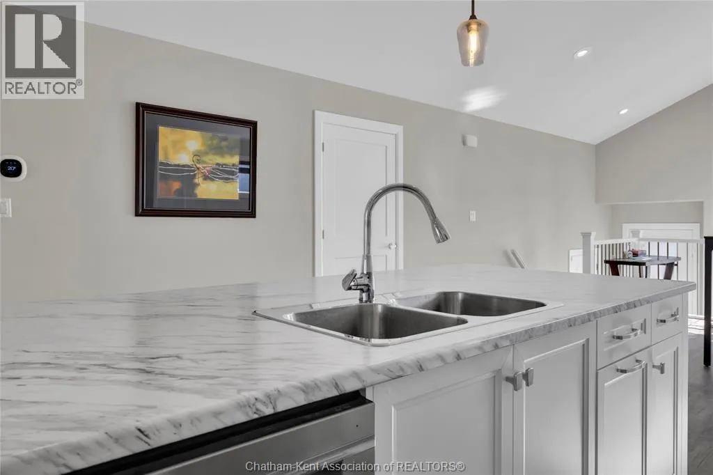 Located in The Landings, one of Chathamâs most desirable and family-friendly communities, 13 Baffin Way offers modern comfort, thoughtful design, and the assurance of Tarion warranty coverage until September 2030. Built in 2023, this contemporary raised ranch features an open concept main floor with cathedral ceilings and large windows that bring natural light into every room. The kitchen features a spacious center island, newer stainless steel appliances, soft-close cabinetry and seamlessly connects to the dining and living areas, creating an ideal setting for both everyday living and entertaining. The primary suite offers a walk-in closet and a private ensuite with a double vanity and a glass shower. A second bedroom and a full 4-piece bathroom provide versatility for guests, family, or a home office. The unfinished lower level presents exceptional potential to build equity - Featuring high ceilings, large windows that brighten the space, a roughed-in bathroom, and the opportunity to create two additional bedrooms, a full living area & a wet bar or kitchenette. Whether you want additional space, future rental potential, or long-term resale value, this lower level is a significant advantage. Outside, enjoy a fenced backyard and an attached 1.5-car garage. The home is located within a smaller and more exclusive subdivision that offers walking trails, green spaces, a neighbourhood park, and quiet streets with minimal traffic. It is a setting designed for families and anyone seeking a peaceful and connected lifestyle. The property is conveniently located near north side shopping, restaurants, schools, and provides quick access to Highway 40 and the 401. (id:27476)