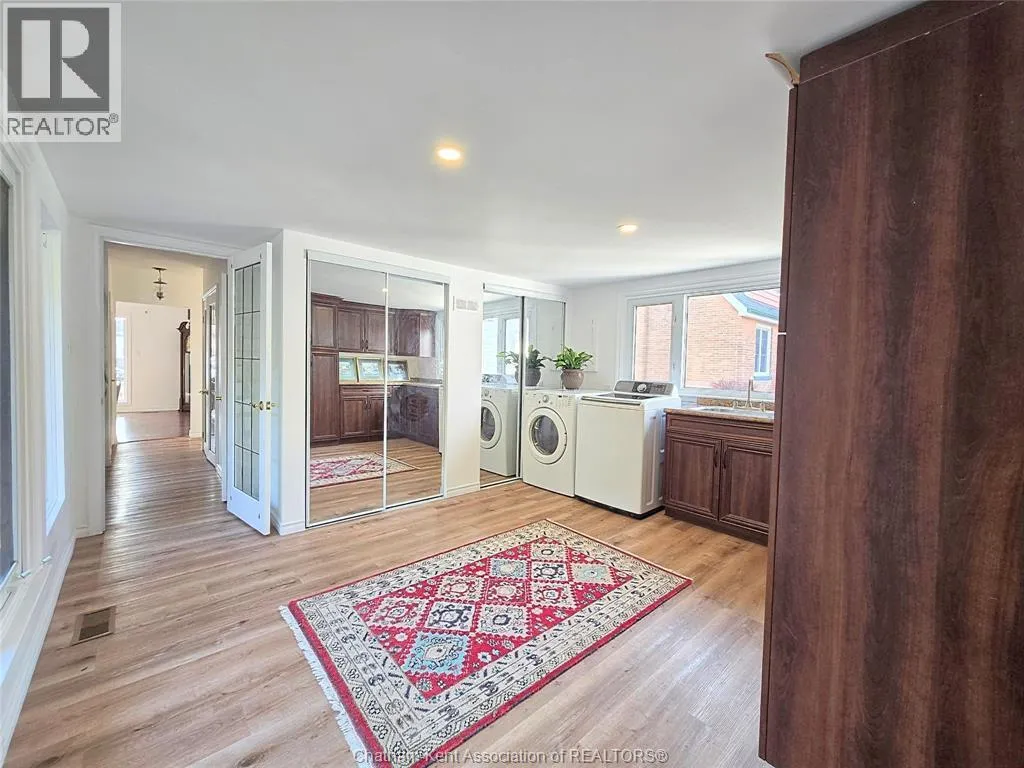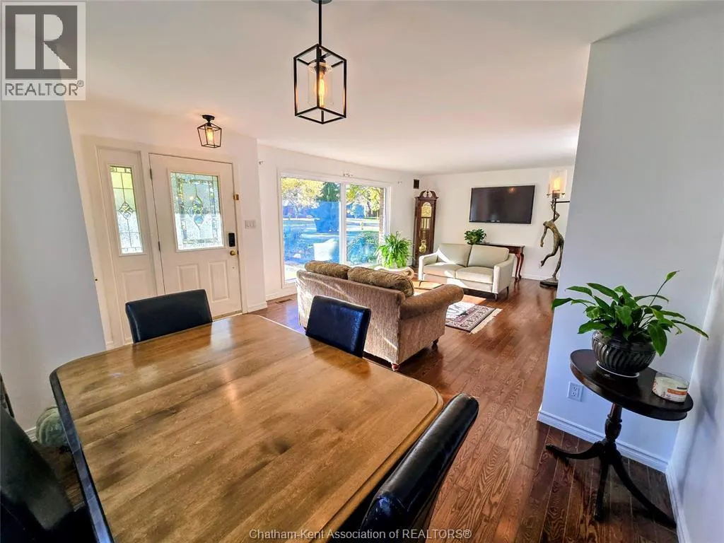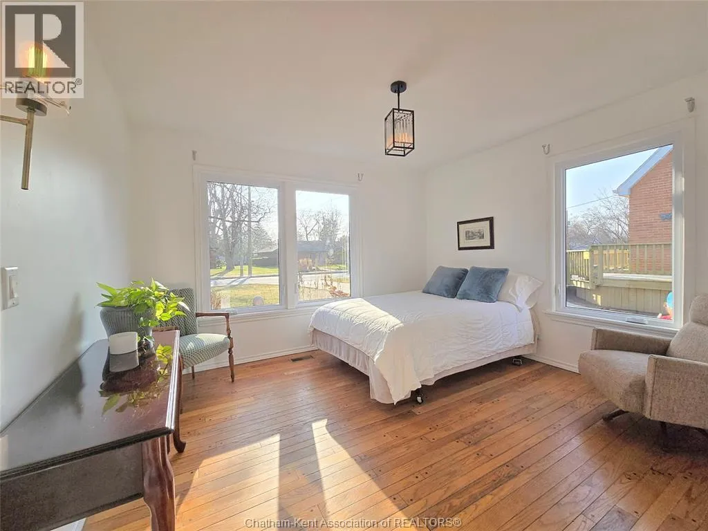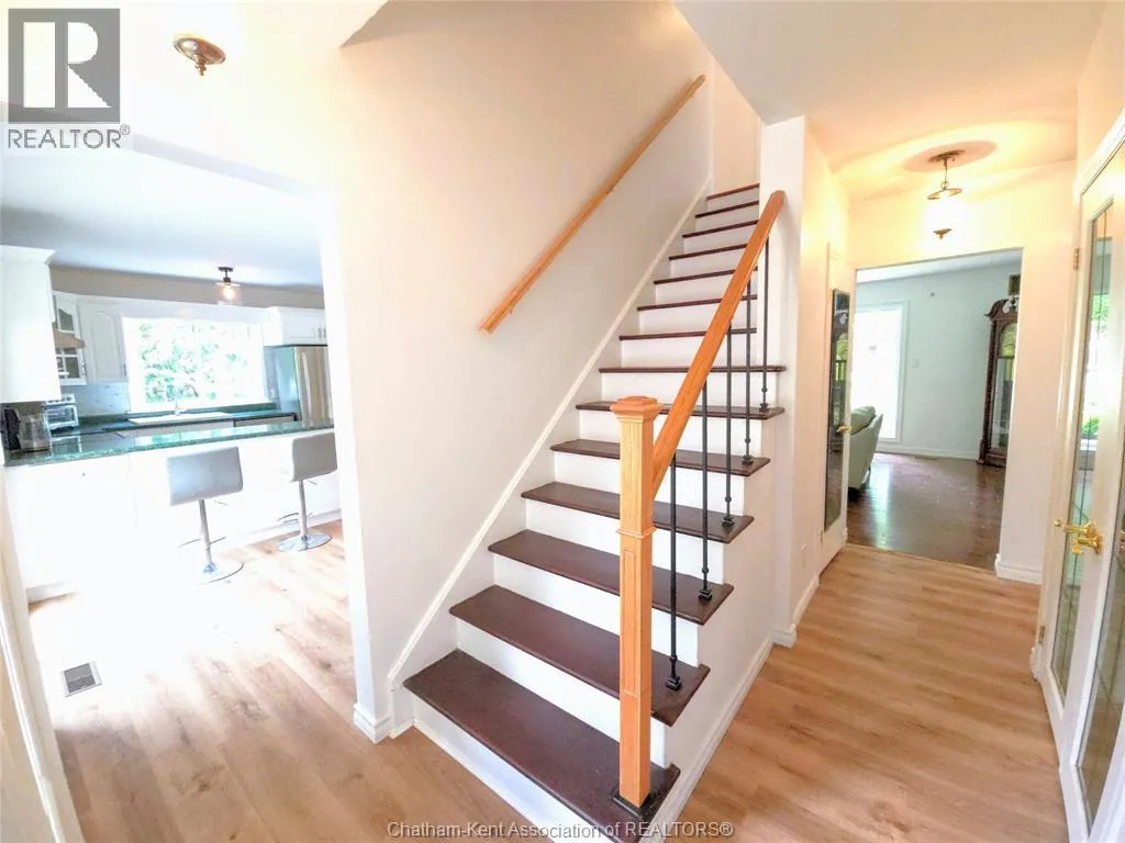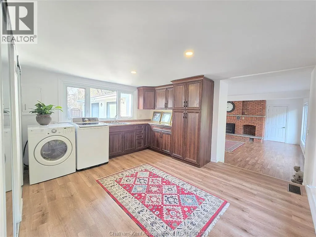 Charming1.5 storey home (2580 sq feet) in one of the best neighbourhoods in Chatham. Main floor has approx. 2000 sq. ft for convenient ground floor/extended family living. Beautiful Muskoka style extension has floor to ceiling windows & gas fireplace. Multi-purpose laundry area can be used as breakfast nook or 2nd kitchen. Many upgrades: 2022 - 2026: new roof over extension, new energy efficient windows throughout, new furnace, new 4 piece washroom, new tankless water heater, new foam insulation, 3 new insulated HVAC ducts, new luxury vinyl plank flooring, new dishwasher etc. Extensive new landscaping. See full list of upgrades in supplementary materials. Large double garage. Newer appliances sold as is. Buyer to verify all aspects of property on which they wish to rely. (id:27476)