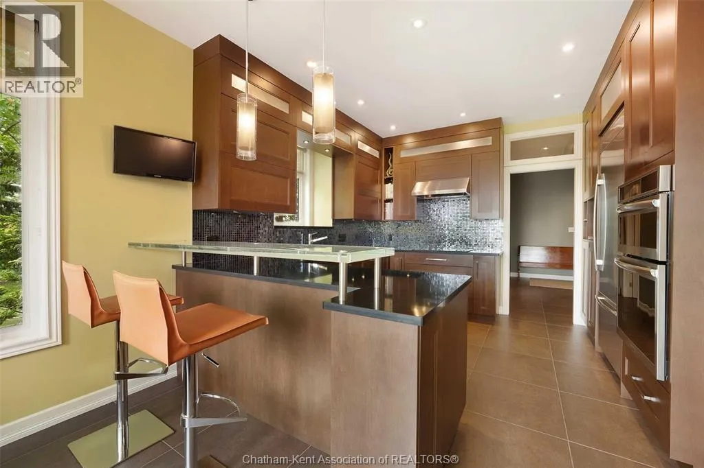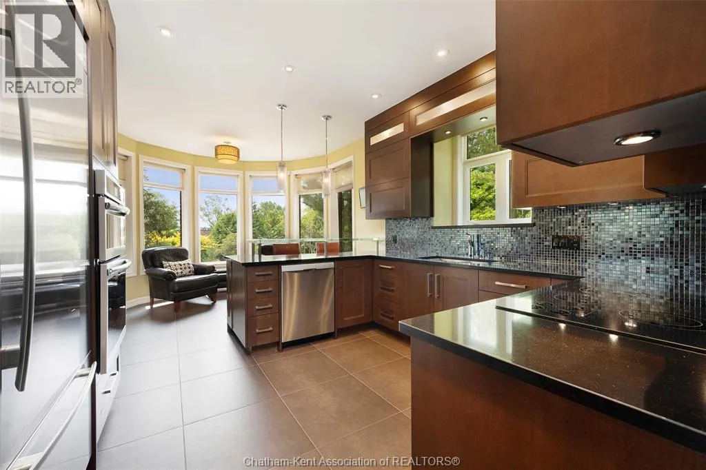 Welcome to a custom built dream home on the South side of Chatham. Every square inch of this stunning home has been thoughtfully and expertly curated for both aesthetic form and livable function from a 24' clerestory with transom windows upon entry to imported Italian porcelain tiling and ornamentally decorated fireplaces. With 4 plus 2 Bedrooms, 3 full baths and a lower level fully renovated- not only is there space for the whole family but the added potential of multigenerational living. A spacious primary bedroom with a large accompanying walk-in and 4 piece ensuite leading out to a finely manicured backyard will have you feeling like you've stepped into a luxury hotel. A landscaped yard of intentionally positioned trees from the Carolinian Forest carry through to the interiors with grand oak multilevel staircases and maple cabinets that boast Blum operating systems â light touch at the bottom. A home gym, hobby room and surround sound will keep you well entertained indoors, and the privacy of the lush, foliage filled backyard will provide the perfect escape when you crave peace and tranquility. This home has all you've been searching for...and MORE!!!!! Set up a showing today!! (id:27476)