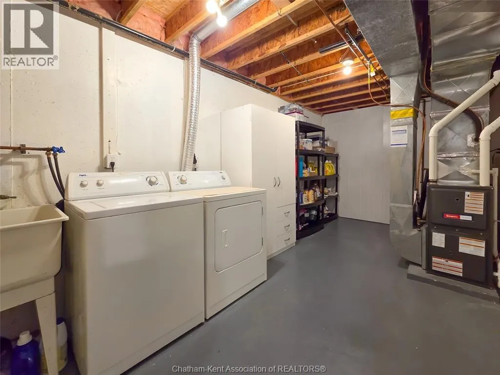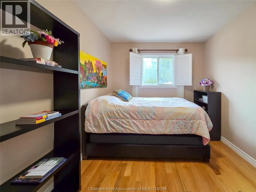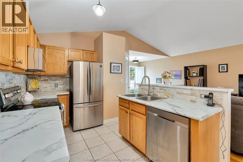 Effortless Living in Style home in Chatham. Welcome to this beautifully maintained 3-bedroom, 2-bathroom bungalow-style row home offering the perfect blend of comfort, style, and convenience. With 2 spacious bedrooms on the main floor and a third bedroom in the finished lower level, thereâs room for family, guests, or a private home office. Inside, you'll find beautiful hardwood floors, California shutters, and a warm, inviting layout. The bright, functional kitchen is a standout with its stone backsplash, plenty of cabinet space, and a functional design that makes meal prep a breeze. The finished basement includes a full second bathroom and a good-sized laundry roomâideal for everyday ease and storage. Step outside to enjoy your new backyard deck and new fence, creating a peaceful, private outdoor space to enjoy your morning coffee. Close to St Clair College and the new Rogers Sports Dome to play pickleball or tennis in a comfortable setting. Low-maintenance exterior and affordable maintenance fees make this home an excellent choice for downsizers, busy professionals, or first-time buyers seeking move-in-ready living without the hassle. $75 a month association fee covers snow removal and grass cutting. (id:27476)