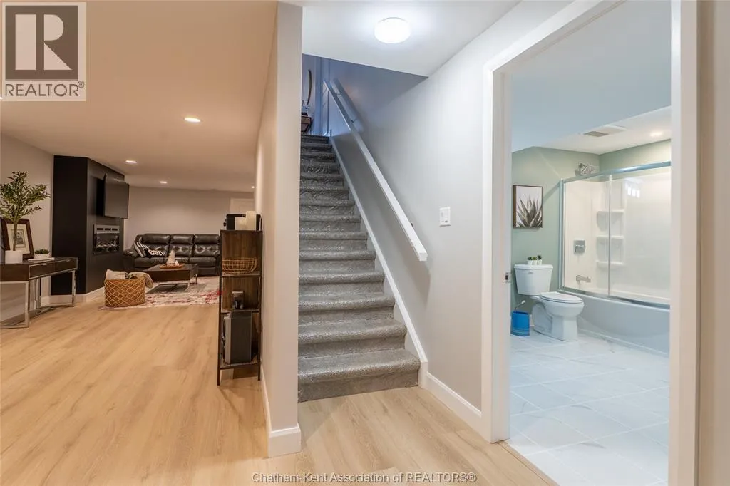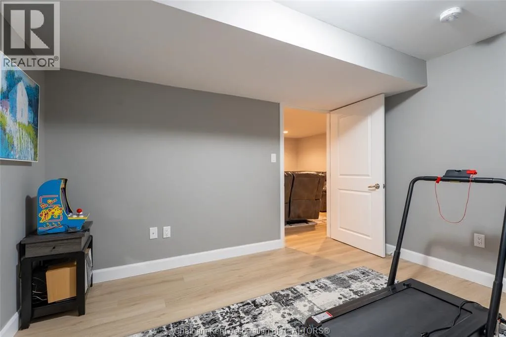 Welcome to this stunning 5-year-old home, beautifully finished and truly move-in ready. From the moment you arrive, youâll appreciate the pride of ownership and thoughtful upgrades throughout. The main level offers a bright, open-concept layout featuring three spacious bedrooms, including a primary suite complete with a private ensuite bath. An additional full bathroom serves the main level, making it ideal for families or guests. The kitchen is a standout with updated countertops, upgraded appliances, and a clean, modern design, all complemented by California shutters and quality finishes throughout. Downstairs, the fully finished basement expands your living space with a large family room featuring a custom built-in TV and fireplace wall, creating the perfect spot to relax or entertain. Youâll also find an additional bedroom, a third full bathroom, and a dedicated exercise room, offering flexibility for any lifestyle. This home shows exceptionally well and reflects true attention to detail inside and out. A must-see propertyâtake your time, you wonât be disappointed. (id:27476)
