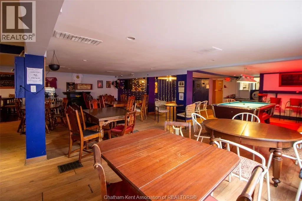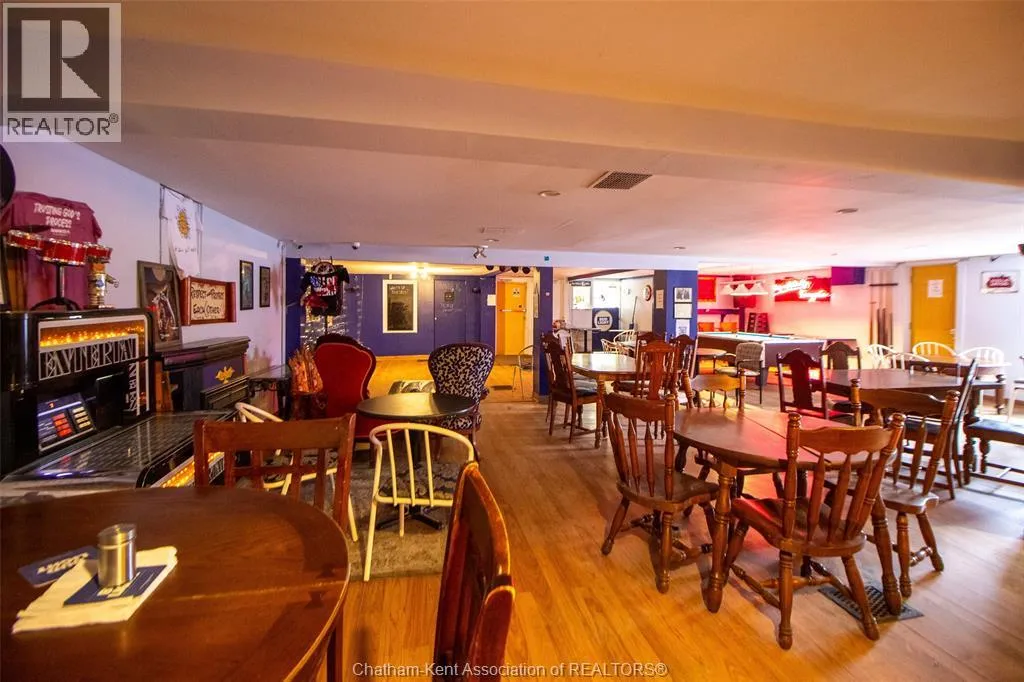 Own a piece of Chathamâs history with this incredible commercial property near downtown! Featuring an open-concept layout with a classic horseshoe bar, full kitchen, and walk-in cooler, this space is perfect for a restaurant, bar, or event venue. With a capacity of 149 guests, it offers ample room for dining and entertainment. The outdoor patio and private parking lot provide additional opportunities for expansion, whether for al fresco dining, events, or other business ventures. This prime location, rich in character and potential, is ready for your vision. Donât miss out on this rare opportunityâschedule a tour today! *Property sold as is, where is, with no representations or warranties of any kind. Seller makes no representation regarding compliance with any municipal by-law, zoning, building code, property standards, work orders, permits, or any governmental or regulatory requirement. Buyer to satisfy itself as to all such matters prior to offer. (id:27476)