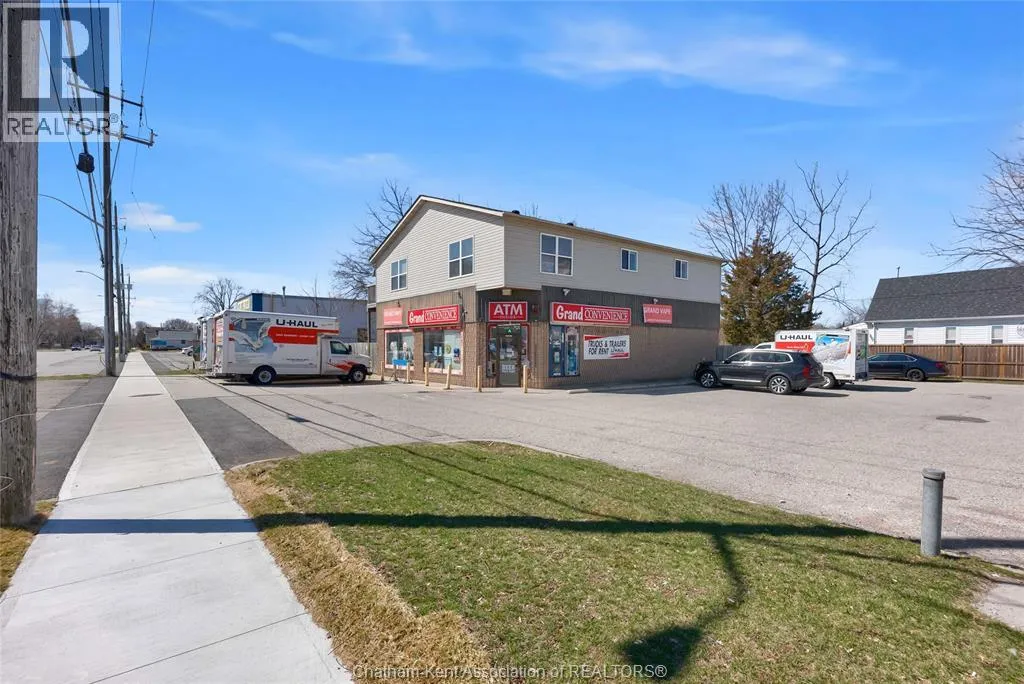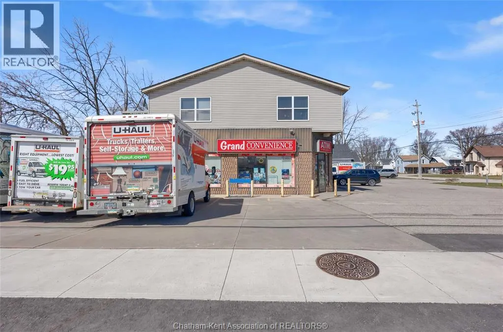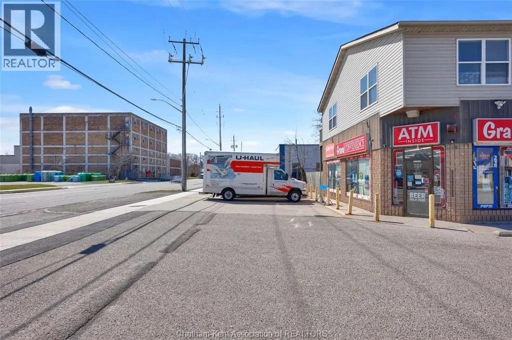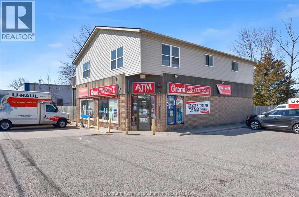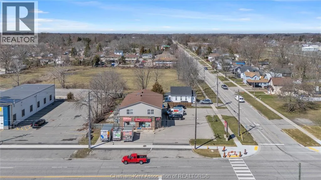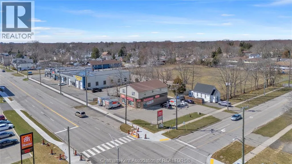 High traffic corner locations like this are hard to acquire in Chatham, especially with ample parking and high visibility. This purpose built retail store with residence above offers endless possibilities for a live/work arrangement or just multi-purpose investment. The main level is approx. 1900 sq ft and is operating as a leased variety store. Potential higher uses could be a restaurant, professional office, clinic among many others permitted in the zoning. The entire second level was built as a residence with three bedrooms, two bathrooms, laundry and large open concept living and kitchen area. The paved parking lot provides approx. 12 parking spots in the front with additional parking in the rear for staff/residence. Convenience store tenant occupies entire building. Take a serious look at this location with many recent multi-million dollar retail improvements around it. Traffic lights are currently being installed at this intersection, potentially increasing the visibility even more. (id:27476)