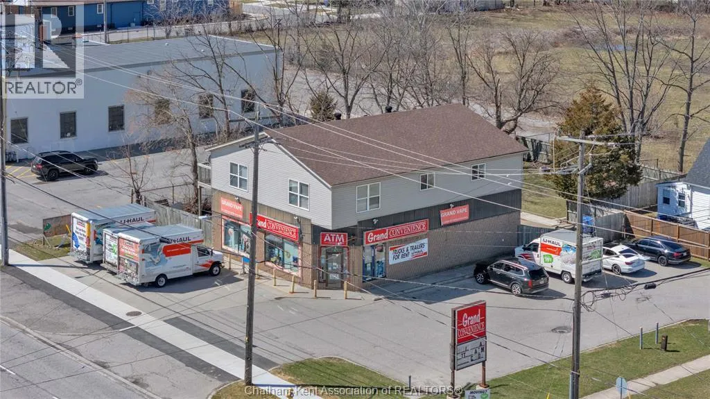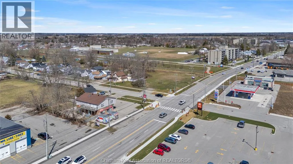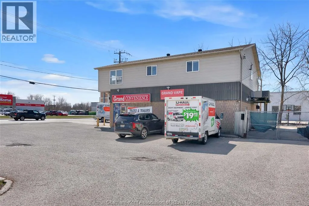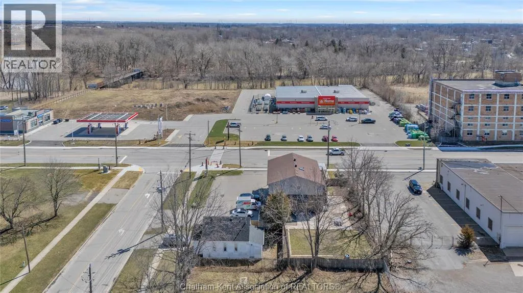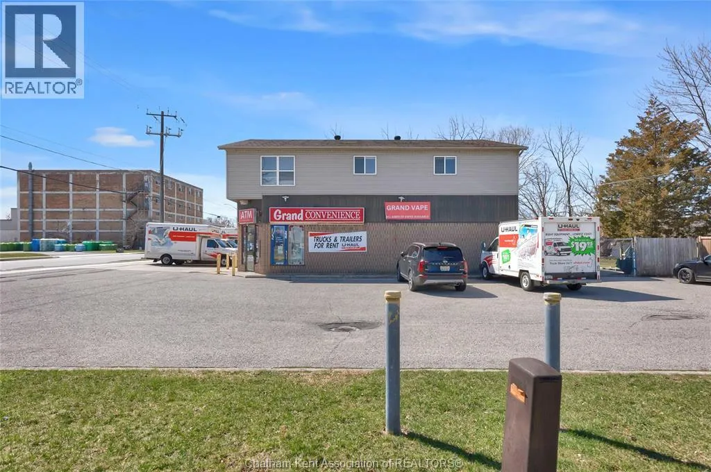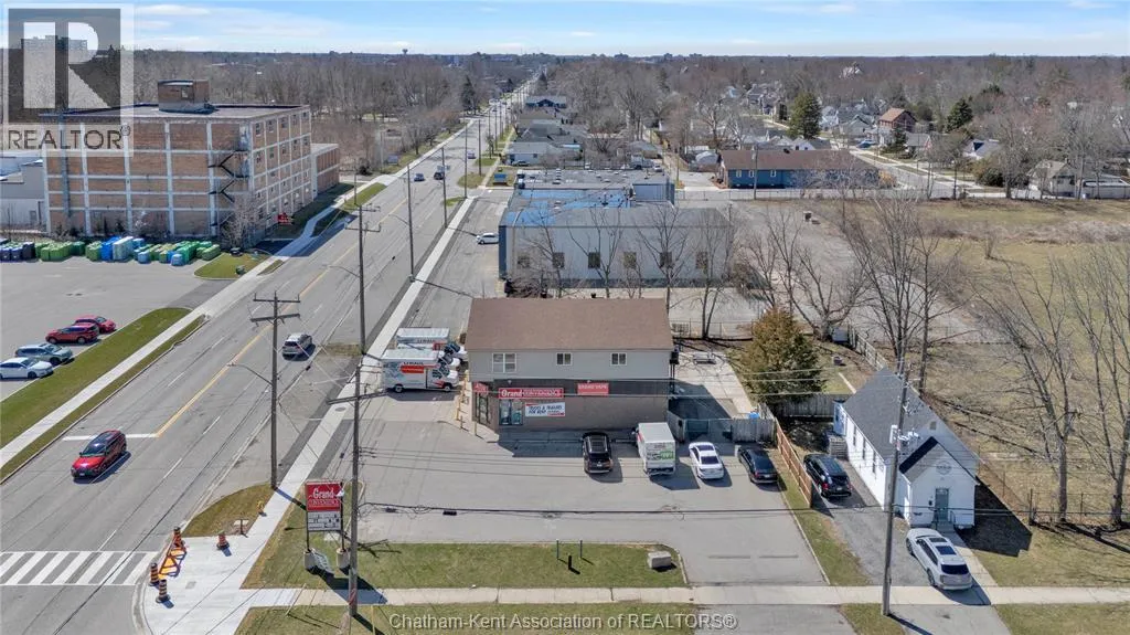 High traffic corner locations like this are hard to acquire in Chatham, especially with ample parking and high visibility. This purpose built retail store with residence above offers endless possibilities for a live/work arrangement or just multi-purpose investment. The main level is approx. 1900 sq ft and is operating as a leased variety store. Potential higher uses could be a restaurant, professional office, clinic among many others permitted in the zoning. The entire second level was built as a residence with three bedrooms, two bathrooms, laundry and large open concept living and kitchen area. The paved parking lot provides approx. 12 parking spots in the front with additional parking in the rear for staff/residence. Convenience store tenant occupies entire building. Take a serious look at this location with many recent multi-million dollar retail improvements around it. Traffic lights are currently being installed at this intersection, potentially increasing the visibility even more. (id:27476)