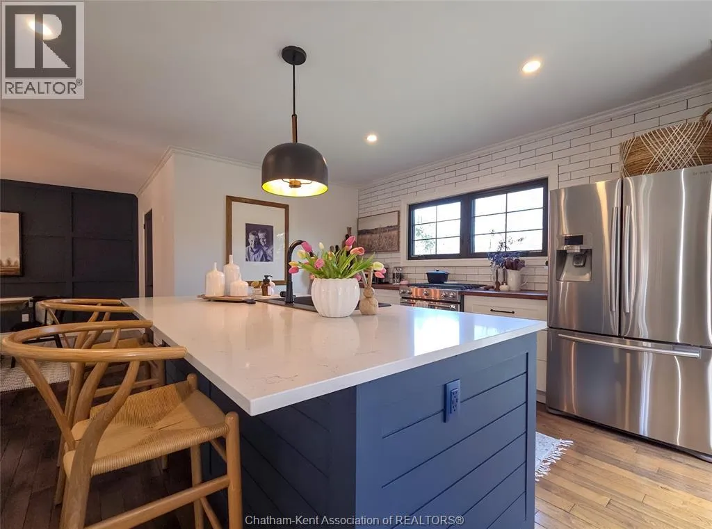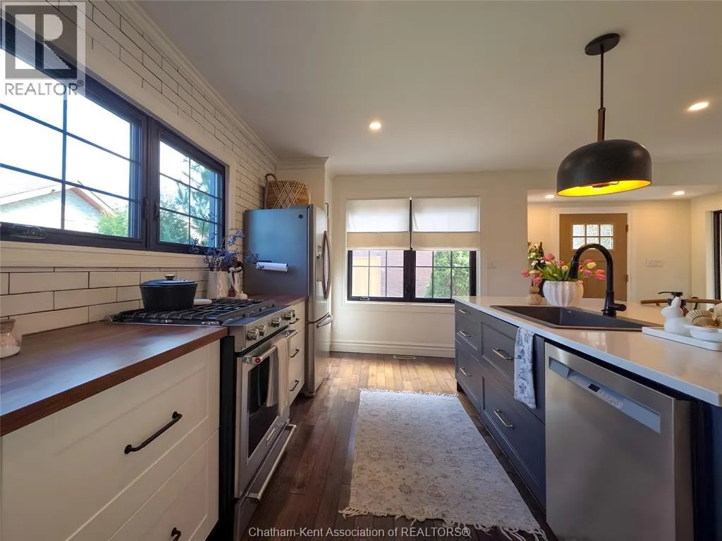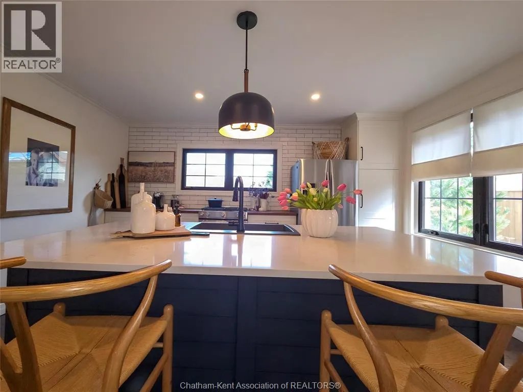 Prestigious North East Chatham â Exceptional Lot, Thoughtful Living Set along one of North East Chathamâs most desirable streets, this beautifully cared-for home on Victoria Avenue offers a rare combination of space, comfort, and character. Positioned on an impressive, oversized lot, the property immediately stands out with its sense of openness and privacyâsomething increasingly hard to find. Inside, the home welcomes you with a bright, open-concept layout where natural light pours through multiple windows, enhancing the warmth and flow of the main living space. Whether you're relaxing at home or hosting friends and family, the layout feels both functional and inviting. The kitchen is designed for connection, featuring convenient bar seating that makes everyday meals and casual entertaining effortless. Offering two-plus bedrooms and 1.5 bathrooms, the home provides flexible living arrangementsâperfect for growing families, professionals, or those looking to downsize while still enjoying extra space. What truly sets this property apart is the custom garage retreat. Complete with its own fireplace, it creates an incredible bonus spaceâideal as a workshop, hobby area, or the ultimate private escape to unwind year-round. Additional outdoor storage buildings add even more practicality, ensuring thereâs a place for everything without compromising the clean, spacious feel of the property. Throughout the home, youâll find beautiful flooring, tasteful décor, and creative design touches that reflect genuine pride of ownership and make the space feel both stylish and comfortable. This is more than just a homeâitâs an opportunity to settle into a quiet, established neighbourhood while enjoying space, versatility, and standout features you wonât easily find elsewhere. (id:27476)