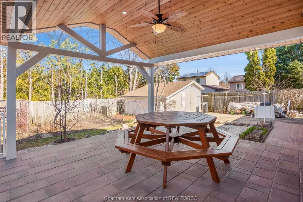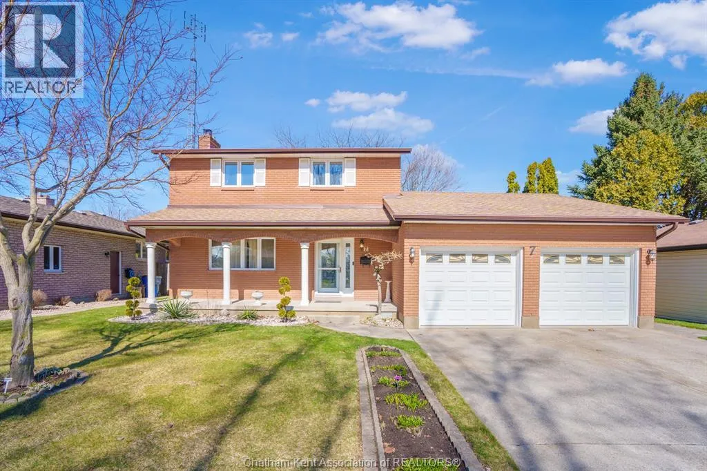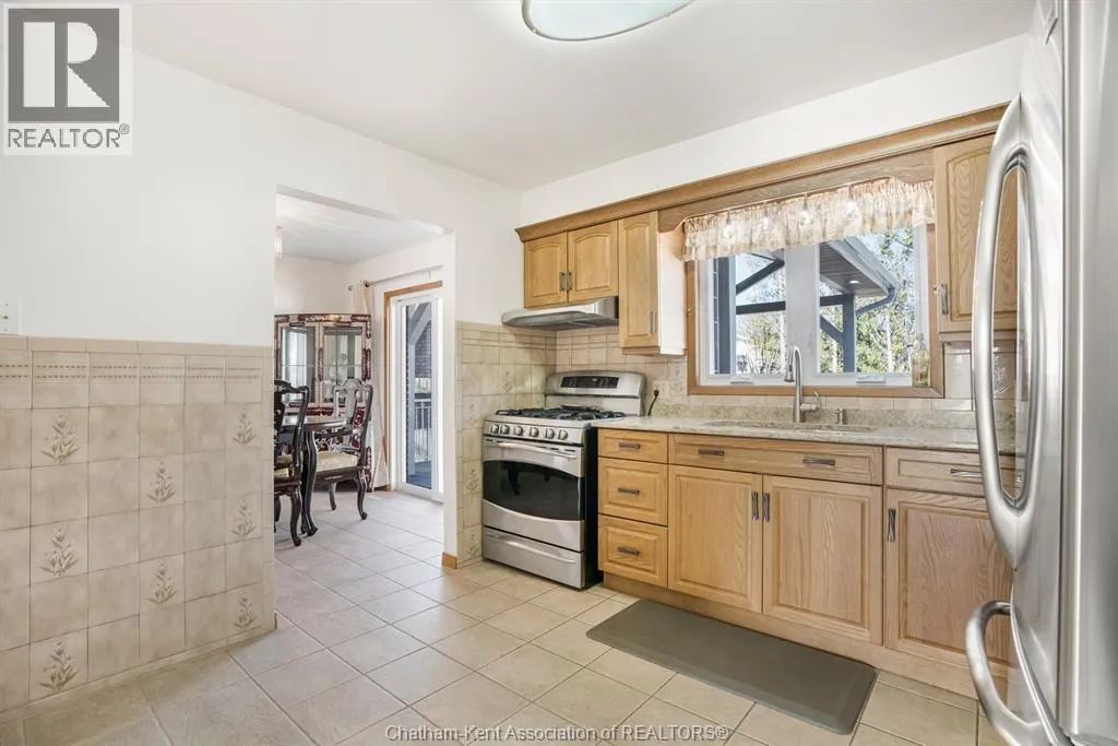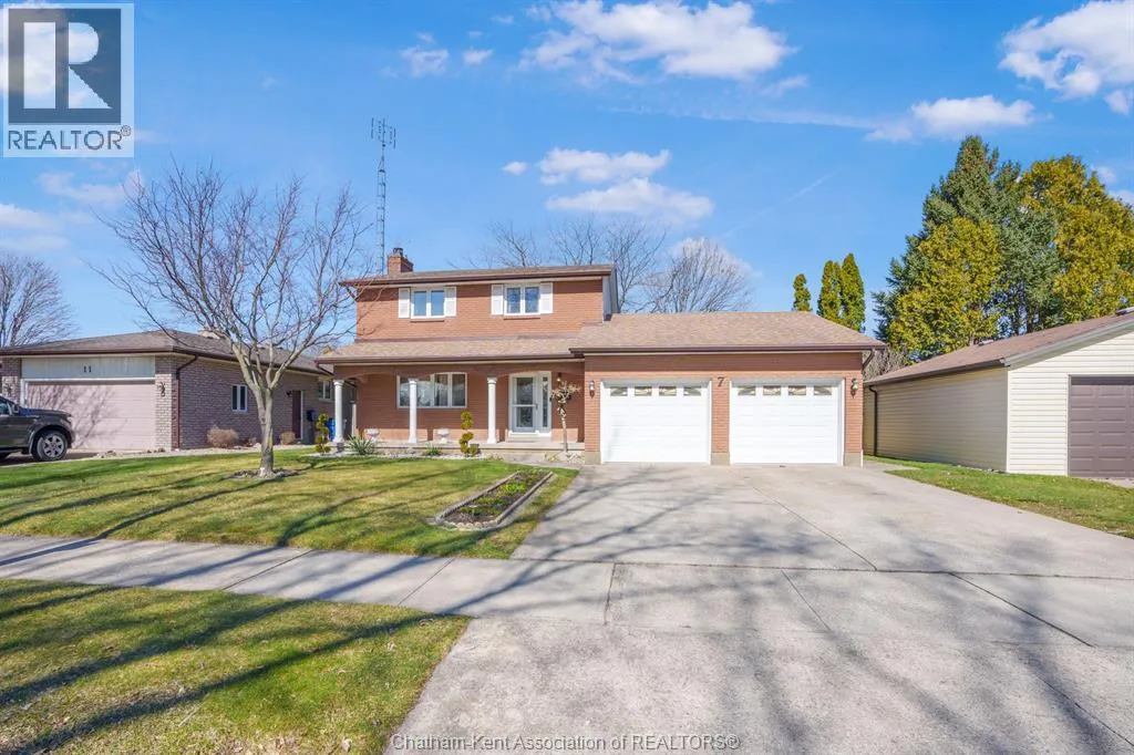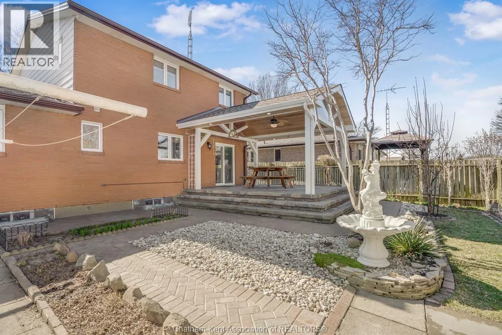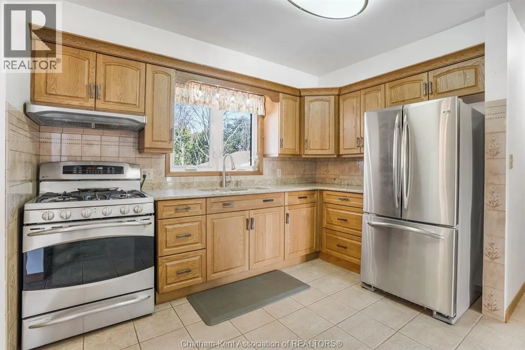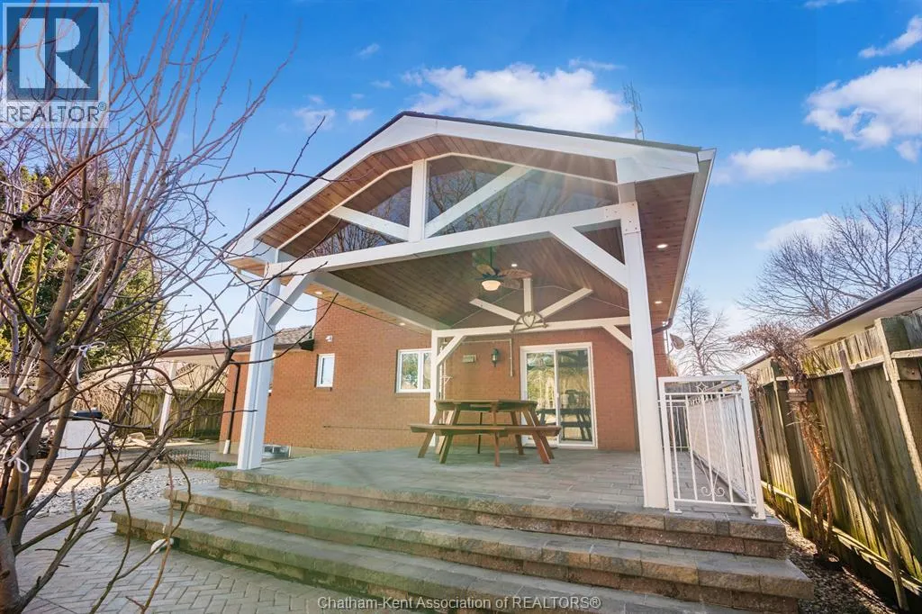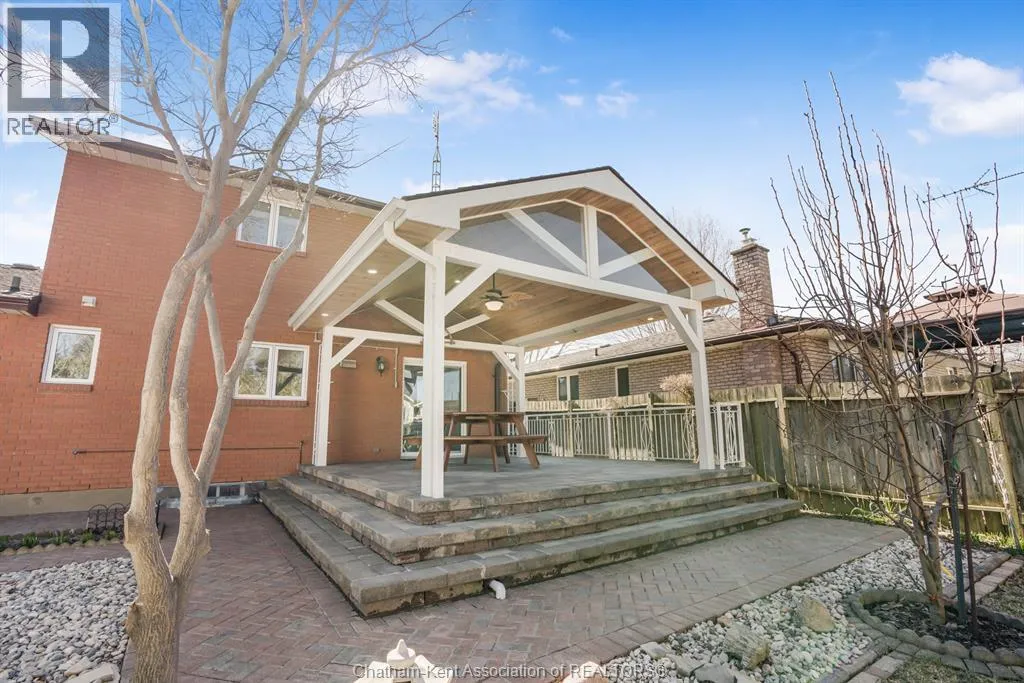Beautifully maintained custom-built 2-storey home in sought-after North Chatham. This 4-bedroom, 2-bathroom family home offers quality construction, pride of ownership, and move-in ready living in a desirable neighbourhood. Bright and spacious main floor featuring open-concept living, formal dining area, and a well-appointed kitchen with stainless steel appliances, solid wood cabinetry, and excellent layout for entertaining. Patio doors lead to a private, fully landscaped backyard oasis with VERY LARGE covered porch (2021), complete with ceiling fan and pot lighting â perfect for outdoor living, summer nights, and family gatherings. Additional storage outbuildings included. Upper level offers 4 generous bedrooms and an updated full bathroom â ideal for growing families. Fully finished lower level includes a cozy family room with brick fireplace, creating the perfect rec room, media space, or entertaining area. Recent updates include windows and doors (approx. 5 years), furnace, owned hot water tank, fascia, soffits, and leaf guard eaves (2023) â providing peace of mind and low maintenance living. From the flooring, to the walls, this home has been cared for and is ready for new memories. Additional features: hardwood flooring, attached double car garage, double concrete driveway, excellent curb appeal, and ample storage throughout. Located in a family-friendly neighbourhood close to top-rated schools, parks, walking trails, shopping, and amenities. Quick possession available. (id:27476)
