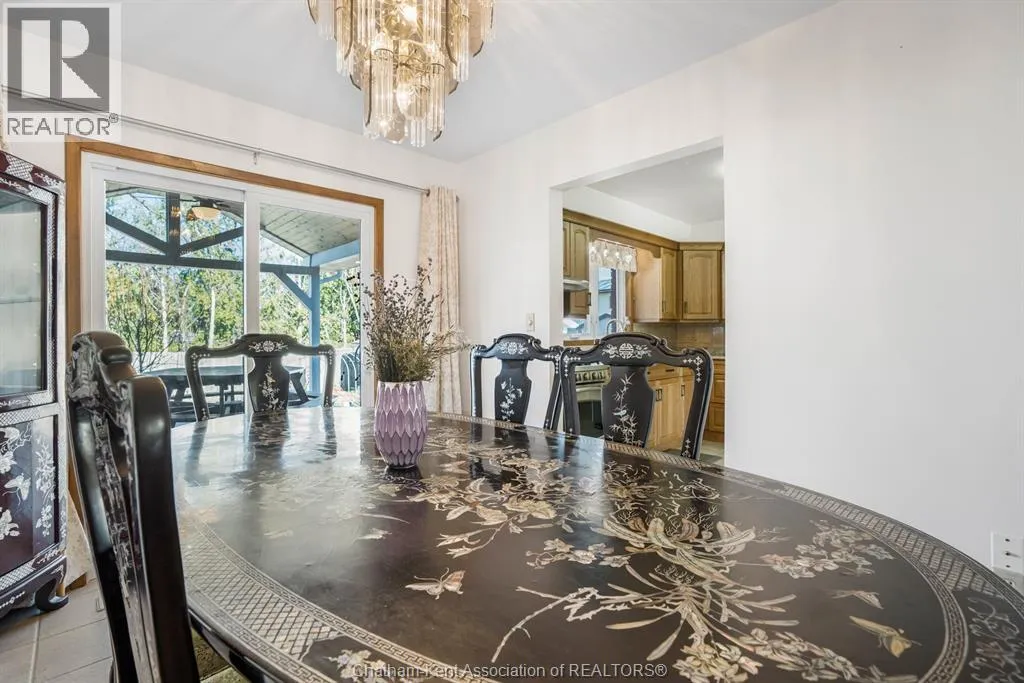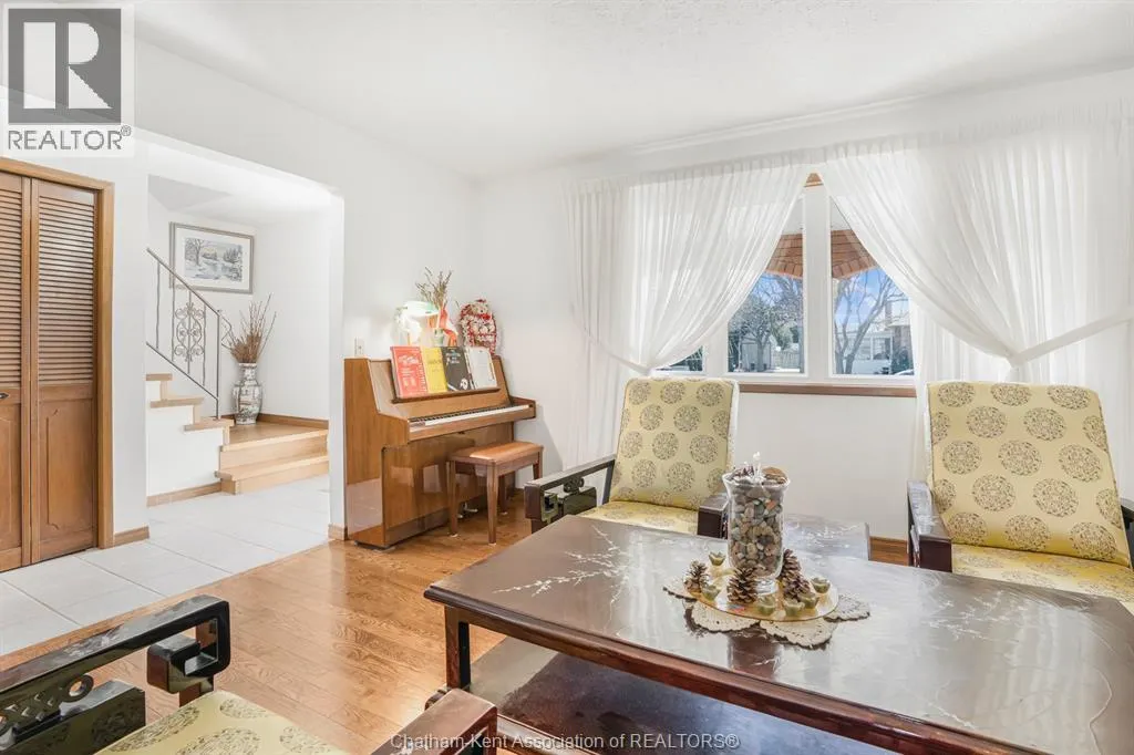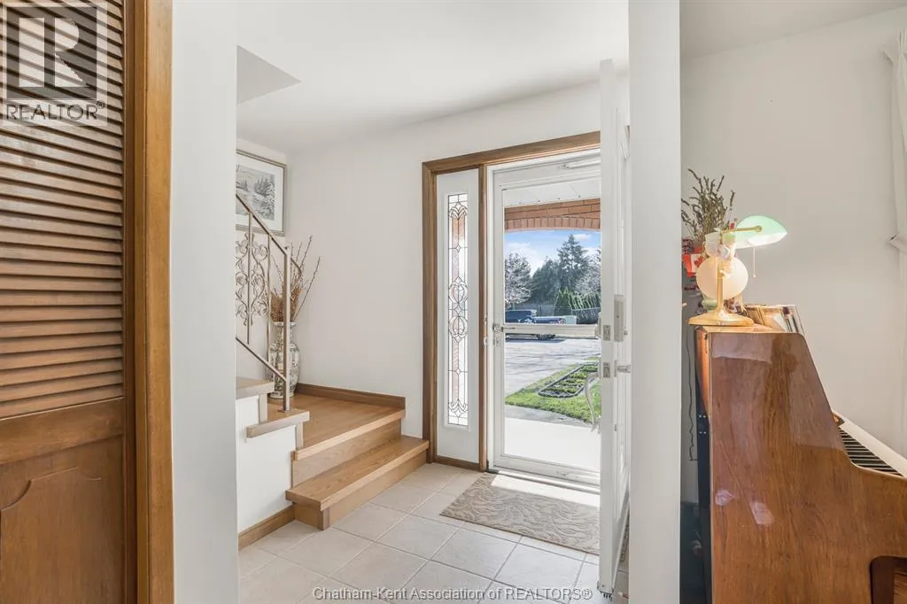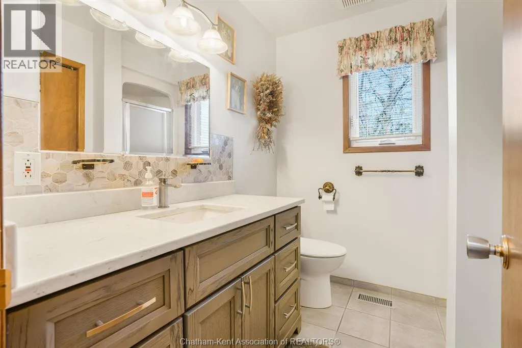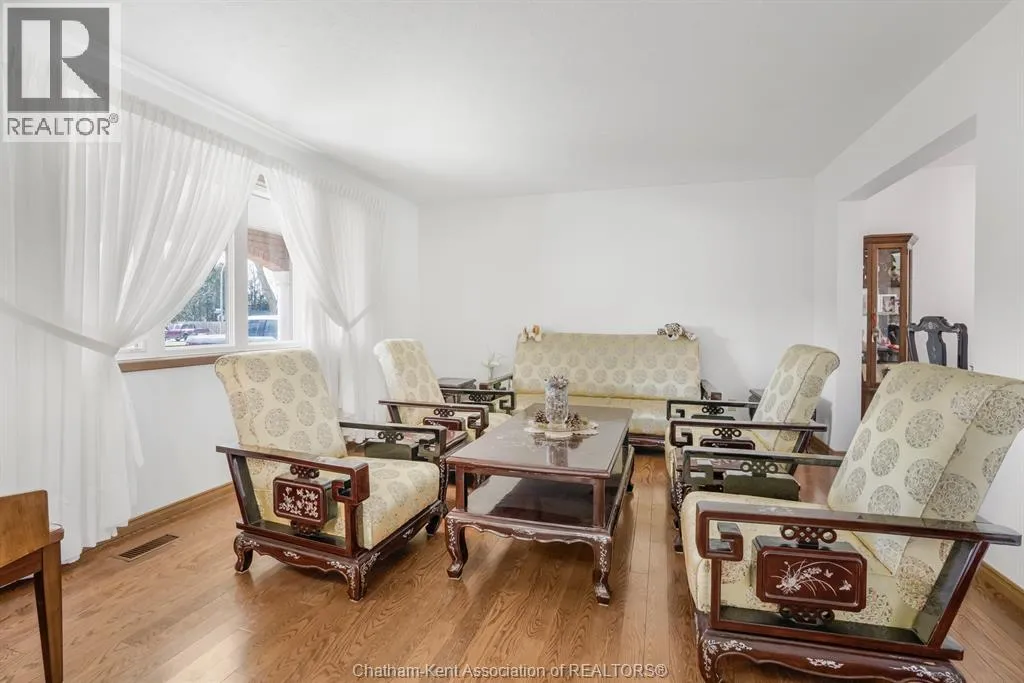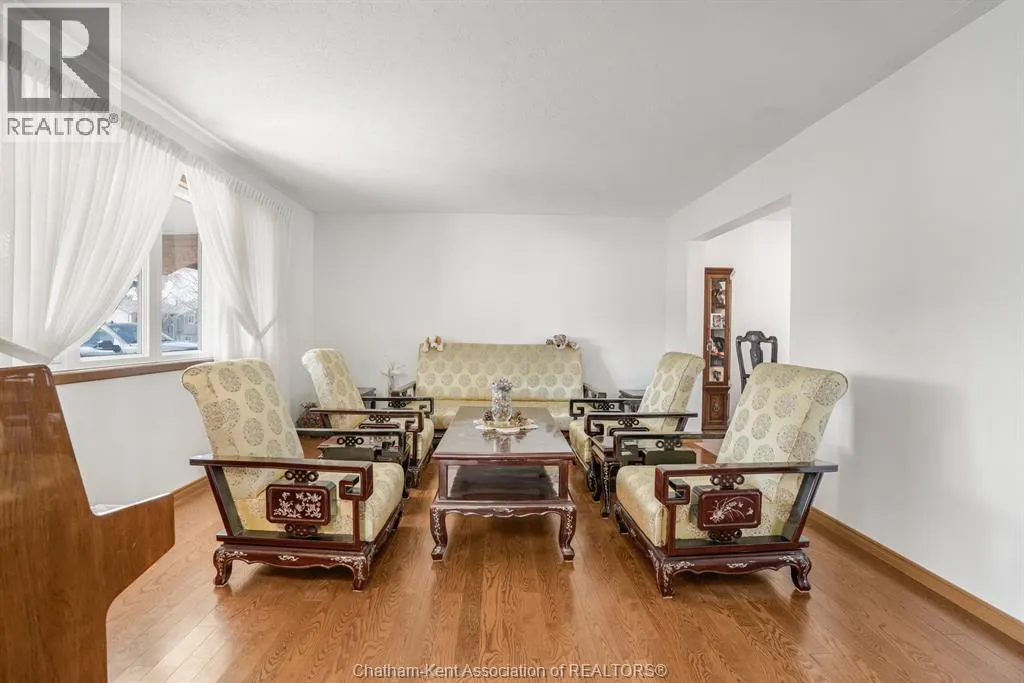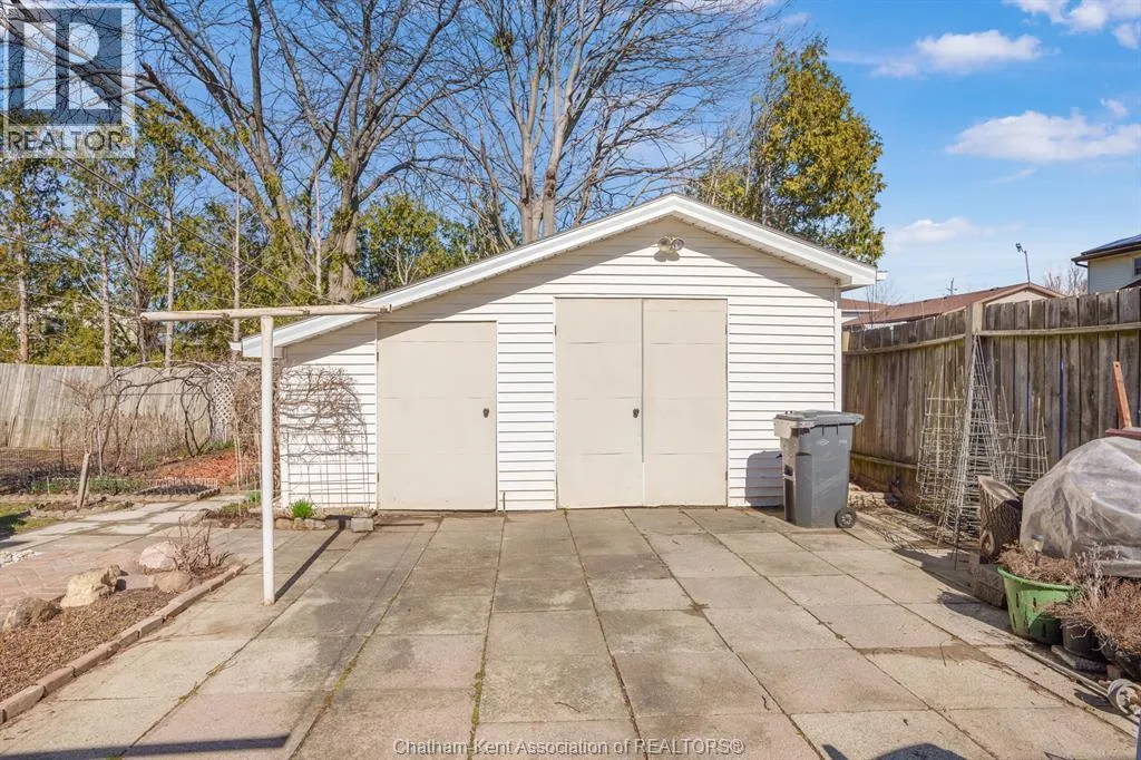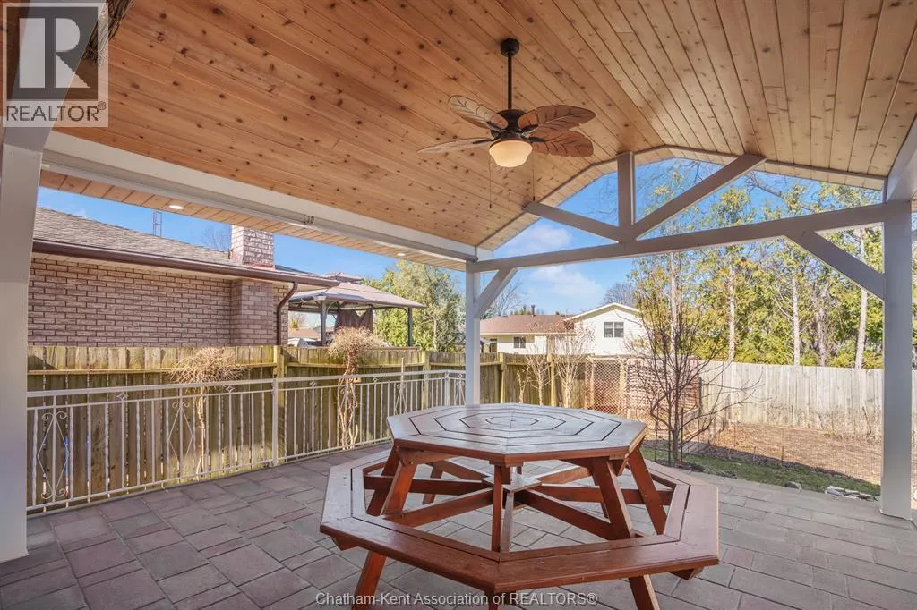 Beautifully maintained custom-built 2-storey home in sought-after North Chatham. This 4-bedroom, 2-bathroom family home offers quality construction, pride of ownership, and move-in ready living in a desirable neighbourhood. Bright and spacious main floor featuring open-concept living, formal dining area, and a well-appointed kitchen with stainless steel appliances, solid wood cabinetry, and excellent layout for entertaining. Patio doors lead to a private, fully landscaped backyard oasis with VERY LARGE covered porch (2021), complete with ceiling fan and pot lighting â perfect for outdoor living, summer nights, and family gatherings. Additional storage outbuildings included. Upper level offers 4 generous bedrooms and an updated full bathroom â ideal for growing families. Fully finished lower level includes a cozy family room with brick fireplace, creating the perfect rec room, media space, or entertaining area. Recent updates include windows and doors (approx. 5 years), furnace, owned hot water tank, fascia, soffits, and leaf guard eaves (2023) â providing peace of mind and low maintenance living. From the flooring, to the walls, this home has been cared for and is ready for new memories. Additional features: hardwood flooring, attached double car garage, double concrete driveway, excellent curb appeal, and ample storage throughout. Located in a family-friendly neighbourhood close to top-rated schools, parks, walking trails, shopping, and amenities. Quick possession available. (id:27476)