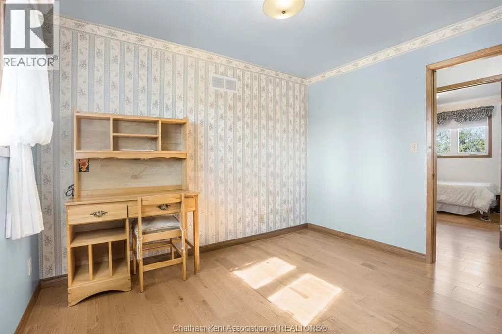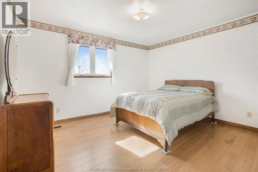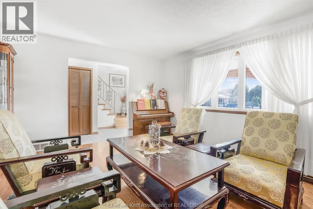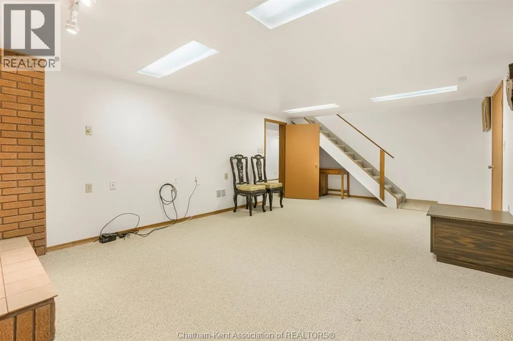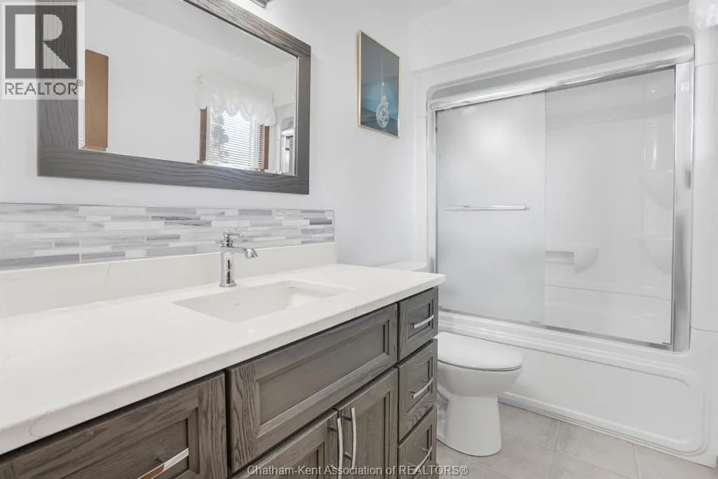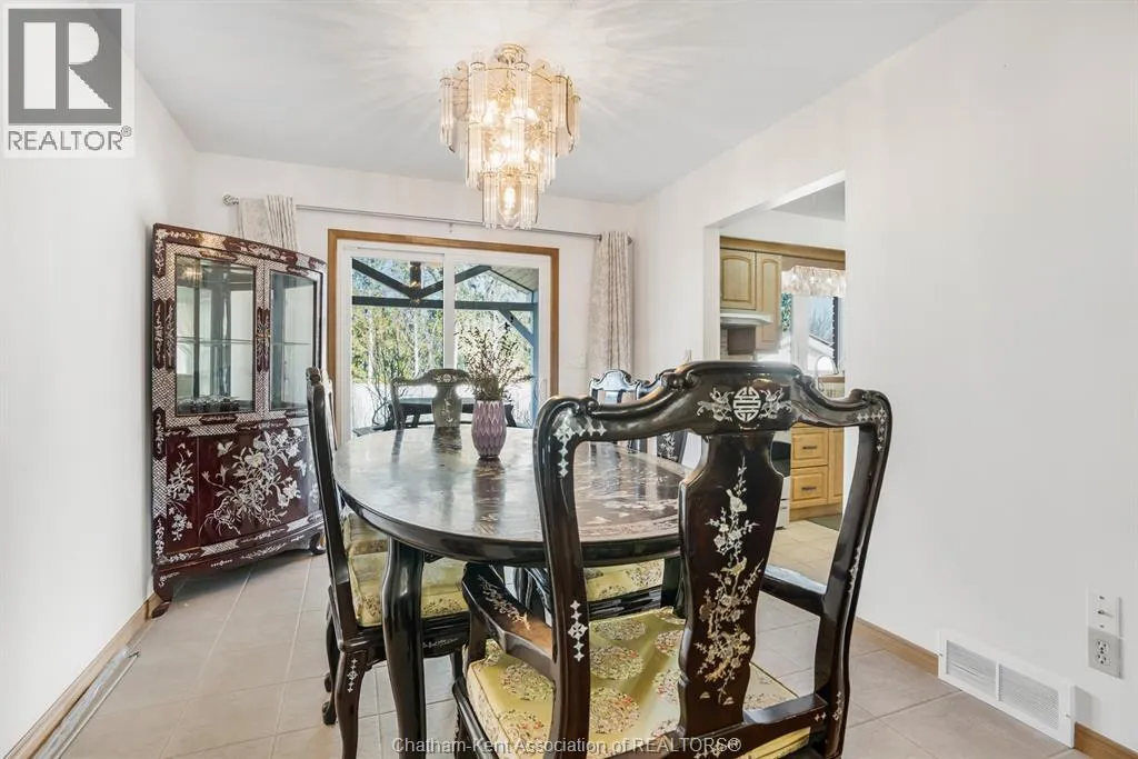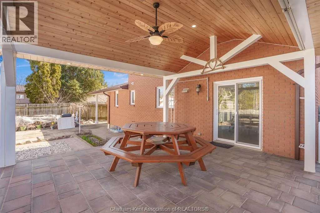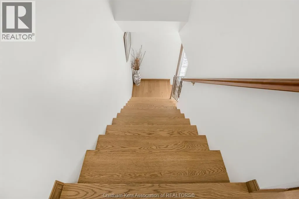 Beautifully maintained custom-built 2-storey home in sought-after North Chatham. This 4-bedroom, 2-bathroom family home offers quality construction, pride of ownership, and move-in ready living in a desirable neighbourhood. Bright and spacious main floor featuring open-concept living, formal dining area, and a well-appointed kitchen with stainless steel appliances, solid wood cabinetry, and excellent layout for entertaining. Patio doors lead to a private, fully landscaped backyard oasis with VERY LARGE covered porch (2021), complete with ceiling fan and pot lighting â perfect for outdoor living, summer nights, and family gatherings. Additional storage outbuildings included. Upper level offers 4 generous bedrooms and an updated full bathroom â ideal for growing families. Fully finished lower level includes a cozy family room with brick fireplace, creating the perfect rec room, media space, or entertaining area. Recent updates include windows and doors (approx. 5 years), furnace, owned hot water tank, fascia, soffits, and leaf guard eaves (2023) â providing peace of mind and low maintenance living. From the flooring, to the walls, this home has been cared for and is ready for new memories. Additional features: hardwood flooring, attached double car garage, double concrete driveway, excellent curb appeal, and ample storage throughout. Located in a family-friendly neighbourhood close to top-rated schools, parks, walking trails, shopping, and amenities. Quick possession available. (id:27476)