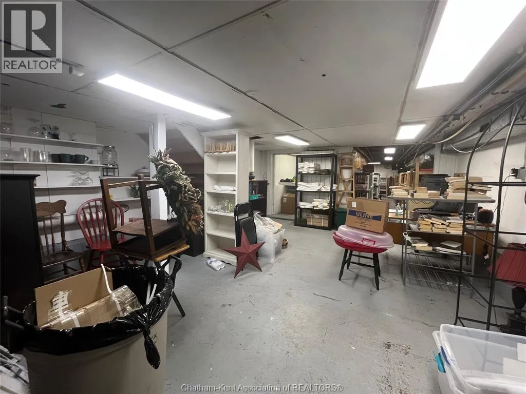 1313 SqFt- Prime downtown commercial space offering excellent visibility and versatility. This property features a bright, spacious showroom ideal for retail or client-facing operations. A convenient break area includes a man door with direct access to the rear of the building. The main floor also offers an accessible washroom for added convenience. Ample basement space provides storage options to support a variety of business needs. Call today to view! Tenant to pay utilities. (id:27476)