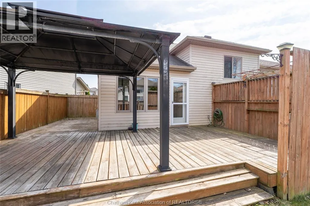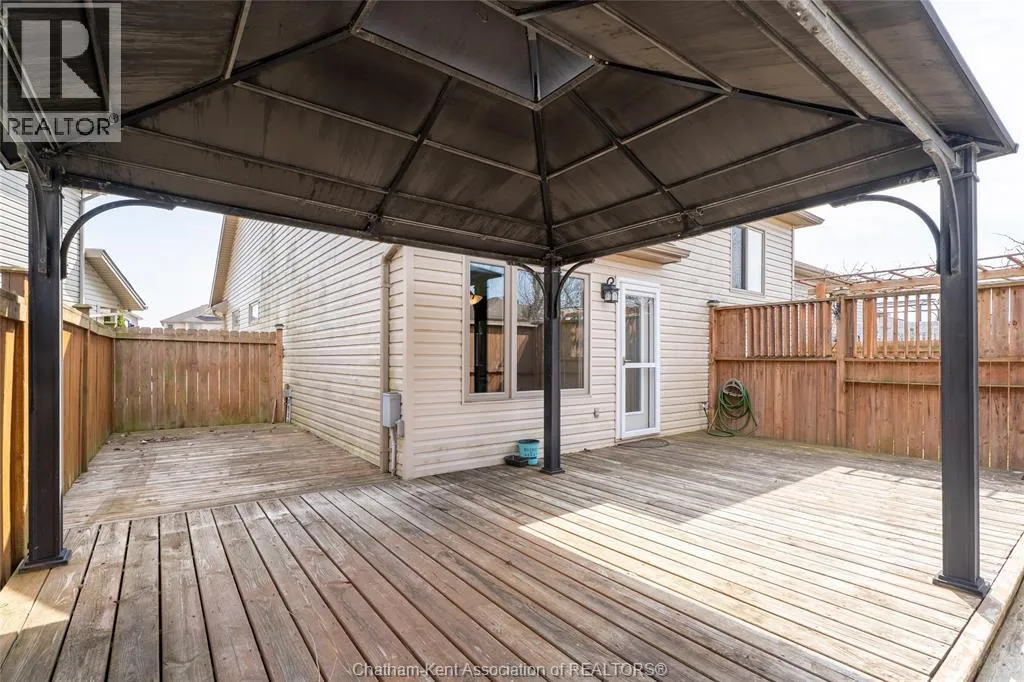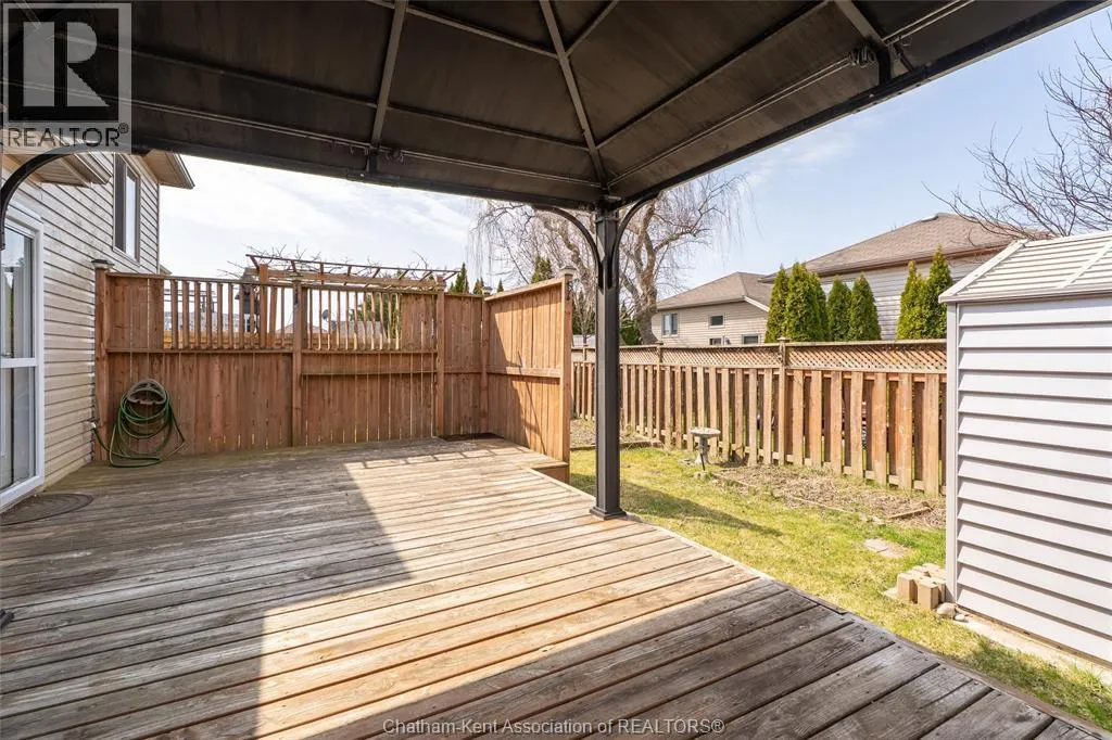FROM TAYLOR TRAIL, GO EAST UNTIL YOU GET TO GOLDENROD CRT. SIGN IN YARD. Welcome to this beautiful, move-in ready two-storey home, built in 2011. Ideally located on a quiet cul-de-sac in a sought-after neighbourhood in north-east Chatham, perfect for families of all sizes. This well-maintained property features 3 bedrooms and 2 full bathrooms, including a spacious primary bedroom complete with its own private ensuite. The main floor offers a bright, open-concept kitchen and dining area, ideal for both everyday living and entertaining. Patio doors lead directly to a fully fenced backyard, where youâll find a lovely deck with gazebo, along with a large storage shed for all your outdoor needs. The inviting living room features a gas fireplace, adding warmth and charm to the space. The attached garage offers convenient inside entry, adding everyday practicality. Downstairs, the fully finished basement provides additional living space along with loads of storage, offering flexibility for a growing family. All appliances are included. Hot water tank is owned. Located close to both elementary and high school options, as well as shopping and everyday amenities, this home offers the perfect blend of location, space, and functionality. Donât miss your chance to call this fantastic property home! (id:27476)