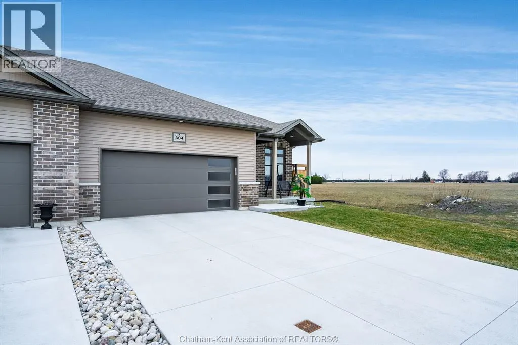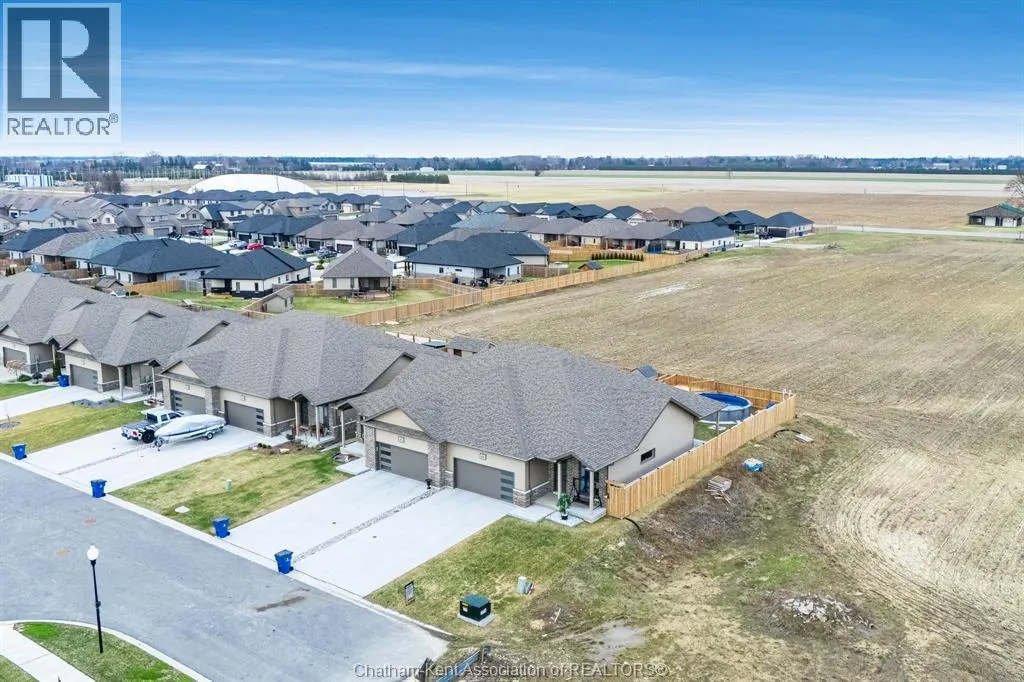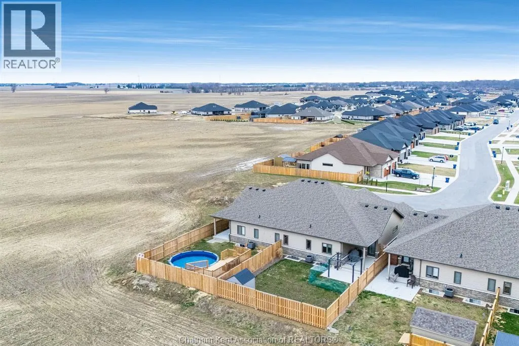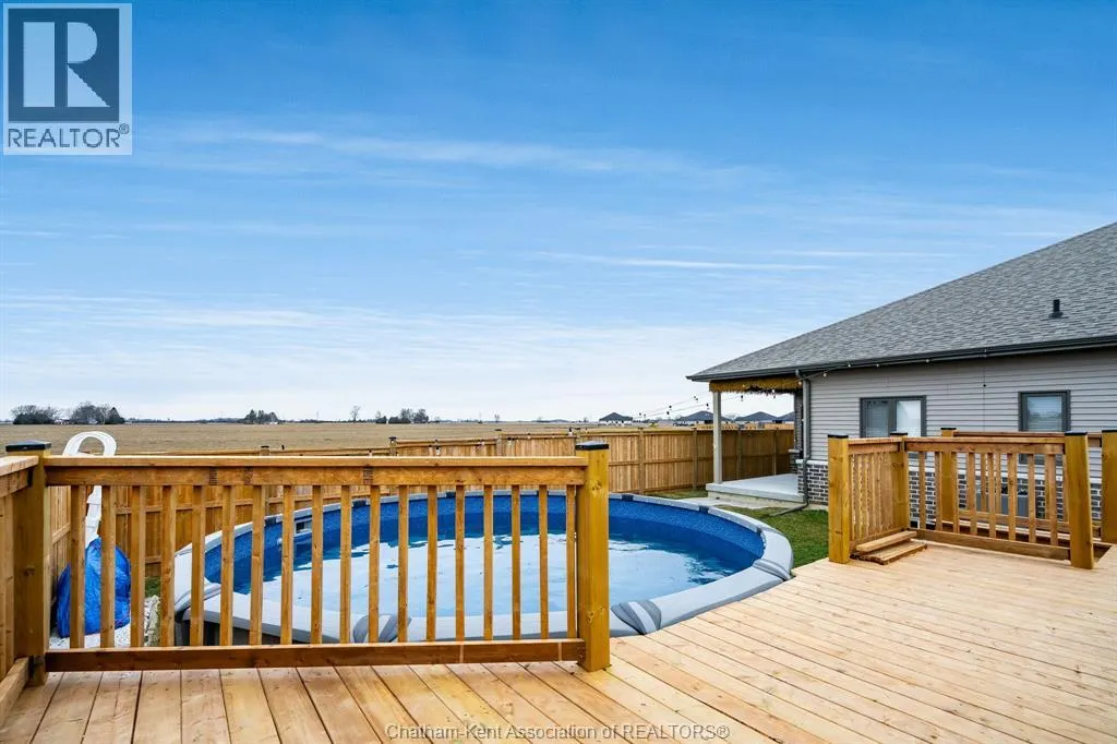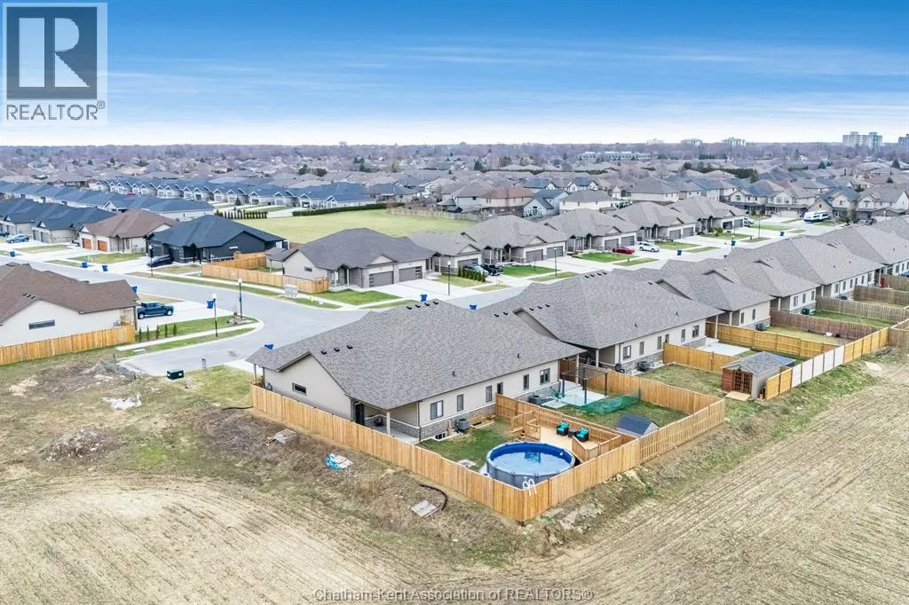 Experience the perfect blend of modern sophistication and effortless living in this 2-year-old semi-detached bungalow, situated in the highly sought-after Prestancia neighbourhood on the North side. This ""The Roxbury"" model by MCH Homes offers a premium lifestyle on a quiet, low-traffic street, perfectly positioned for those seeking quick access to local shopping, walking trails, and the convenience of North-end amenities. Step inside to a bright, open-concept layout featuring 1,463 square feet of carpet-free living space. The chef-inspired kitchen serves as the heart of the home, boasting sleek quartz countertops and an abundance of cabinet storage. The primary suite offers a private retreat with a spacious walk-in closet and a dedicated 4-piece ensuite. Practicality meets style with a large main-floor laundry and mudroom that provides seamless inside entry from the attached double-car garage. The exterior is designed for ultimate relaxation and privacy. As the last unit on the street, youâll enjoy a serene setting with no rear neighbours. The fully fenced yard (2025) is a true summer destination, featuring an above-ground pool (2025) and an expansive deck. Whether you are hosting on the covered rear porch or looking to double your living space in the vast unfinished basementâalready equipped with bathroom and central vac rough-insâthis home is a rare find in todayâs market. Donât miss your chance to own in one of Chathamâs premier communities. Contact your REALTOR® today to book your private showing! It's a beautiful day to get you moving! (id:27476)