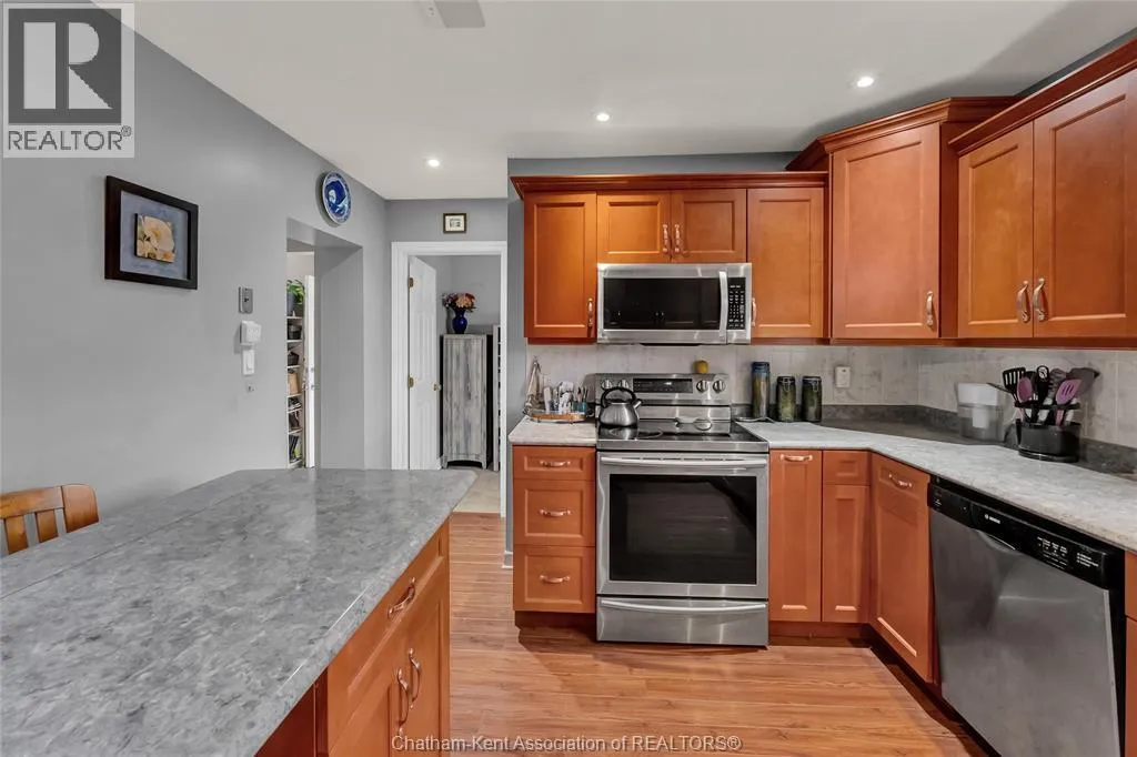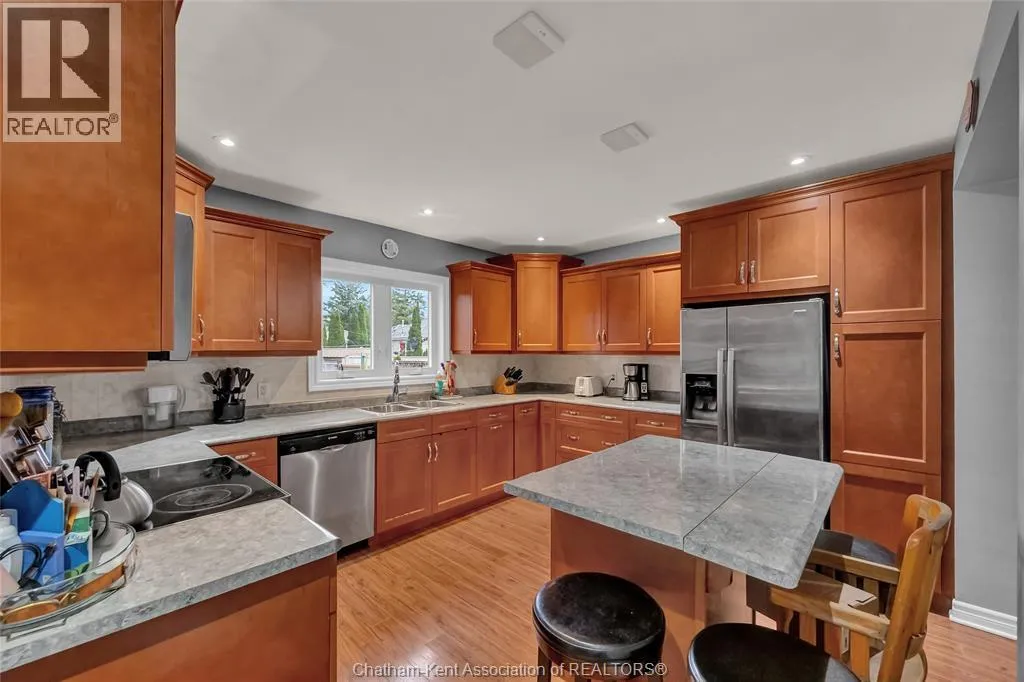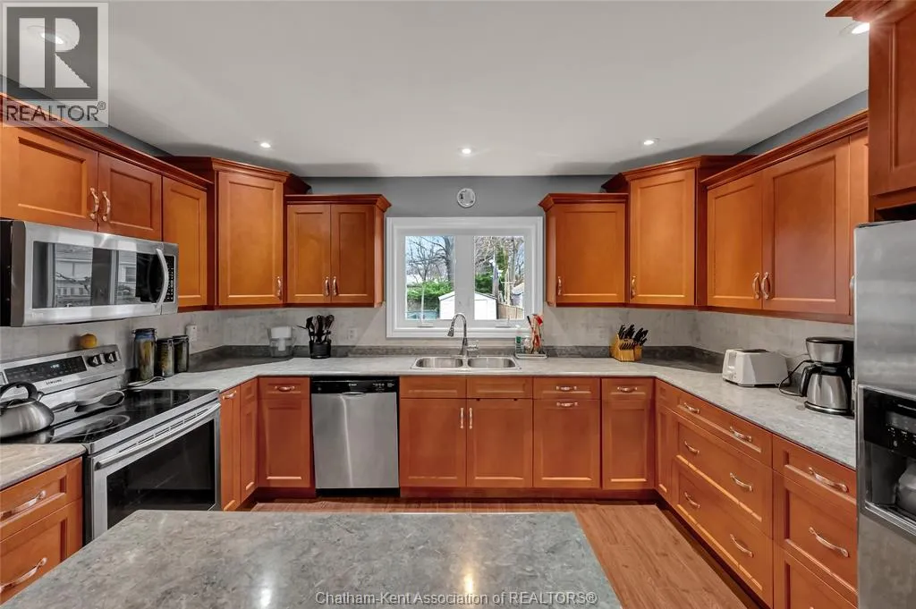 Welcome to 99 Dunn Avenue, a functional and updated semi-detached home situated in a quiet Southside Chatham neighbourhood. The main level features a practical, open-concept design that emphasizes a seamless transition between living spaces, a beautiful updated kitchen and a full bathroom. This house has four bedrooms and an additional full bathroom spread across three levels, this property offers an ideal entry point for first-time buyers or a high-utility addition for investors. This home is located within walking distance to local parks, public transit, and the diverse amenities of the Southside district. Foundation strapped. Basement insulated, drywalled and trimmed. AC/Furnace (2025). Addition on the back of the house with new kitchen and bathroom (2010). Plumbing updated. (id:27476)