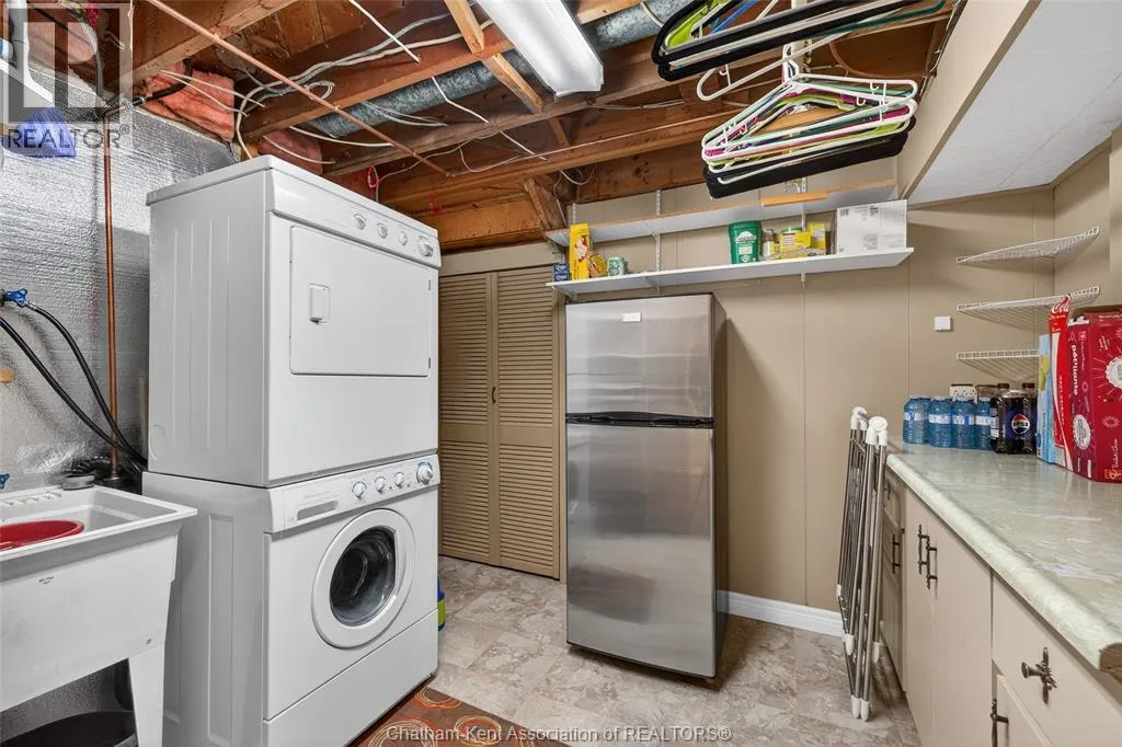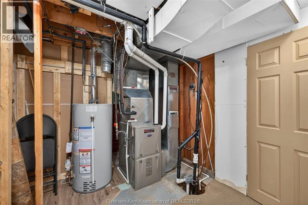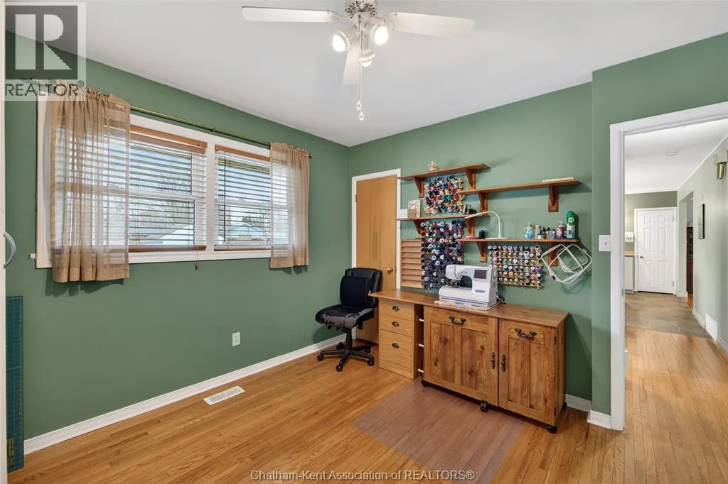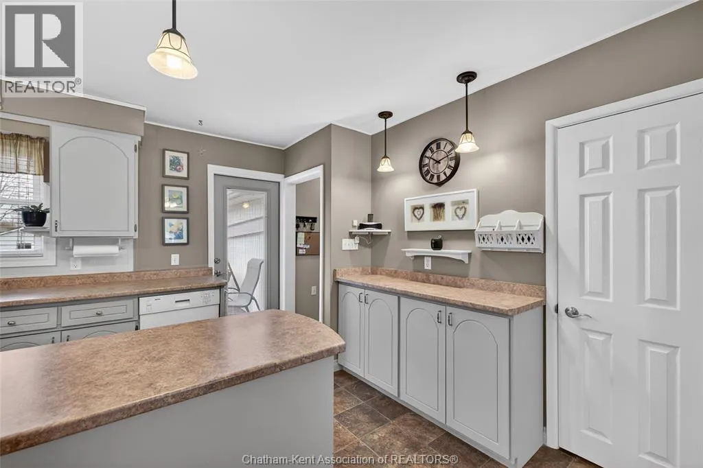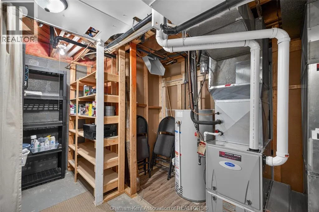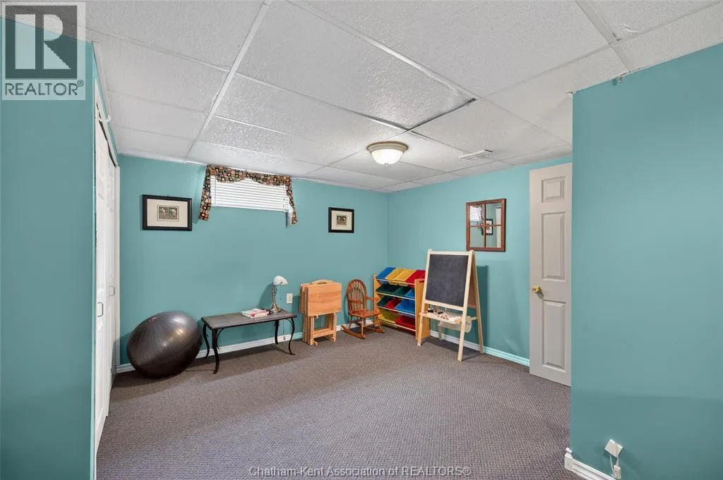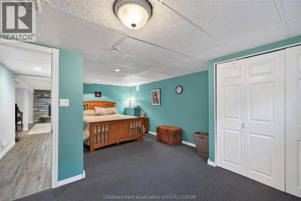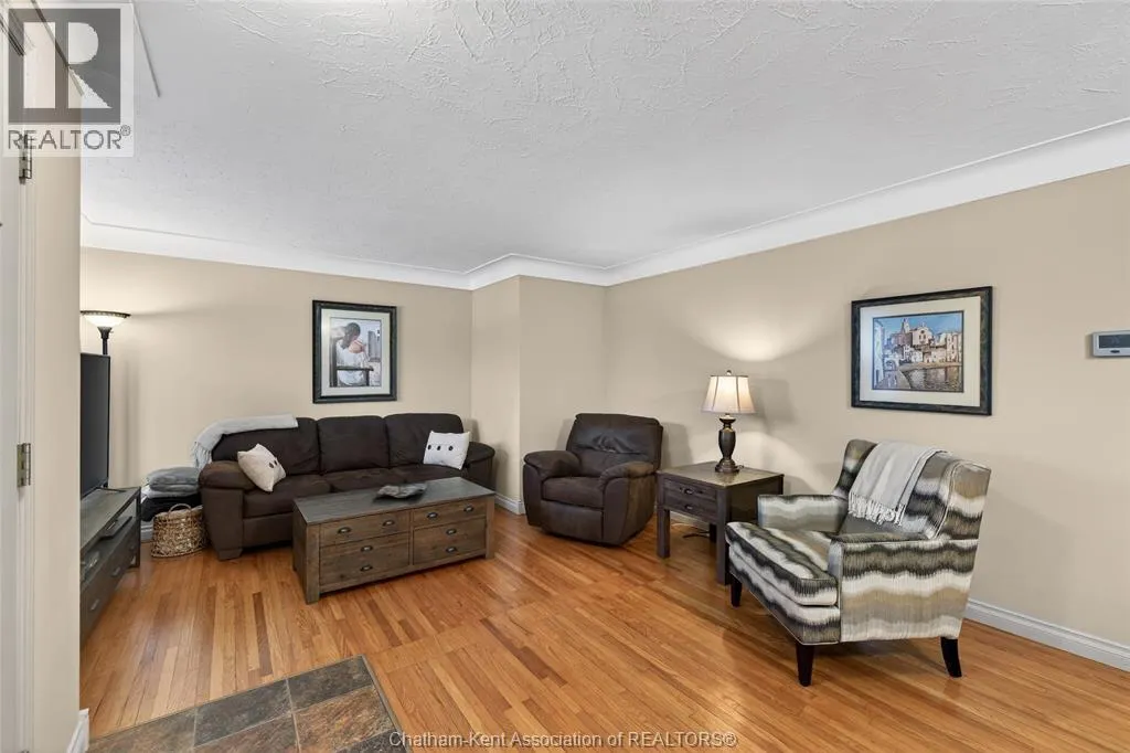 John St to 12 Jupiter Ave Pride of ownership shows throughout this solid brick bungalow in one of Chatham's most established neighbourhoods â 2 main floor bedrooms, hardwood floors, bright living and dining area, and an updated kitchen with painted cabinetry, centre island, pendant lighting, and mudroom entry with patio doors leading to a rear deck overlooking a beautifully maintained backyard. The main floor 4-piece bath is complemented by a fully finished lower level that genuinely impresses â large rec room with stacked-stone gas fireplace, second living area, 2 additional bedrooms, and a 3-piece bath with glass shower. Four bedrooms total with a layout that suits growing families, multi-generational living, or anyone needing extra space. The oversized attached garage offers serious storage and workspace potential, a separate storage shed adds even more utility, and the wide concrete driveway ties together an outdoor package that's as functional as it is attractive. (id:27476)
