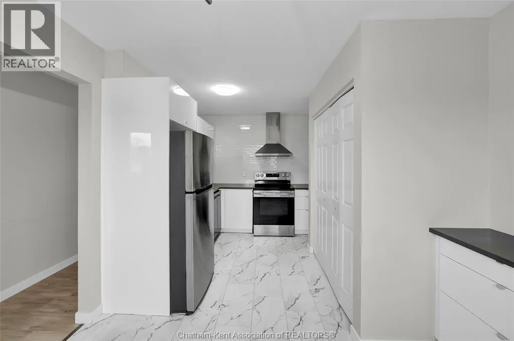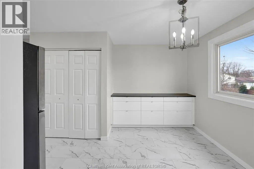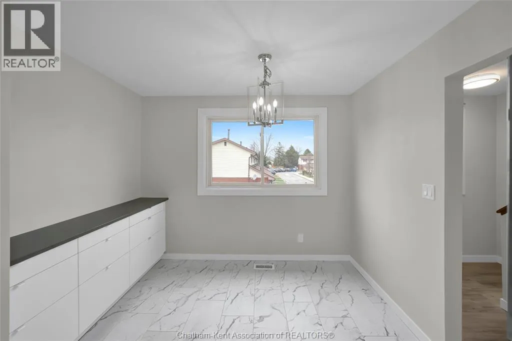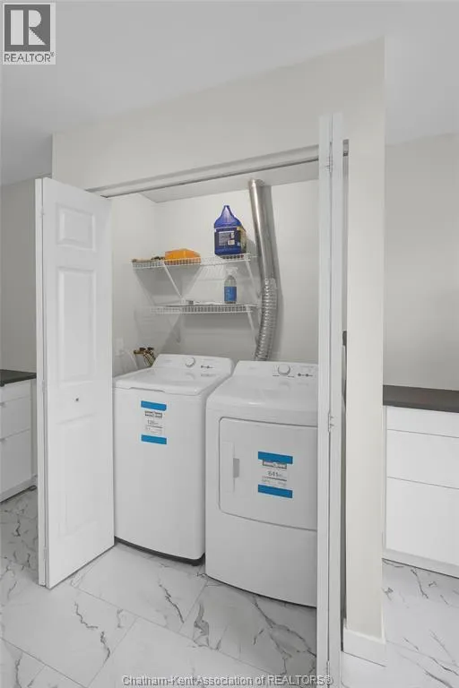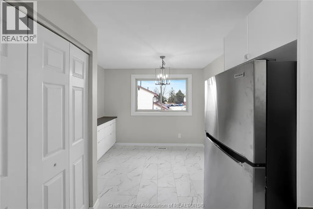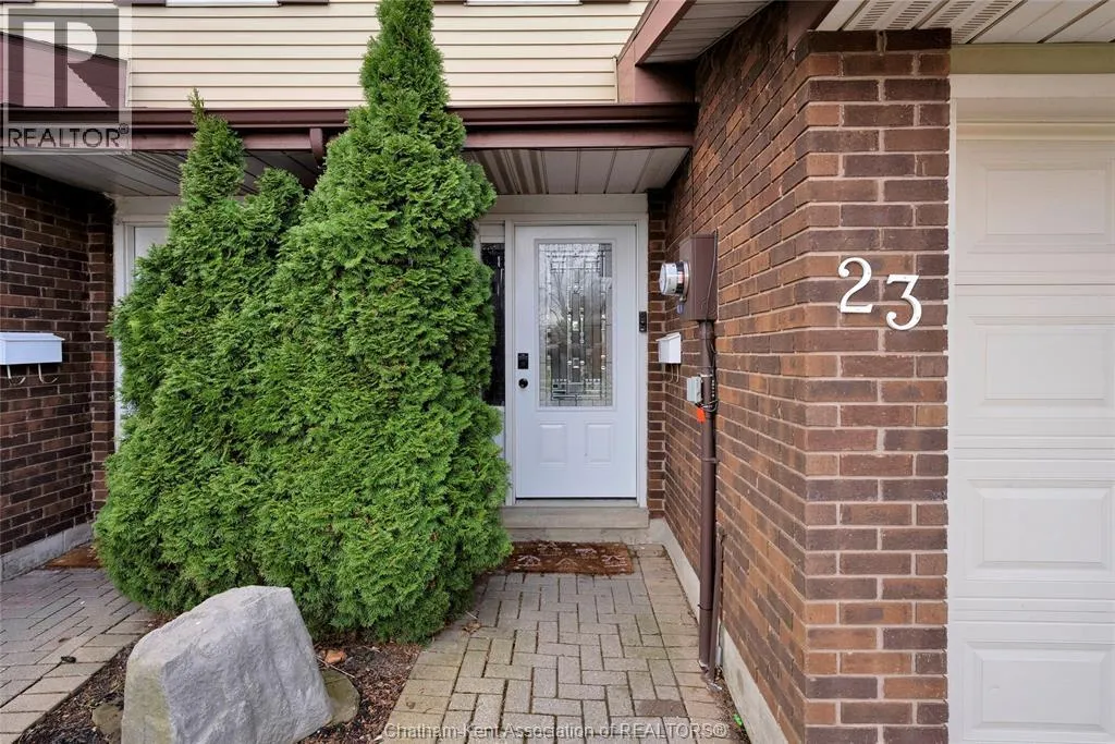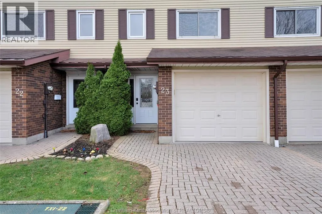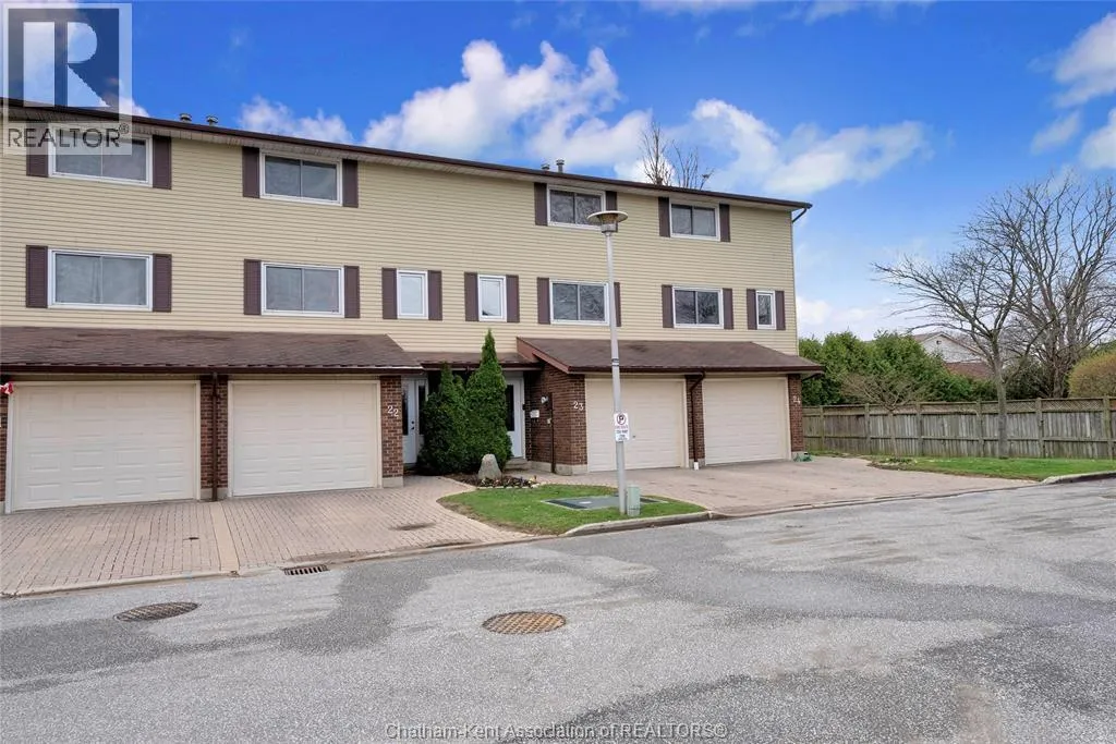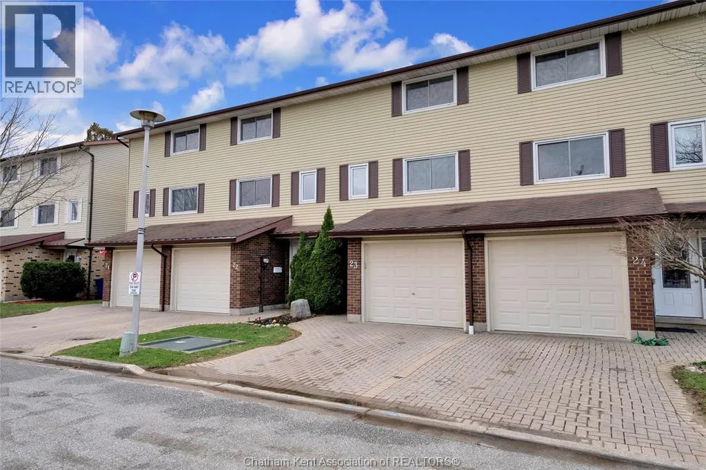 McNaughton Ave W to Baldoon Road. Proceed to 393 Baldoon on the left and follow to Unit 23. Welcome to this renovated, modern townhouse in a great community in North Chatham! Tons of space without the big price tag, this home is perfect for the first-time buyer, or a growing family needing more elbow room. Step inside and be greeted by a spacious family room that could double as another bedroom, as well as a convenient half bath. The second level features a bright living room, complete with a patio door leading out to a nice balcony. The kitchen was totally renovated in 2021 with modern cabinetry and sleek quartz countertops. Kitchen appliances are all only a couple years old, while the washer and dryer were replaced in 2026. The third level houses all three bedrooms, including a large primary bedroom, and a full bathroom. Quality laminate and vinyl tile throughout. Central air unit was replaced in 2025. Monthly maintenance fee of $402.84 includes exterior maintenance, grounds maintenance and building insurance. Enjoy peace of mind knowing that many big ticket items are accounted for! Close to plenty of amenities such as shopping, schools and parks. This is a fantastic opportunity to enjoy a turnkey property with little to do but move in - call today! (id:27476)