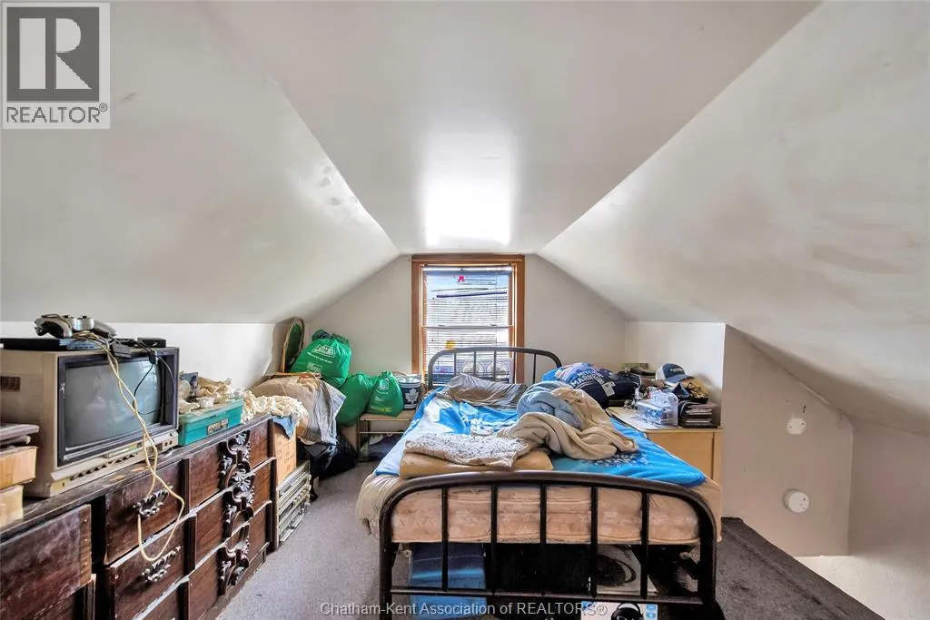 One floor living made easy in this affordable 1.5 storey home in Chatham. The main floor consists of a family room, living room, full bath, kitchen, bedroom and laundry. Upstairs you'll find extra space which could be used as storage, a bedroom or den. Outside features a large backyard over 200 feet deep! With the metal roof you'll never have to replace shingles again. Currently rented to long term tenants paying $1000 plus utilities. 36-48 hours required for showings. (id:27476)