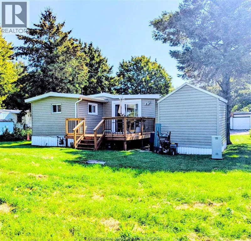 Take Regency Dr., Essex is located on the north side of the street. BACKING ONTO GREESPACE AND ABSOLUTELY MINT! THIS LOVELY MOBILE HOME FEATURES 3 BEDROOMS, SEPARATE LAUNDRY ROOM WITH STACKABLE WASHER/DRYER, BEAUTIFUL 3PC BATH WITH OVERSIZED SHOWER, OPEN CONCEPT KITCHEN/DINING LIVING AREA WITH PATIO DOORS TO LARGE REAR DECK, UPDATED WINDOWS, DOORS, LIGHTING AND FLOORING. OTHER RENOVATIONS FROM 2018/2019 INCLUDE NEW ROOF RAFTERS, METAL ROOF, EXPANDED ENTRYWAY AND REMODELLED LIVING, DINING AND KITCHEN. THIS HOME IS PERFECT FOR RETIREES OR THOSE LOOKING TO DOWNSIZE!!!! **REFRIGERATOR, STOVE/OVEN, OVERSIZED MICROWAVE, DISHWASHER AND WASHER & DRYER INCLUDED CURRENTLY FEES ARE $497.49 PER MONTH AND INCLUDES TAXES, LOT FEES, GARBAGE PICK UP AND SNOW REMOVAL ON MAIN ROADS. $50/MTHY INCREASE TO NEW BUYER. CALL TODAY FOR YOUR PERSONAL VIEWING. (id:27476)