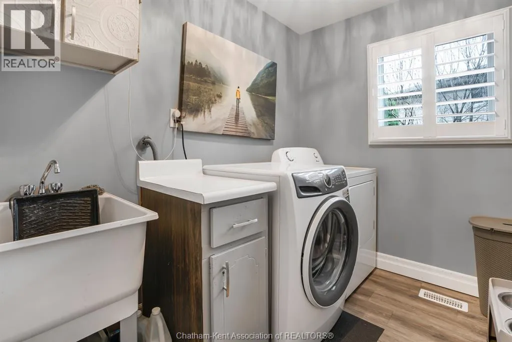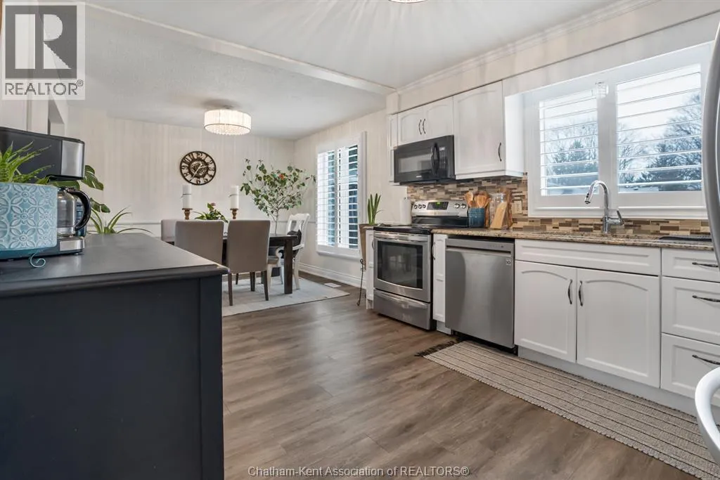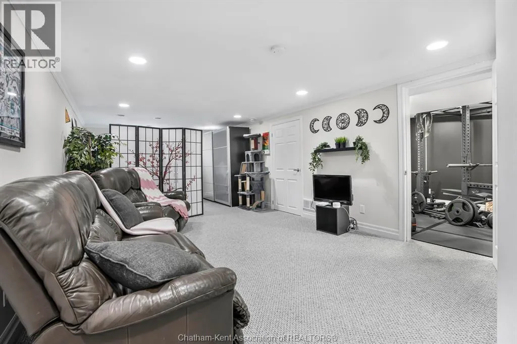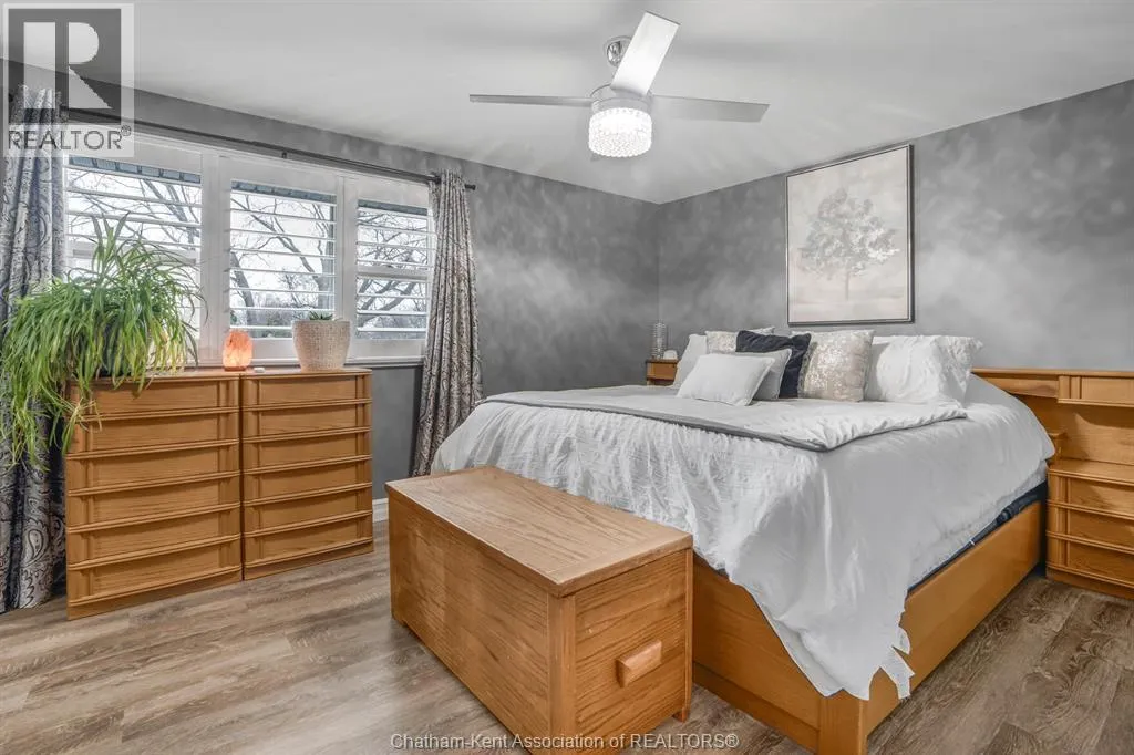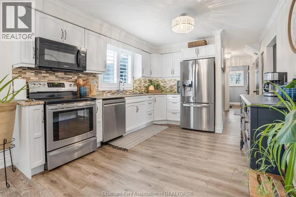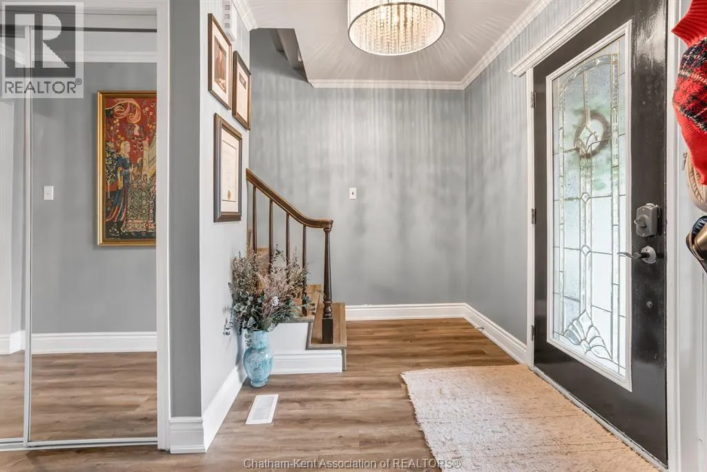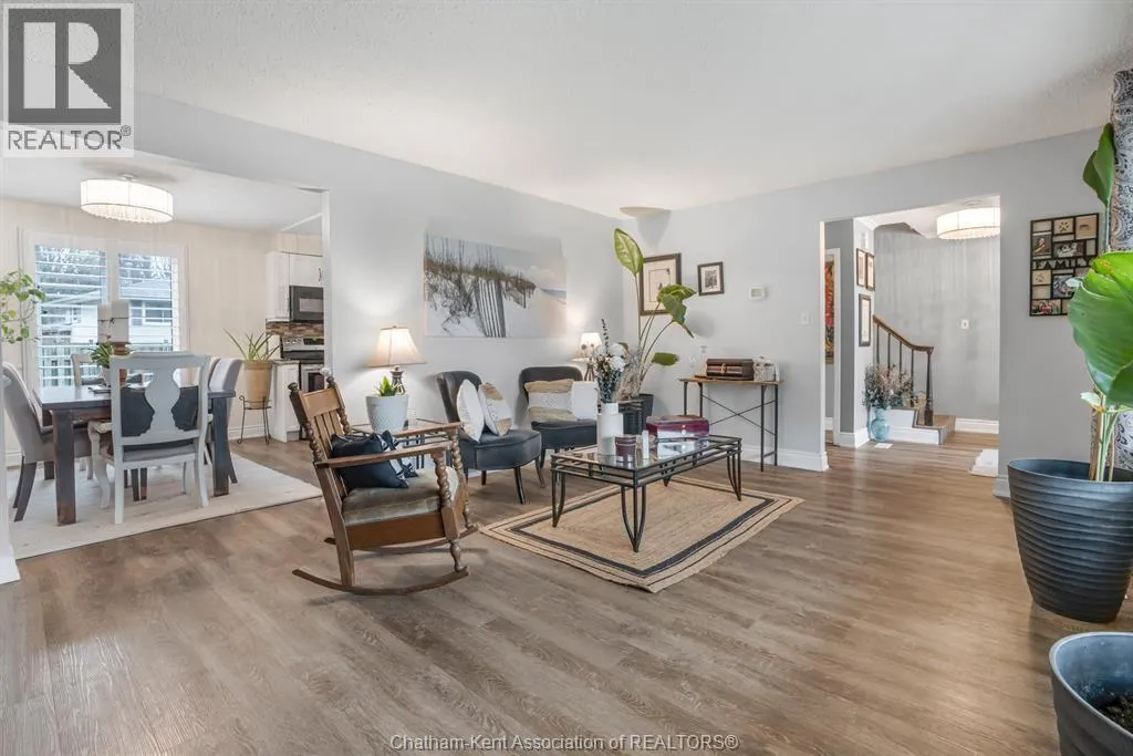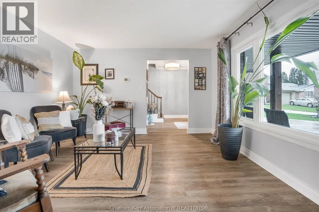 Welcome to this beautifully updated and truly turn-key two-storey home on Chathamâs desirable north sideâwhere thoughtful upgrades meet everyday comfort and backyard luxury. This inviting family home features 3 spacious bedrooms on the upper level and 2 well-appointed bathrooms, including a stunning, fully renovated main bath showcasing heated Italian tile flooring, a heated custom glass shower with dual heads (including rainfall), a soaker tub, and a solid wood vanity topped with quartz and double sinksâyour own private retreat. The main floor offers a warm and functional layout, highlighted by a cozy gas fireplace, updated powder room with a custom wood vanity and granite countertop, and modern finishes throughout. Recent upgrades within the past five years include a steel roof, siding, insulation, fascia, soffits, downspouts, front bay window, and garage improvementsâproviding peace of mind and long-term value. Downstairs, the fully finished basement expands your living space with a rec room WITH PROPER EGRESS WINDOW, den (currently used as a home gym), additional shower, new carpetâperfect for guests or growing families. Step outside to your private backyard oasis featuring an in-ground pool with heater, updated pool systems, a charming gazebo, and a custom cedar privacy wallâideal for entertaining or relaxing all summer long. Eavestrough covers add to the homeâs low-maintenance appeal. With updated flooring throughout, solid wood interior doors, and meticulous care evident at every turn, this home blends style, comfort, and functionality in one exceptional package. A rare opportunity to own a move-in-ready home in a sought-after neighbourhoodâdonât miss it. (id:27476)