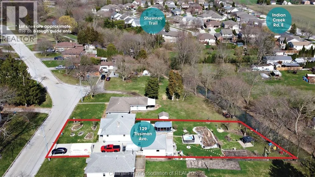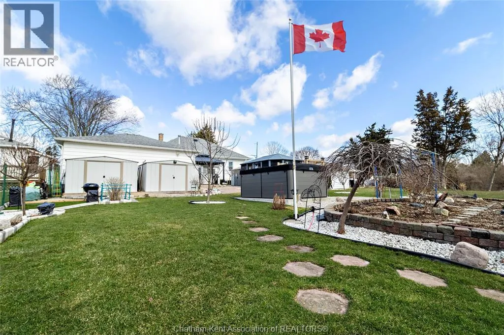 QUEEN STREET SOUTH TO TISIIMAN, TURM EAST...PROPERTY ON THE SOUTH SIDE Welcome to 129 Tissiman Ave on the south side of Chatham. This nicely updated 3 Bedroom Bungalow sits on a park-like 1/3 Acre Lot with beautiful gardens close to shopping, walking paths, parks and more! Features include a remodeled Kitchen in 2019, almost all new windows between 2019-2022, a Bathroom remodel in 2019, spacious Living Room with refinished Hardwood Floors, 3 good sized Bedrooms, updated electrical and lighting fixtures, a full-sized Basement with epoxy Flooring, Laundry area and plenty of additional living space and storage. Outside there's a 2-Car detached heated and insulated Garage perfect for the handy man or wood worker, 2 Gazebos PLUS the large 12'x18' 3-season ""Penguin"" Gazebo perfect for your summer entertaining, an in-ground sprinkler system for the front and back yards, dozens of perennials and much much more! Book your private viewing today before this one-of-a-kind property is gone! (id:27476)
