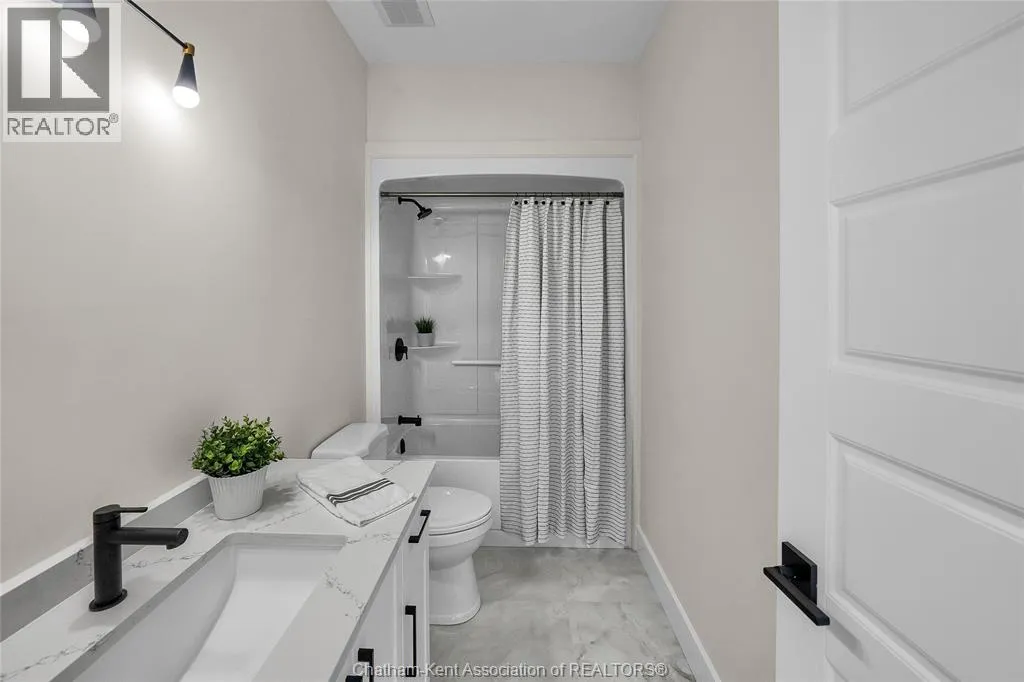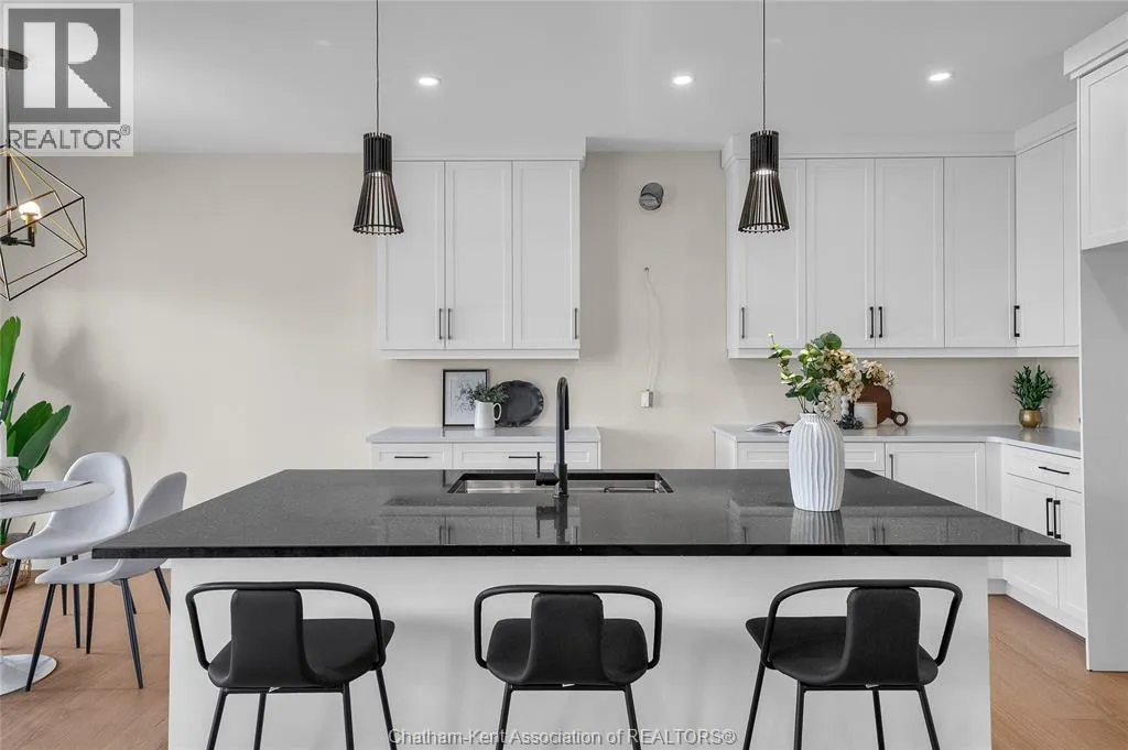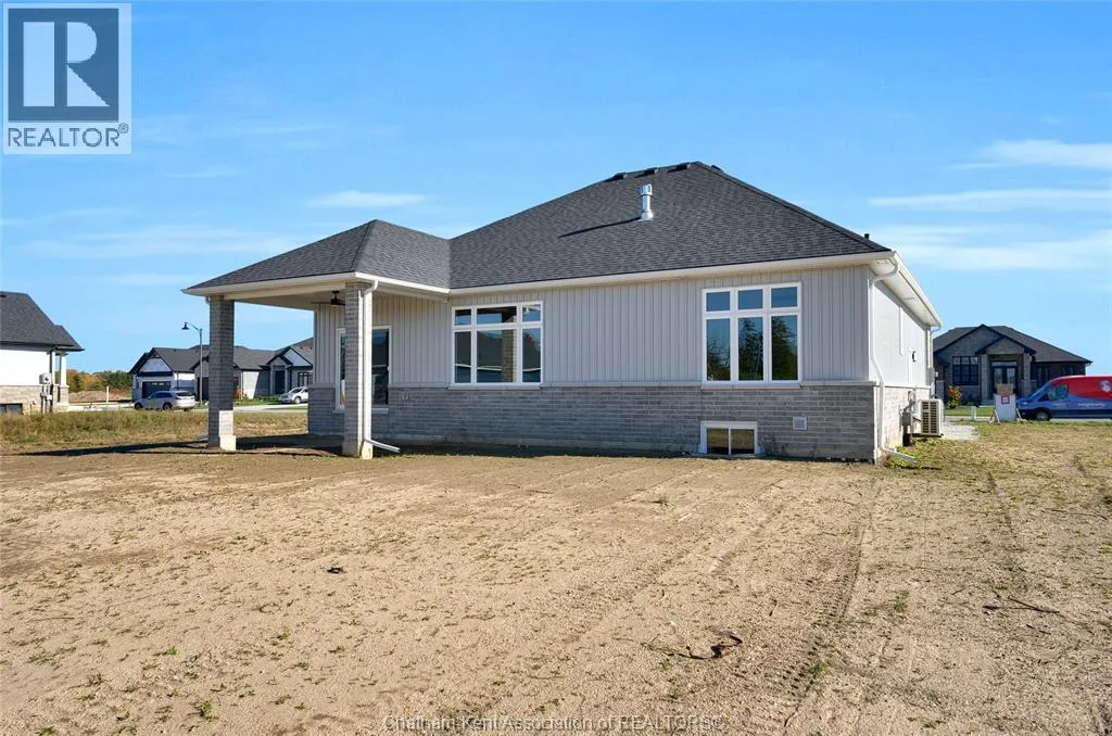 Step into this NEW BUILD home that instantly feels right! The Fairview model by Mi Cazza Construction delivers bright, easy living in one of Chathamâs most exciting new neighbourhoods just off Indian Creek with quick 401 access. From the moment you enter, the open layout welcomes you with natural flow and inviting gathering spaces designed for real life. The kitchen becomes the heart of the home with beautiful Mylen cabinetry, a statement island made for morning coffee and evening conversations, and a walk-in pantry that keeps everything organized. Just beyond, the dining area and cozy family room with gas fireplace create the kind of space where everyday moments turn into lasting memories. The thoughtful split-bedroom layout offers flexibility for families, guests or a dedicated home office, while the private primary suite tucked at the back of the home offers a true retreat with a walk-in closet, double vanity and walk-in shower. Downstairs, the bright lower level with large windows is ready to grow with you, offering endless possibilities for future living space, entertaining or family hangouts. Set on a premium 61-ft wide lot over 140 ft deep, the covered rear porch and expansive backyard invite summer barbecues, quiet evenings and room to dream big outdoors. Skip the stress, skip the wait and enjoy the confidence of brand-new living backed by the peace of mind of the 7-Year Tarion Warranty. Perfect for downsizers, professionals or move-up buyers seeking one-floor living. Concrete driveway and sod scheduled for completion. Some exterior photos may be artist renderings. Purchase price based on HST rebate applicable effective April 1, 2026 to March 31, 2027, assignable to the builder. Price subject to Buyerâs eligibility for the rebate and the enactment of the applicable legislation. In the event the Buyer does not qualify for the rebate, in whole or in part, the purchase price shall be increased by the corresponding amount of HST. (id:27476)