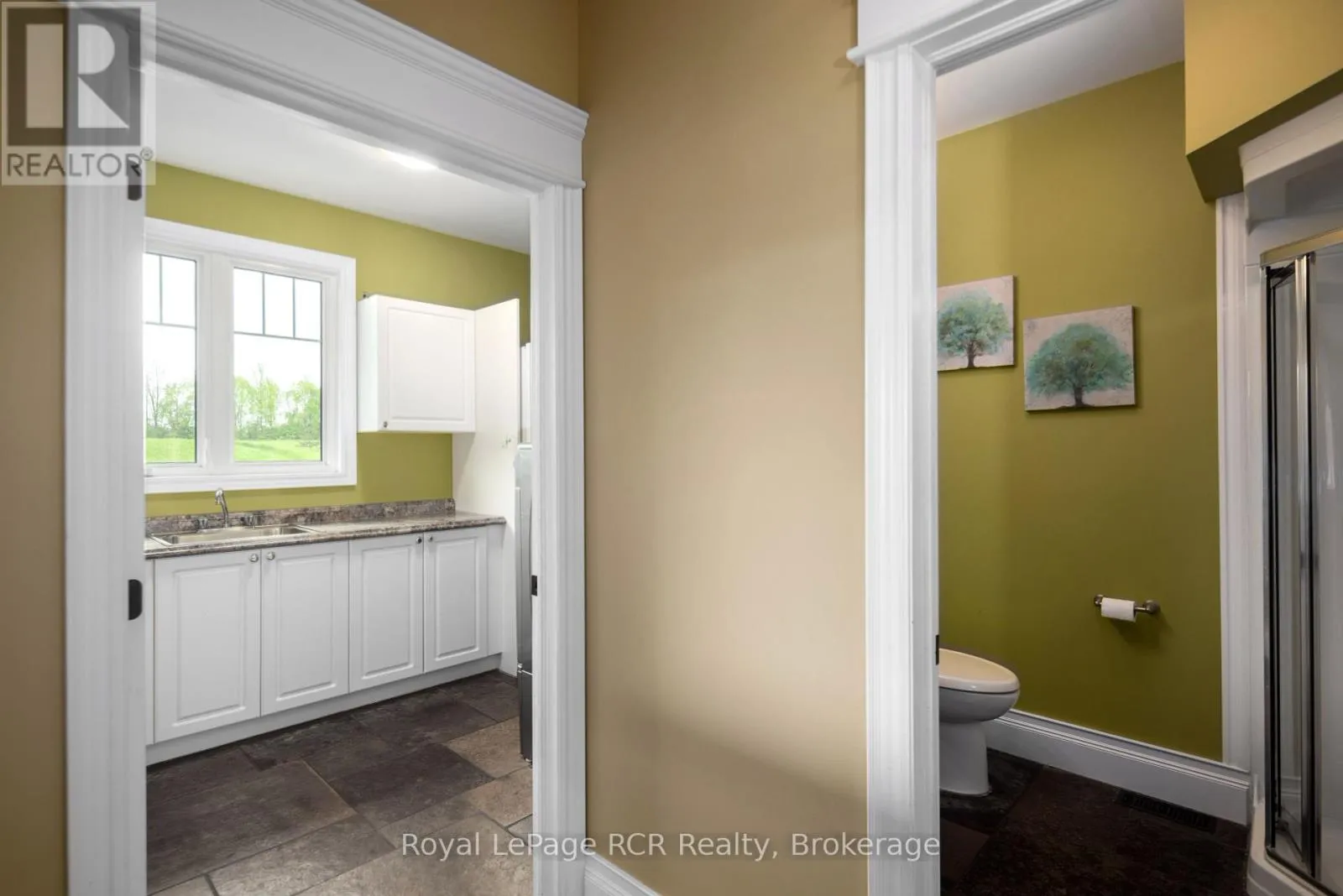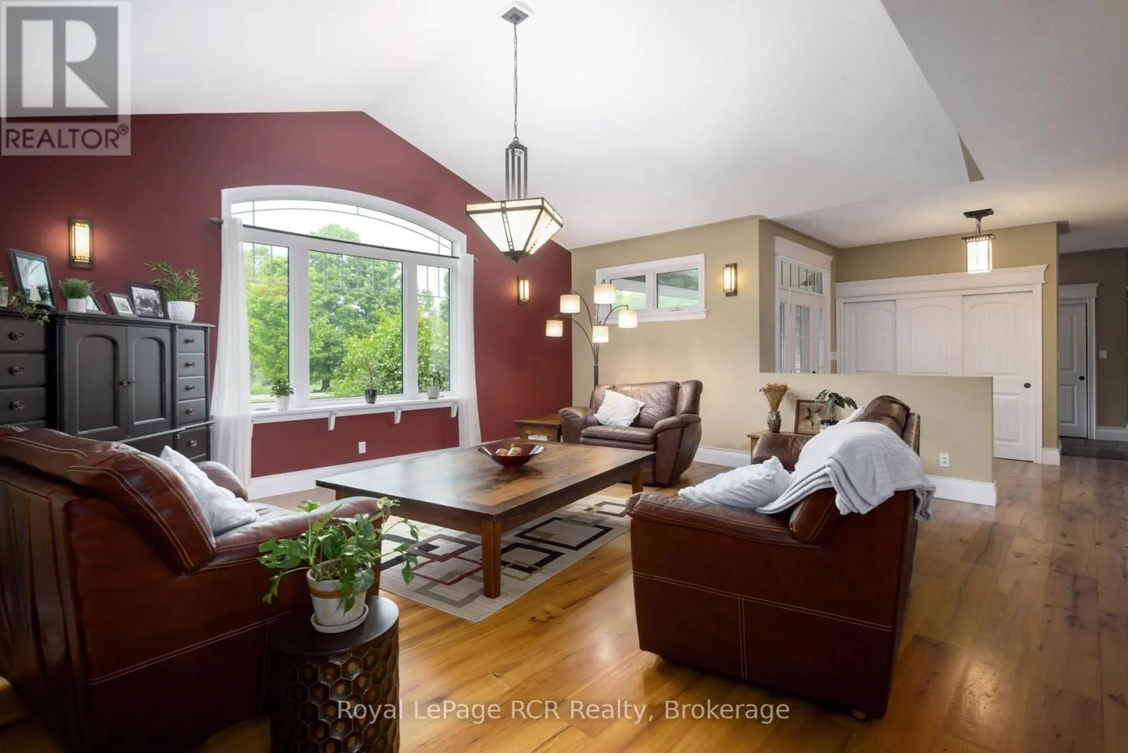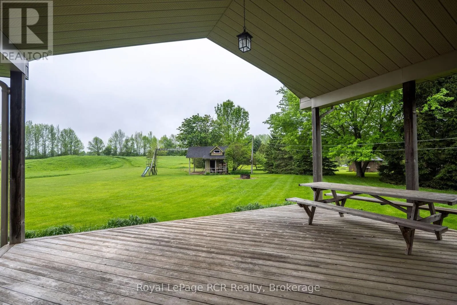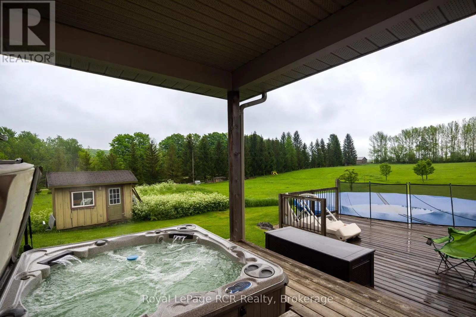 Cross Streets: Hwy 6. ** Directions: 023038 Holland Sydenham Townline, Chatsworth, ON. This magnificent 4,420 finished sq. ft. home with a attached double car garage offers abundant storage space and exceptional features throughout. The main floor is designed for convenience and comfort, featuring a mudroom with great storage, beautiful trim, and square cut flag slate floors. The foyer includes a closet, and there's a 3pc bathroom next to a main floor laundry room for added functionality. The large primary bedroom offers a walk-in closet, and a 4pc ensuite. The living room is filled with natural light from large windows, complemented by engineered hardwood floors and a cathedral ceiling. The heart of the home is the bright and spacious custom kitchen, adorned with cherry cabinetry, a pantry, granite countertops, a prep sink, and a raised bar. Modern appliances include a new microwave and dishwasher. The kitchen seamlessly flows into the dining room with vaulted ceilings and patio doors leading to a covered wood porch area. There is also a generously sized bedroom/office and a family room with vaulted ceilings. The 2nd covered wood deck, equipped with a hot tub and BBQ area, is perfect for outdoor entertaining. The basement boasts high 9'ceilings and includes four bedrooms with large windows, with one bedroom offering ensuite privilege with a3pc bathroom. The basement also features custom trim, a recreation room, ample closet space, 5pc bathroom, utility room, natural gas boiler, forced air heating, in-floor heating, and central air conditioning. The basement is spray-foamed from floor to ceiling for max efficiency. The exterior is equally impressive with a paved driveway, landscape lighting, irrigation, lush landscaping, playhouse, garden shed, and a large above ground pool. A front covered porch, providing multiple areas for relaxation and entertainment. This home combines luxury, comfort, and practicality, making it the perfect place for your family to call home. (id:27476)