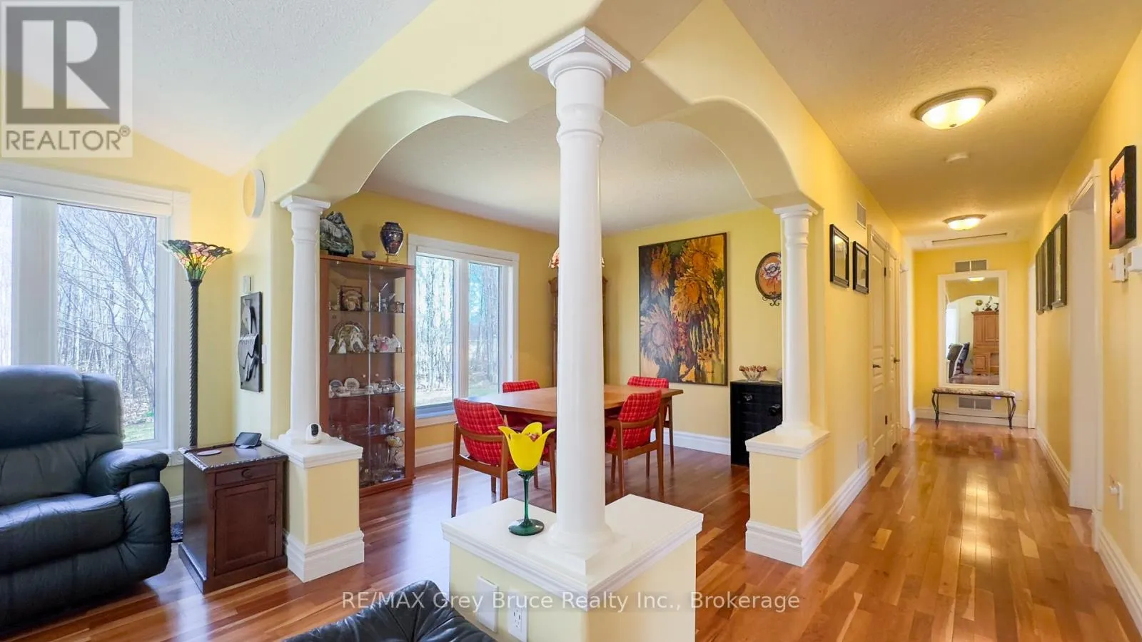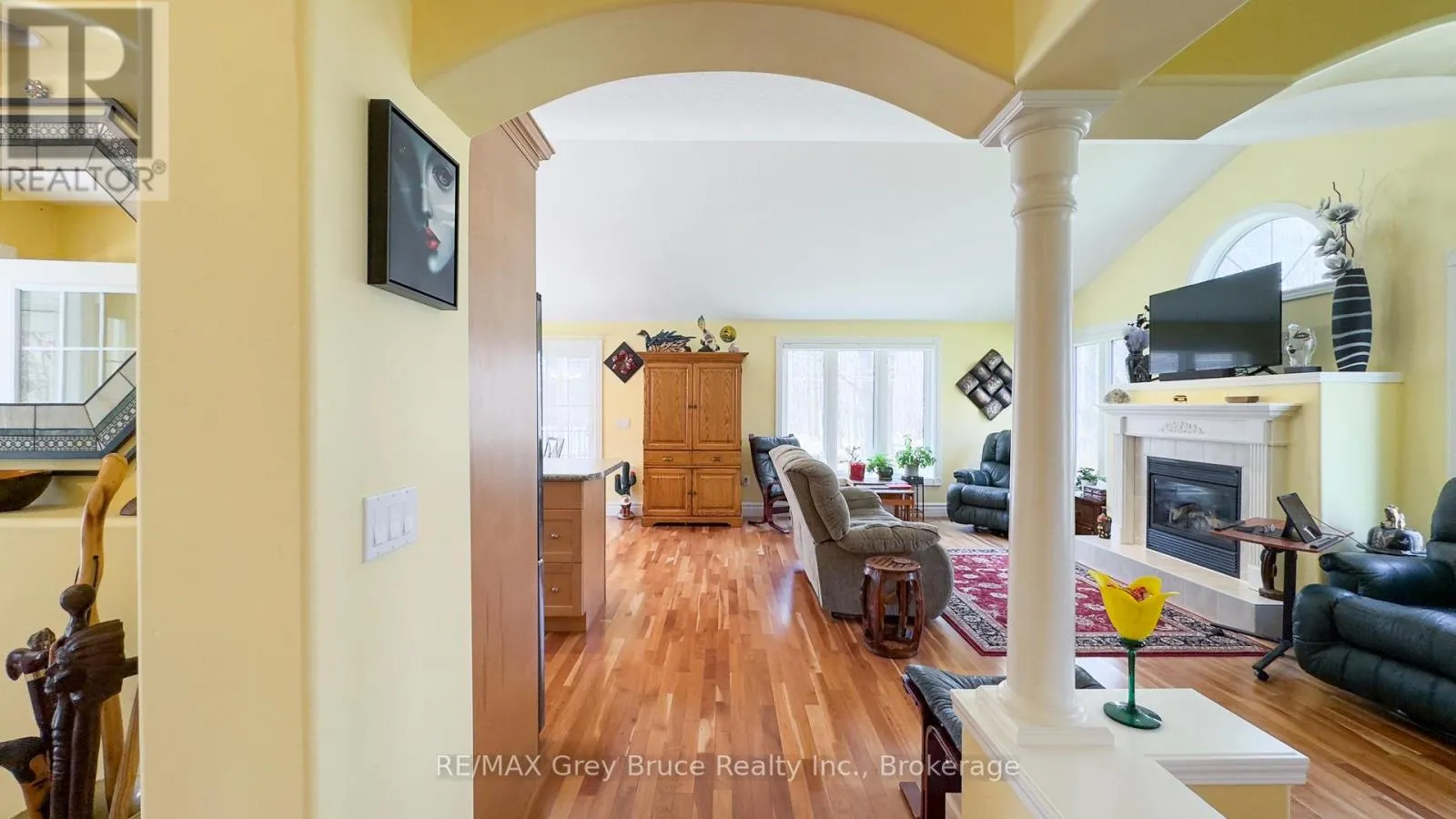 Cross Streets: Highway 10 and Sideroad 20. ** Directions: From Chatsworth, head South on Highway 10, Once past Holland Chatsworth school turn East on Sideroad 20. Property will be on the North side of the road look for sign. Just minutes from Highway 10, this 12.7-acre property offers the perfect mix of open space and forest. With over 5 acres of workable land and a beautiful backdrop of mature trees, it's a peaceful setting on a quiet country road. Built in 2006, the home is warm, welcoming, and designed for easy living.The main floor features hardwood flooring throughout, an abundance of natural light, and Hunter Douglas blinds that add a custom touch. The open-concept layout is ideal for everyday living as well as entertaining friends and family. There are two spacious bedrooms on the main level, including a primary suite complete with a private ensuite featuring a jacuzzi tub, separate shower, and walk-in closet, along with a second full bathroom. The lower level offers generous space for a rec room, home theatre, or family hangout area. There is also a room currently used as a guest suite, plus a new 2-piece bathroom for added convenience.This home has seen many important updates, including a new furnace (2026), air conditioner (2024), owned propane tank inspected in 2024, roof (2020), fridge (2025), washer and dryer (2025), stove (2022), microwave (2022), dishwasher (2021), water softener (2021), and a Red Lion cast sump pump (2025). The septic system was pumped in Fall 2023.This is a wonderful opportunity to enjoy country living with space, privacy, and flexibility-while still being close to town. (id:27476)