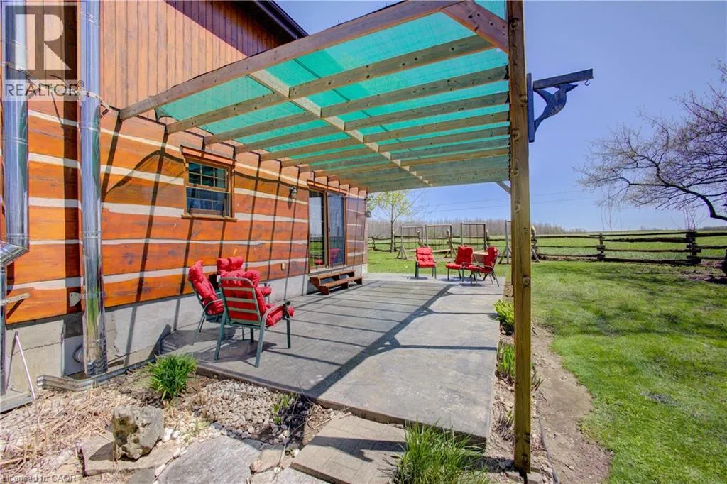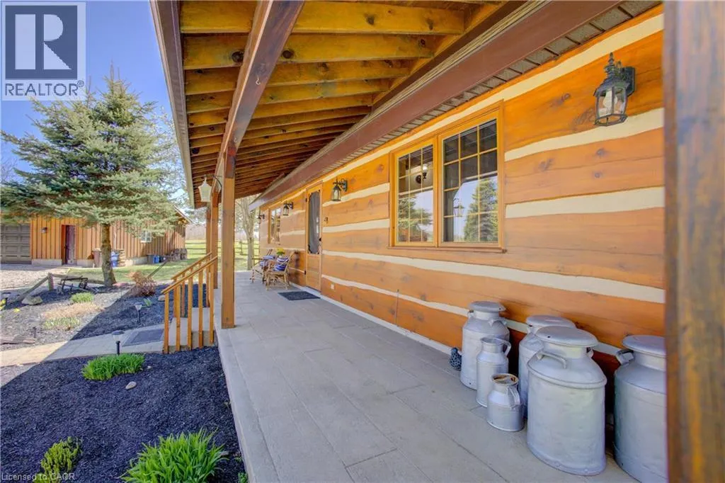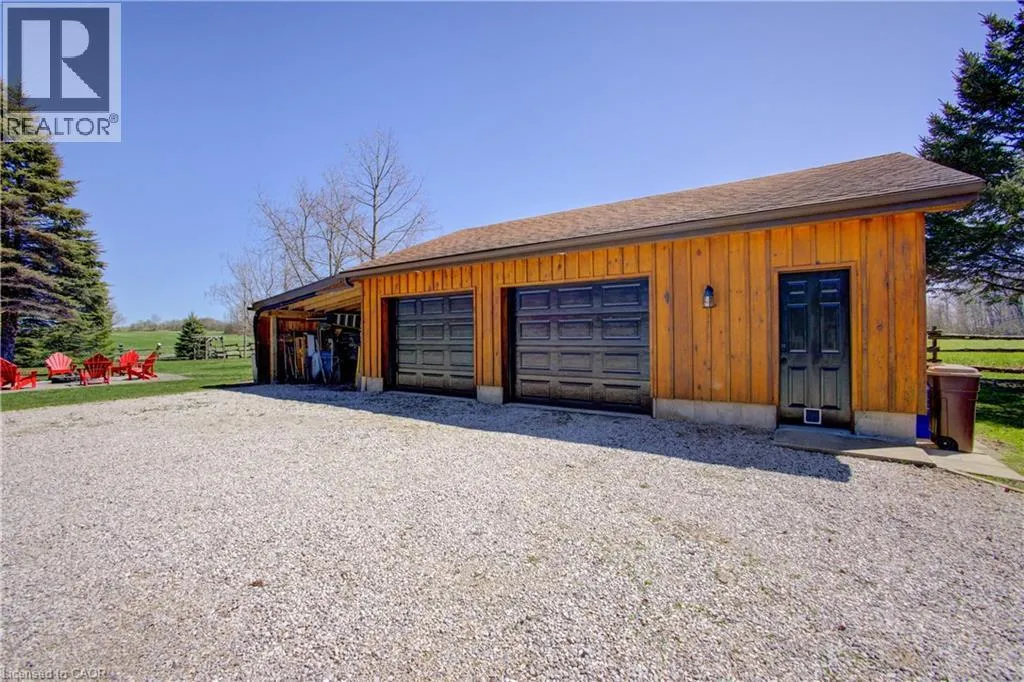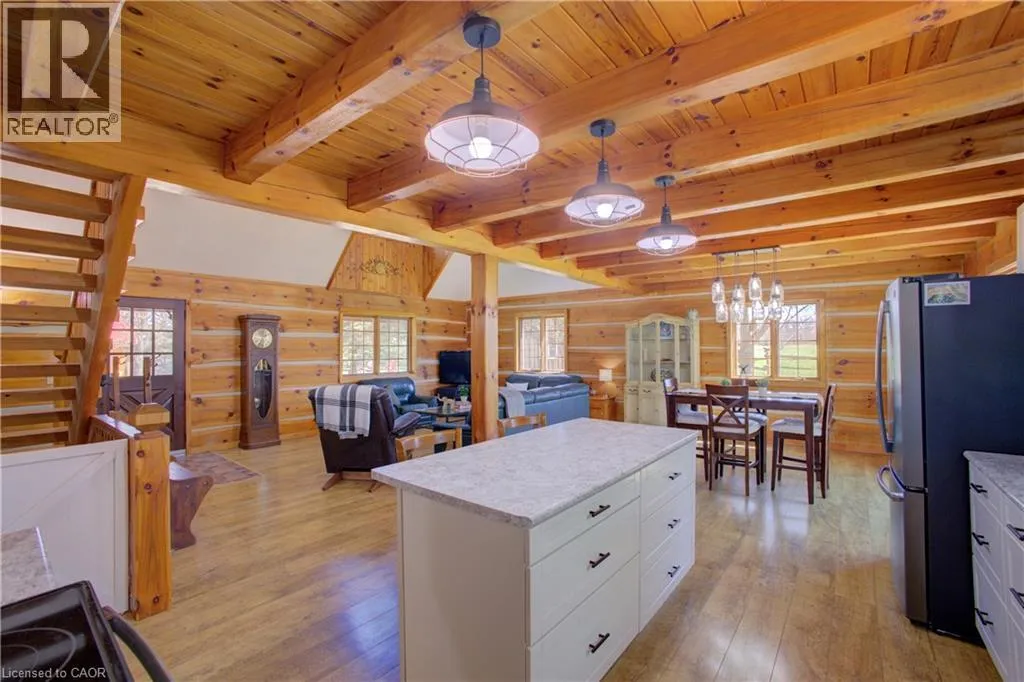 Grey Road 40 & Concession Rd 6 With over $200,000 in upgrades, this 4 bed, 2 bath log home sits on a private 2 acre slice of paradise, complete with 30' x 40' workshop and a 24' x 30' garage. A winding driveway lined with mature evergreens sets the tone as you arrive at this scenic, country home. Offering 3,000 sq. ft. across three finished levels, this home blends rustic charm with thoughtful modern updates. In-floor heating on the main and lower levels adds everyday comfort, while fresh paint, updated bathrooms, and new lighting create a clean, move-in ready feel. The kitchen balances style and function with stainless steel appliances, a generous island for casual meals, and a combined pantry/laundry room for added efficiency. The dining area is surrounded by windows and provides easy access to the backyard where a covered patio sets the scene for quiet mornings and sunset evenings. A main floor bedroom and 3pc bath provide flexibility for guests or multigenerational living. Upstairs, the open loft adapts easily as a bedroom, office, or den. The primary suite features vaulted ceilings, beautiful views, and a walk-in closet. A 4pc bath with jacuzzi tub and separate shower completes the upper level. The finished basement adds even more living space with a large rec room, additional bedroom, in floor heating, and a cozy wood stove. Outside, the workshop impresses with pine shiplap finishes, a 10' x 9' roll up door, and a ceiling mounted forced air gas furnace. The 2 car garage includes a wood stove and ample storage, plus a 24' x 14' lean-to for even more space. Apple trees, grapevines, landscaped gardens, a garden shed, play structure, horseshoe pit, and rail fence complete this private retreat. With 200 amp service to the home, 100 amps to both the garage and workshop, generator wiring in place, and automatic garage door openers, the infrastructure is as solid as the setting is beautiful. (id:27476)