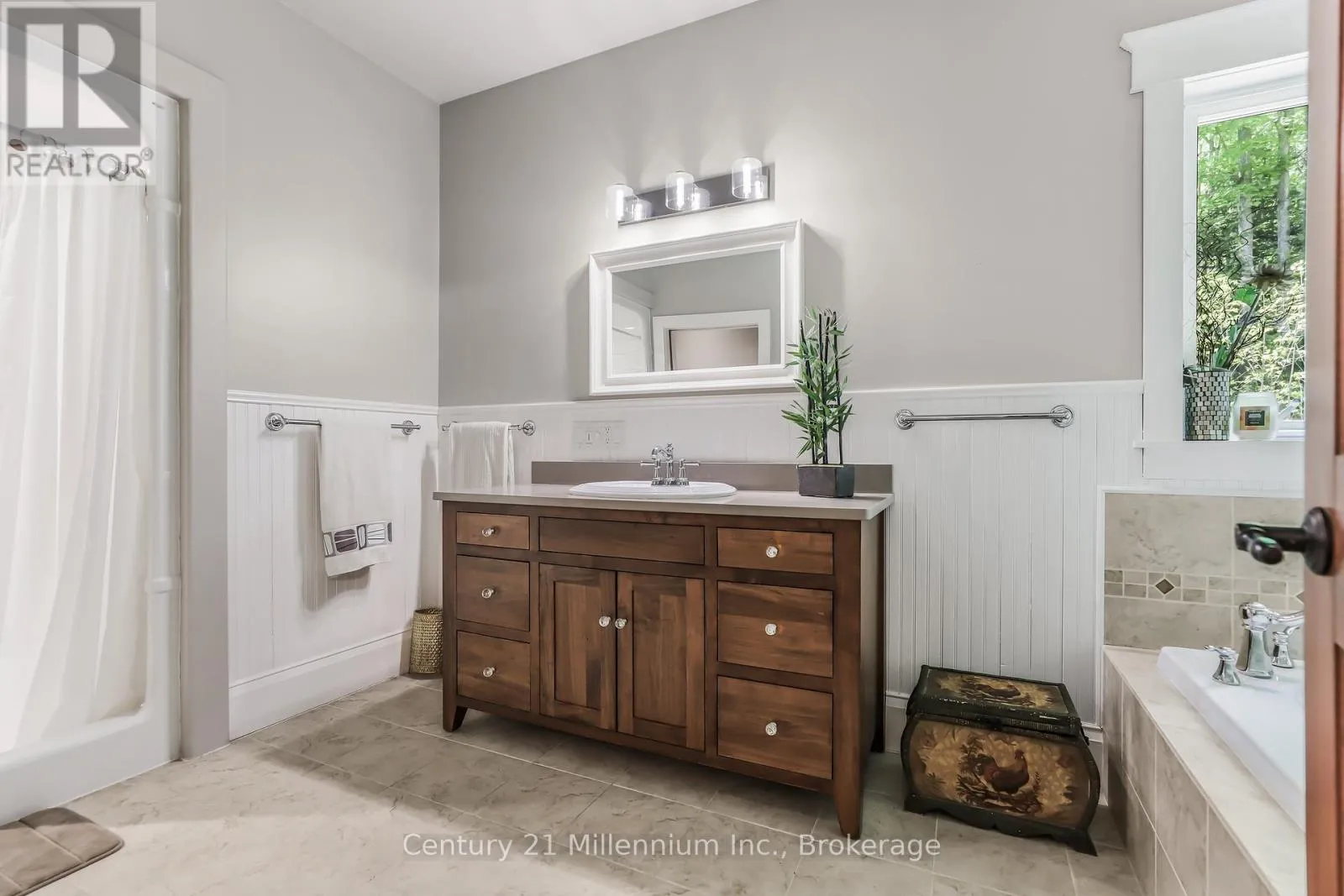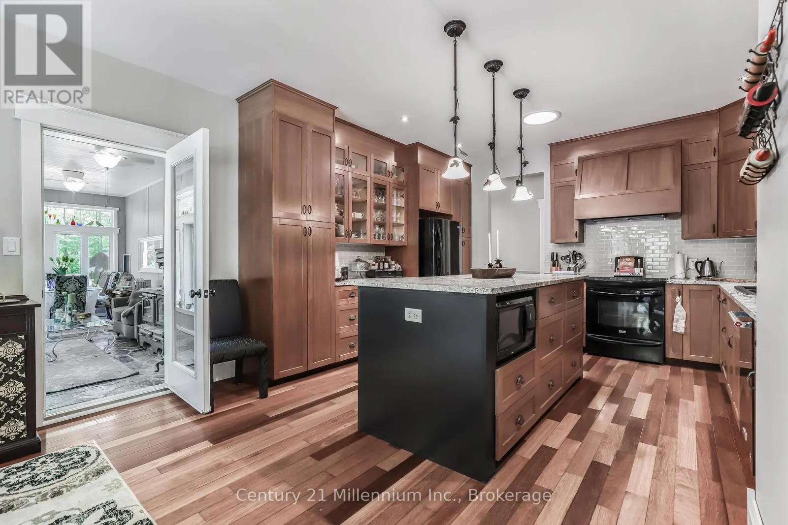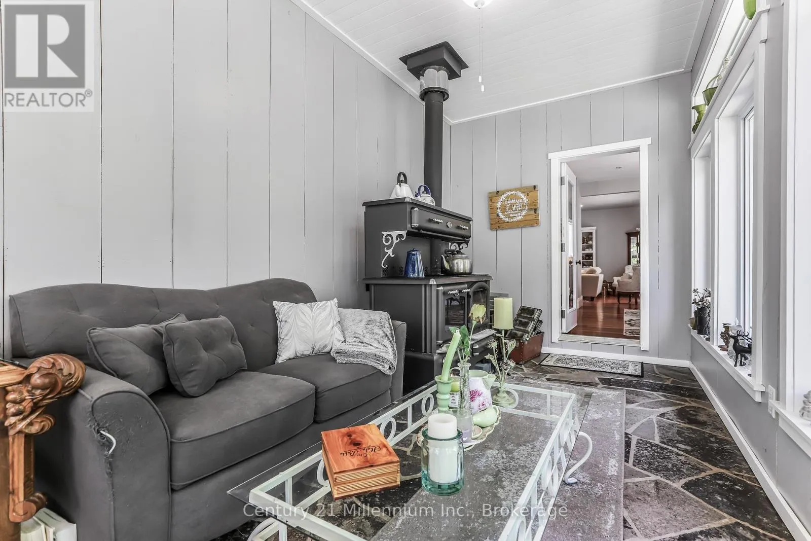 Cross Streets: Concession Rd 4 & Grey Rd 25. ** Directions: From Hwy 6, West on Grey Rd 25, North on Concession Rd 4, Property located on the East side . Tranquil 49+ acre retreat with a breathtaking 2008 Shouldice Stone bungalow nestled behind a serene pond. Enjoy ultimate privacy along the winding driveway to this peaceful haven. The home boasts open-concept living, hardwood floors, a gourmet kitchen with a large island and rich wood cabinetry, and stunning views from every room. A cozy sunroom with a wood cookstove is ideal year-round. The main floor features 3 bedrooms, 2 baths (including an ensuite and walk-in closet), and convenient laundry. The walk-up from the lower level offers in-law potential with a rec room, bar, games area, 2 additional rooms, a bath, and in-floor heating. No carpet, only tile, hardwood, or stone throughout. Outdoors: 15 fenced, workable acres, scenic trails, mixed forest, a 36x24 shop with loft and hydro, RV hookup, sheds, a chicken coop, woodshed, and fascinating eco ponds. Savour wildlife from the deck or porch, stay connected with great internet, and embrace a sustainable lifestyle with wood heat and space for animals. A quintessential country sanctuary. Located just 20 minutes to Durham and 30 minutes to Owen Sound, this Chatsworth township property is your chance to live close to nature, whether you're dreaming of hobby farming, raising animals, gardening, or simply enjoying the quiet beauty of Grey County. (id:27476)
